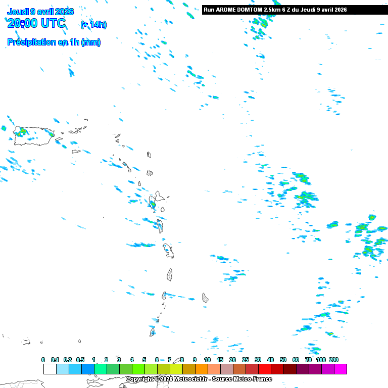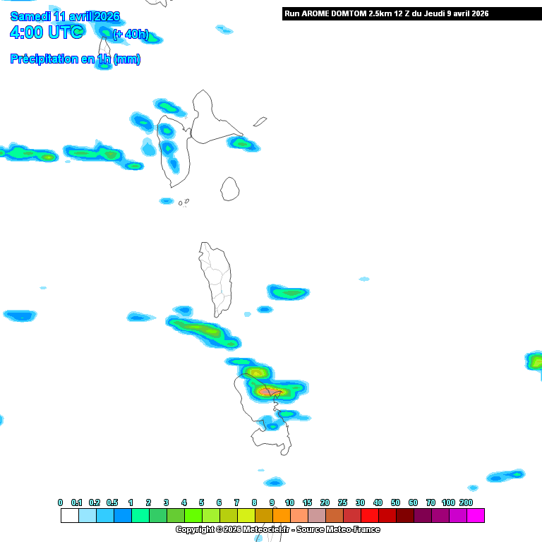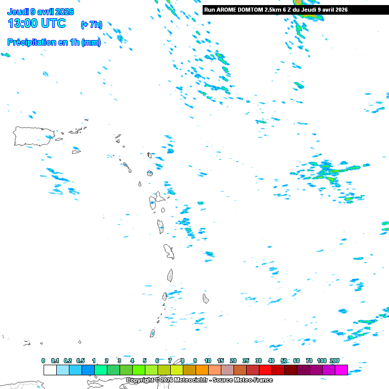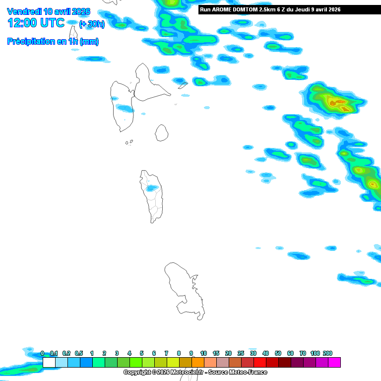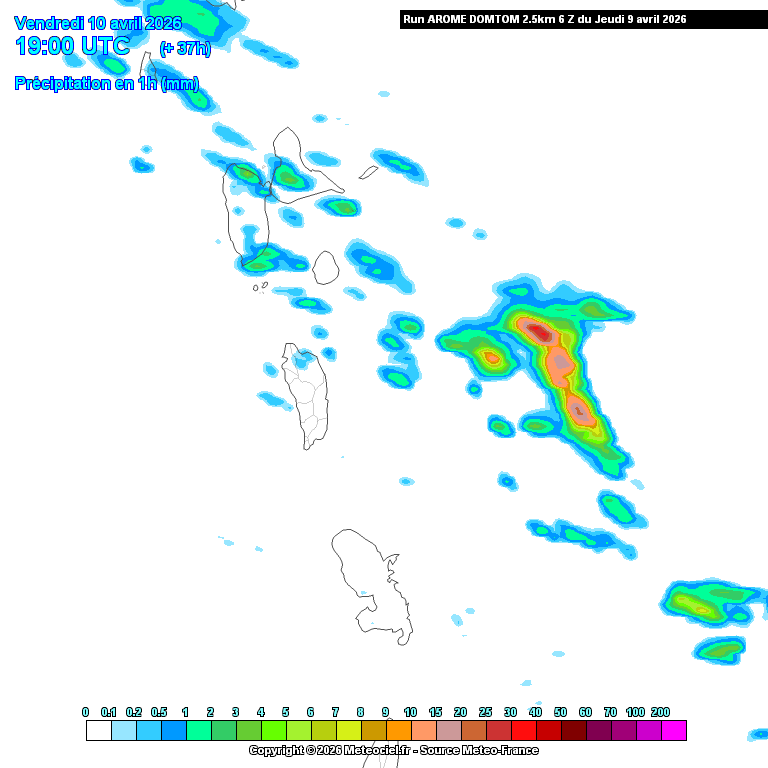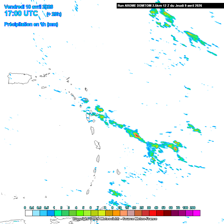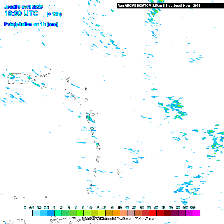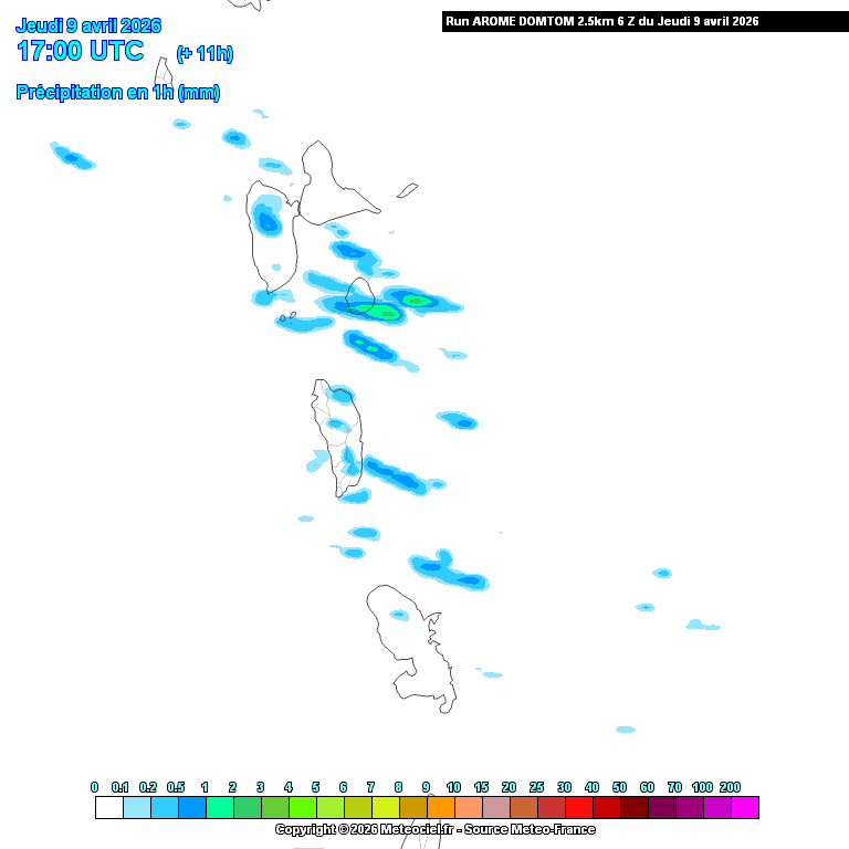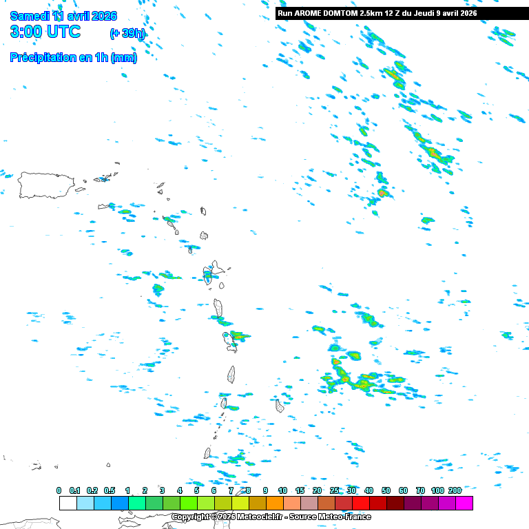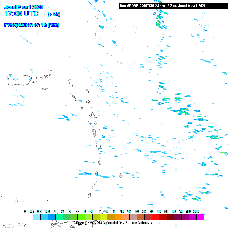 Prévisions du modèle à maille fine AROME pour les Antilles produit par Météo France (Source : Météociel.fr)