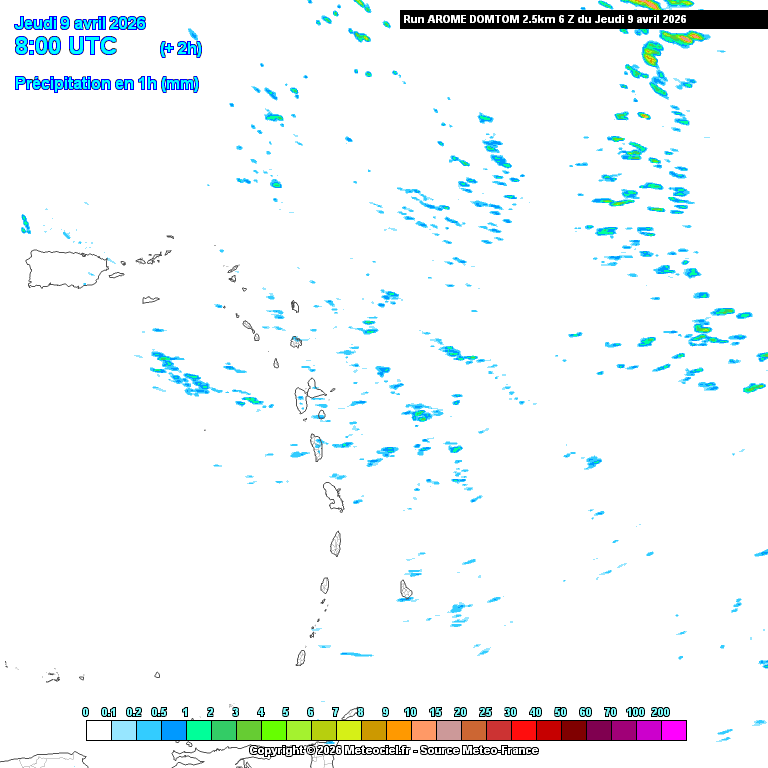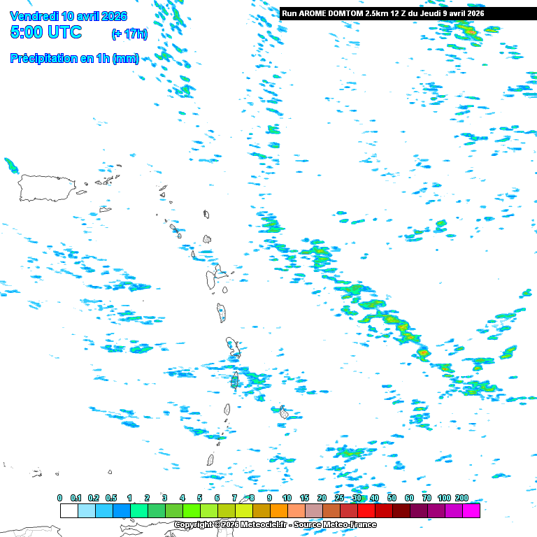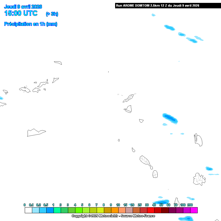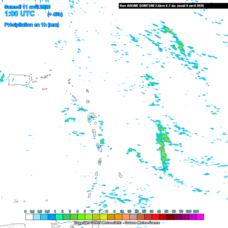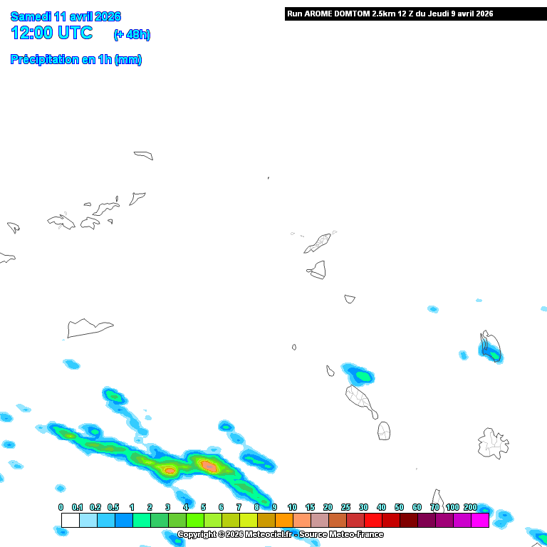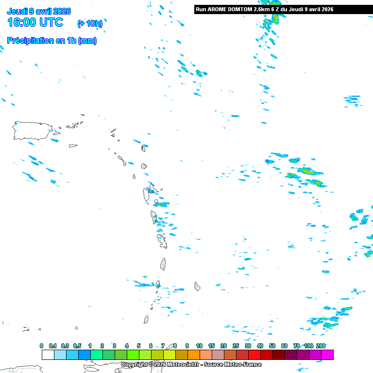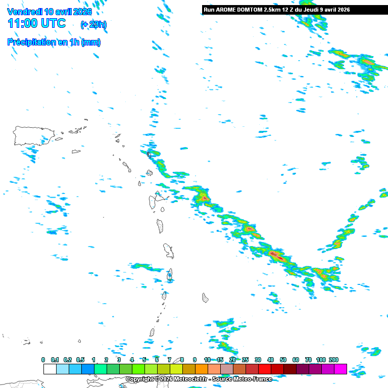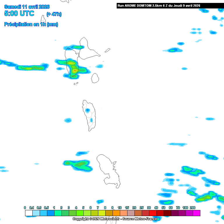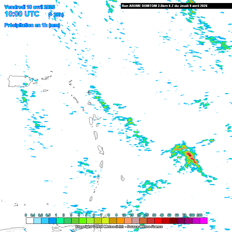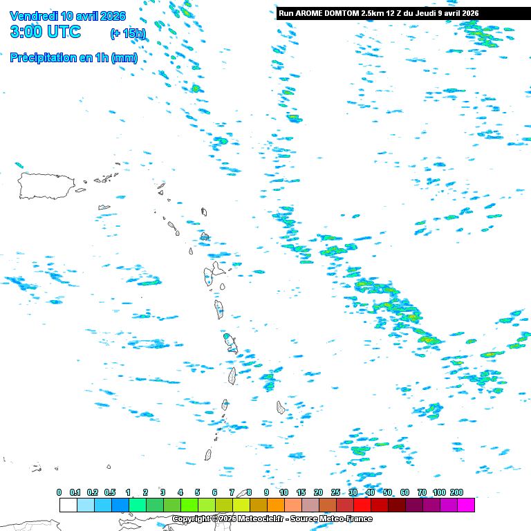 Prévisions du modèle à maille fine AROME pour les Antilles produit par Météo France (Source : Météociel.fr)