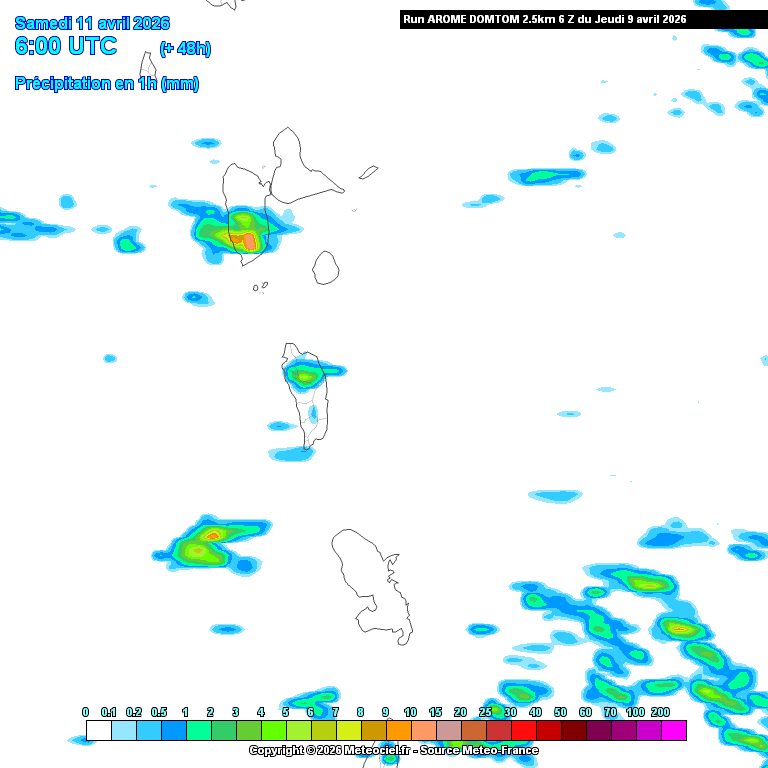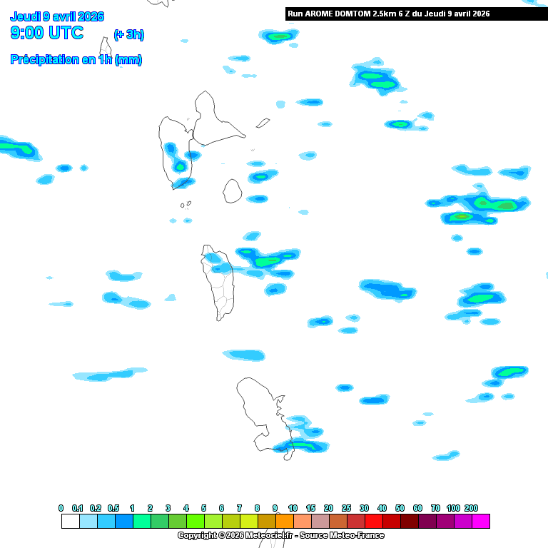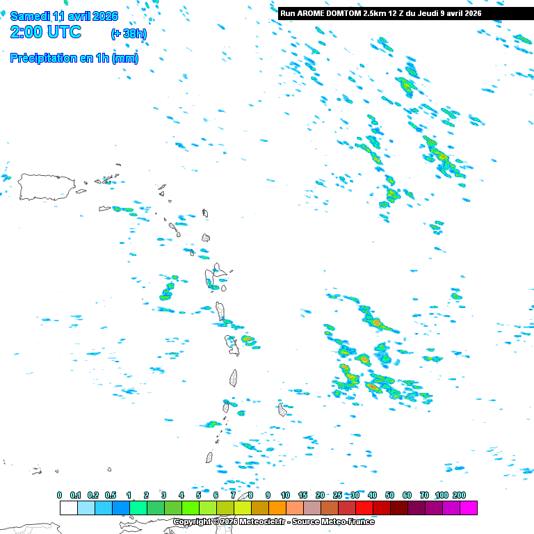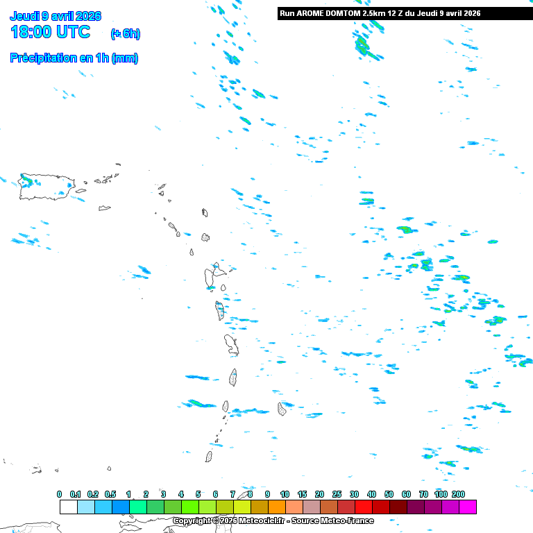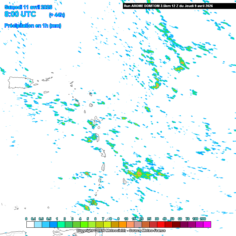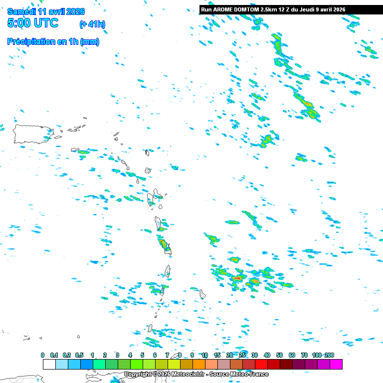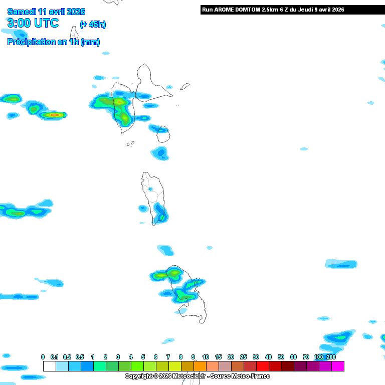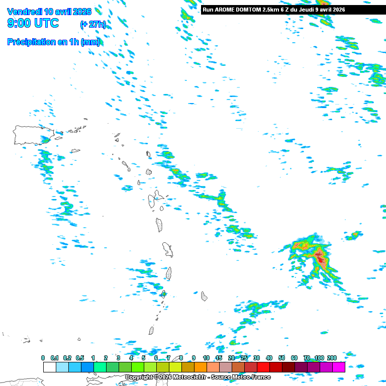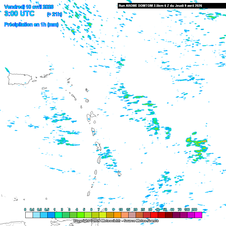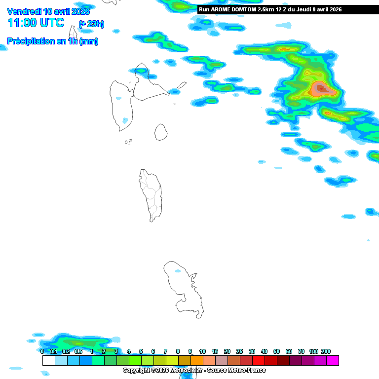 Prévisions du modèle à maille fine AROME pour les Antilles produit par Météo France (Source : Météociel.fr)