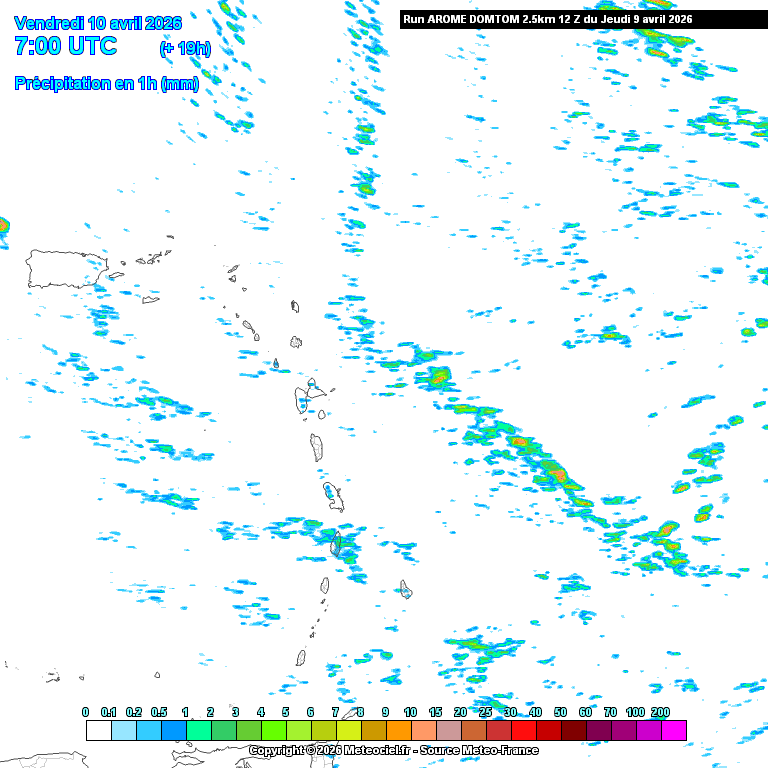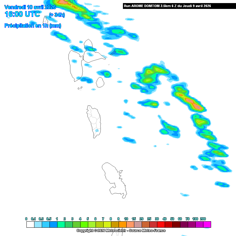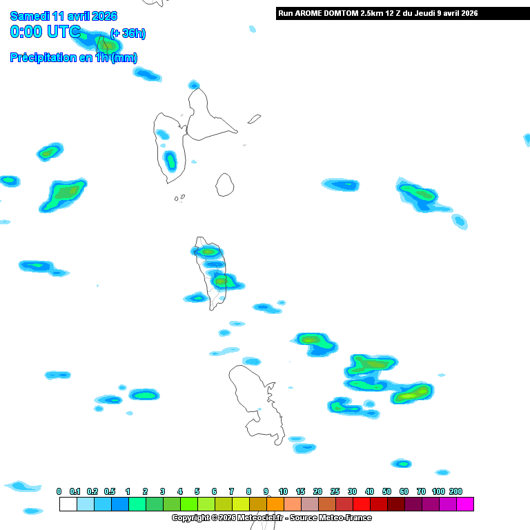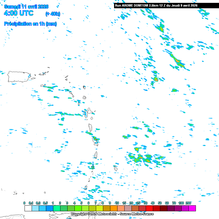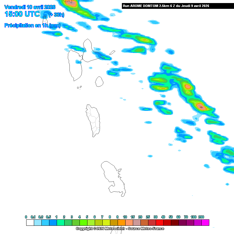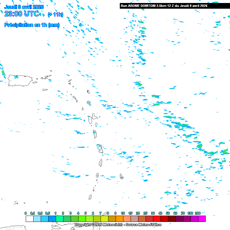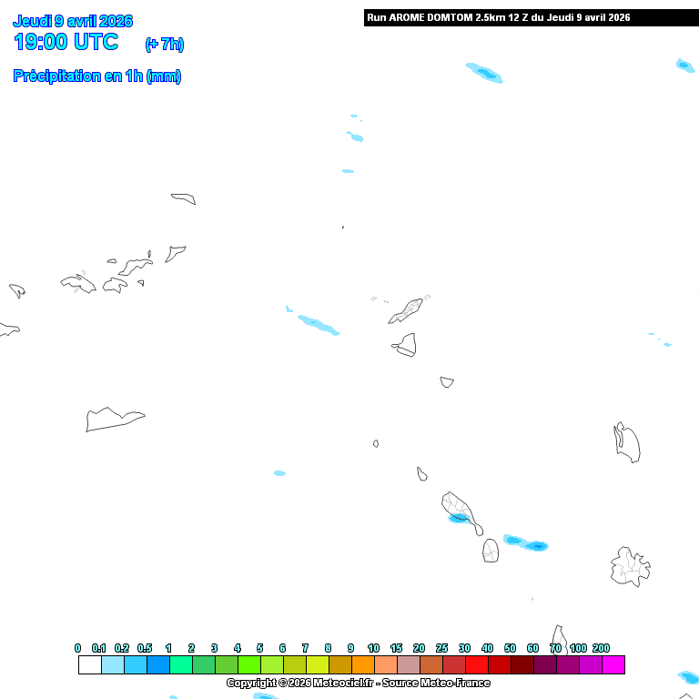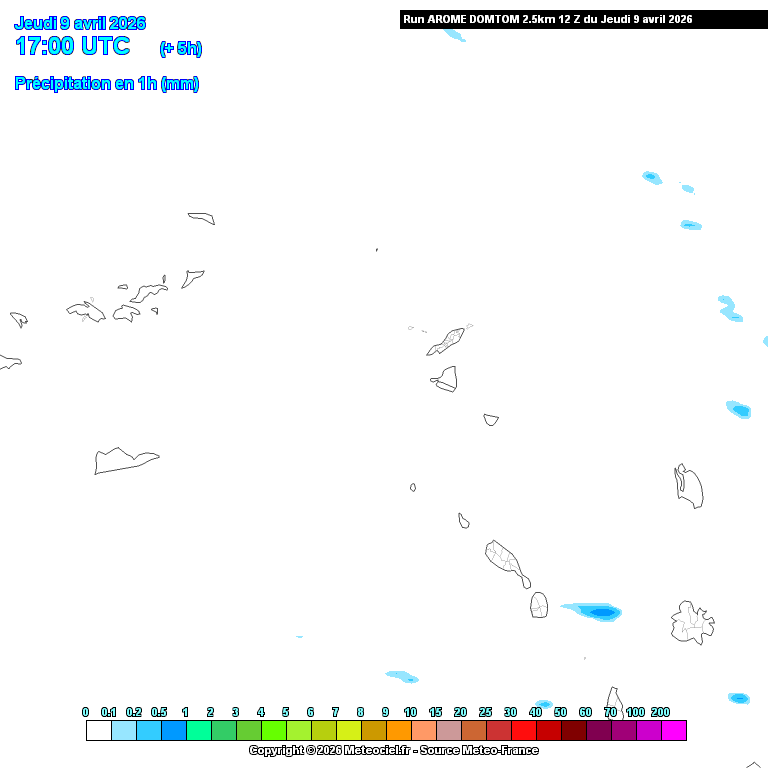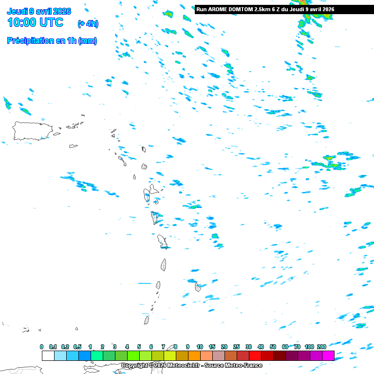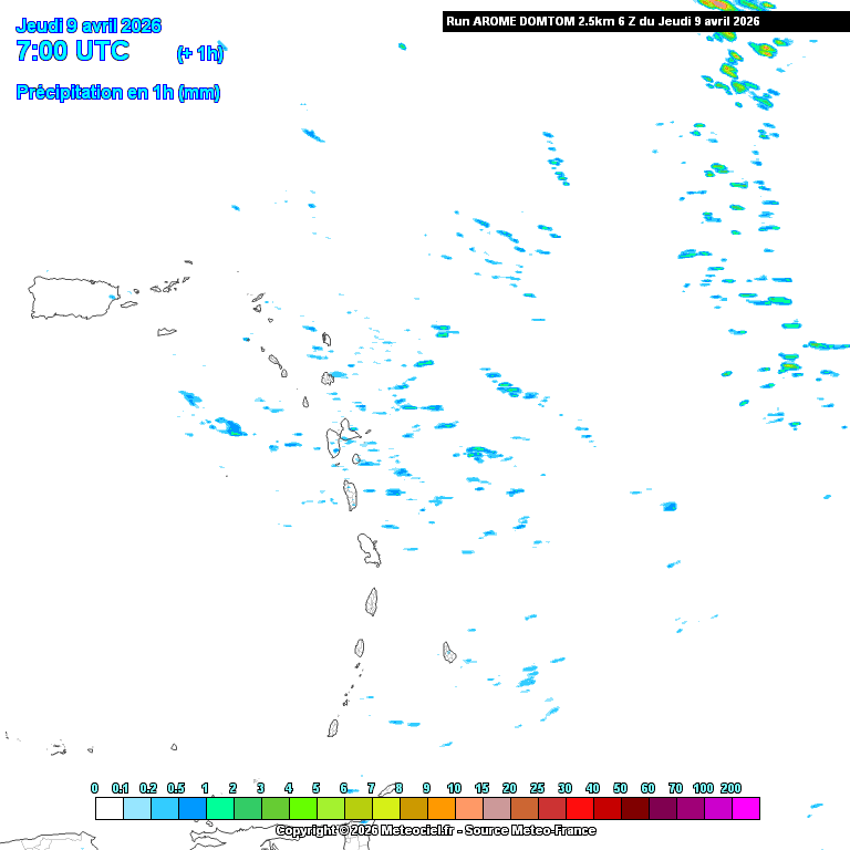 Prévisions du modèle à maille fine AROME pour les Antilles produit par Météo France (Source : Météociel.fr)
