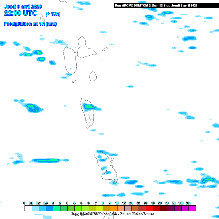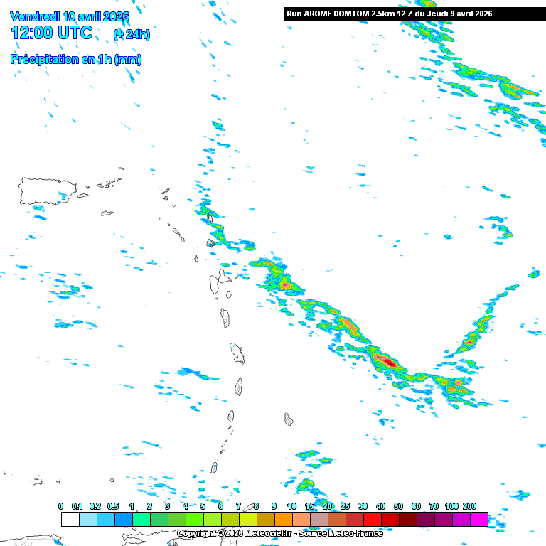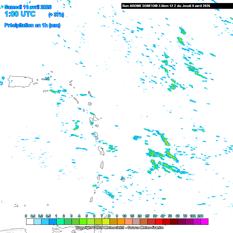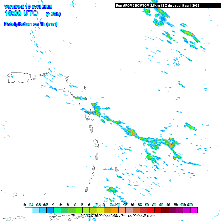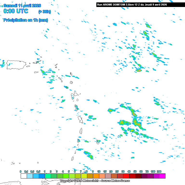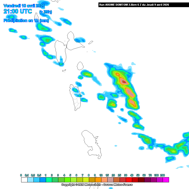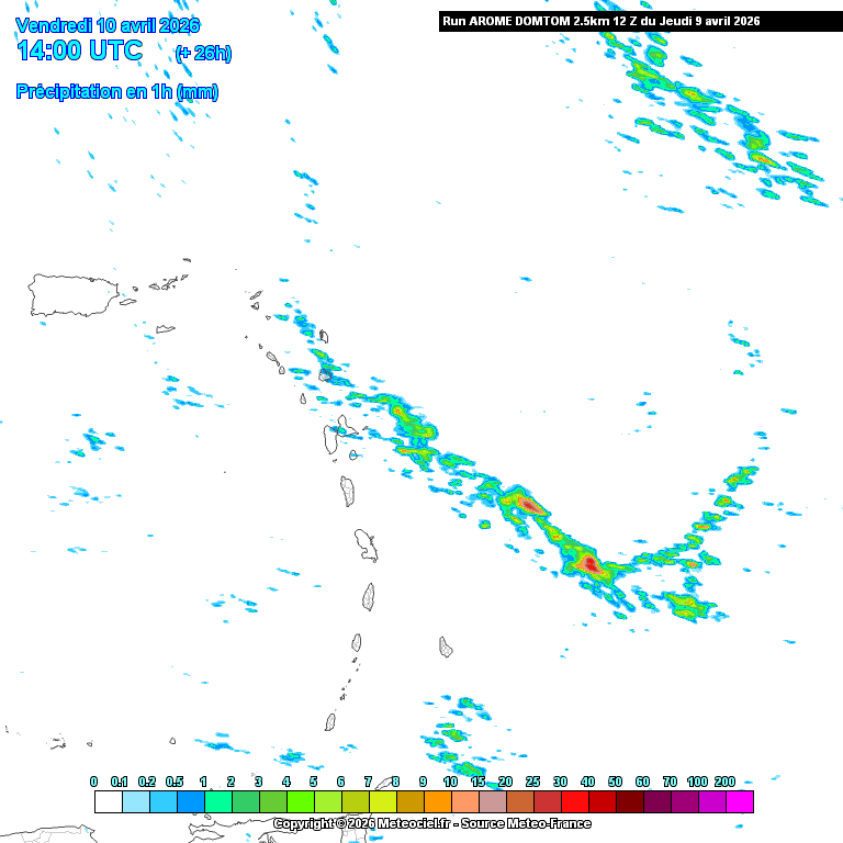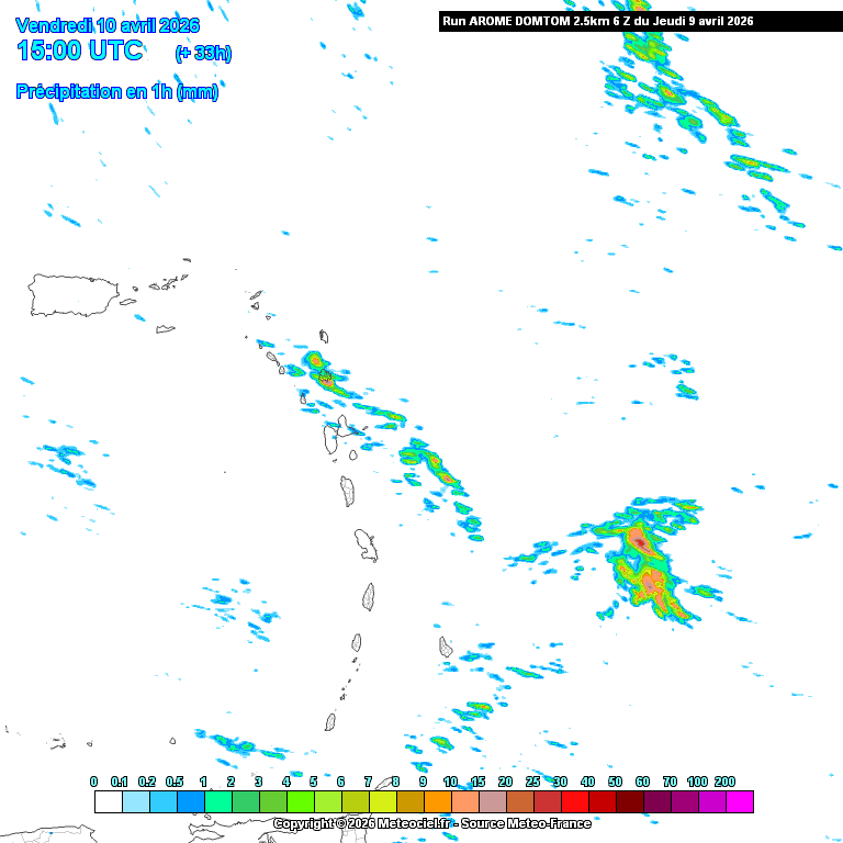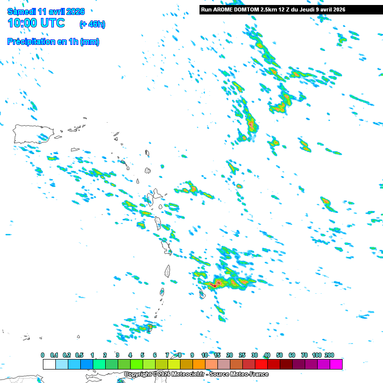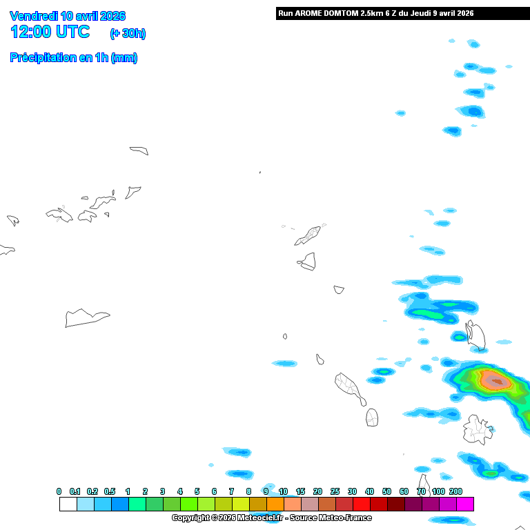 Prévisions du modèle à maille fine AROME pour les Antilles produit par Météo France (Source : Météociel.fr)