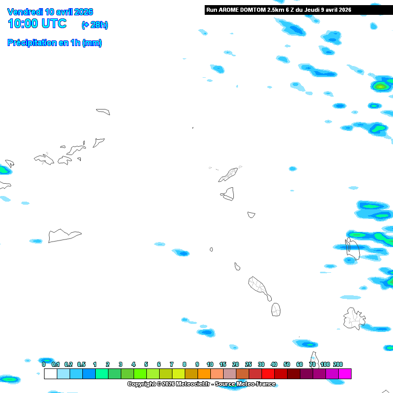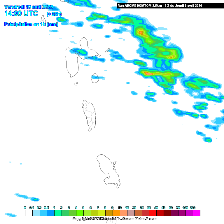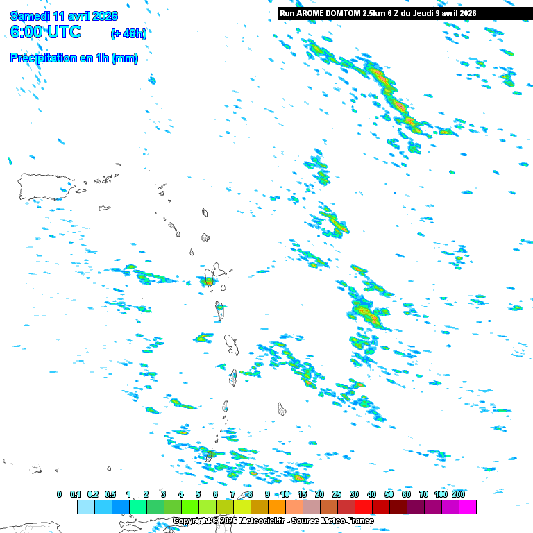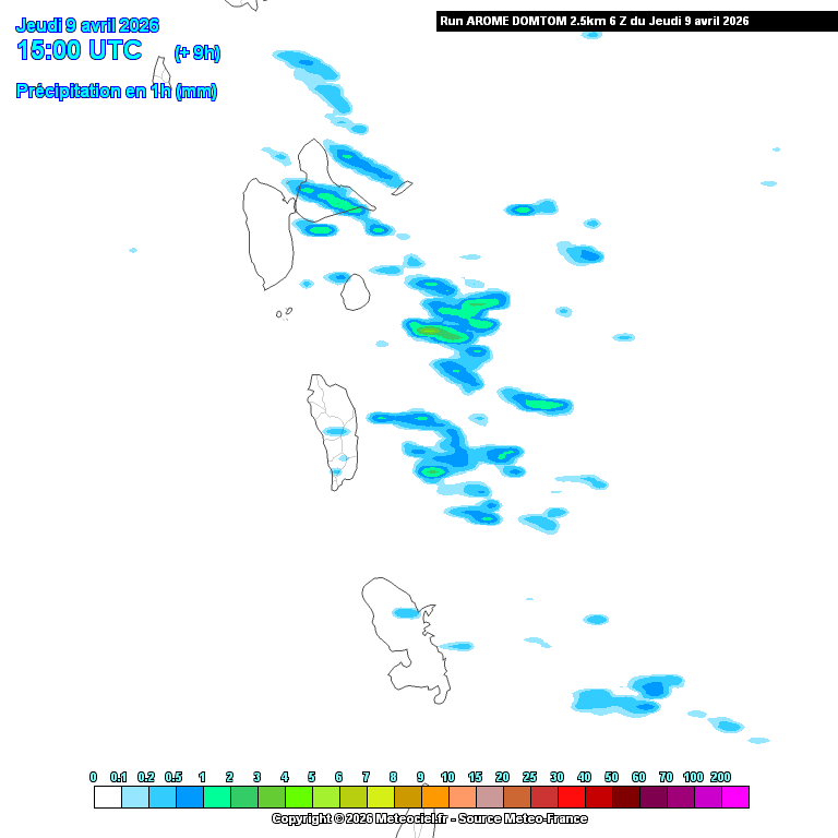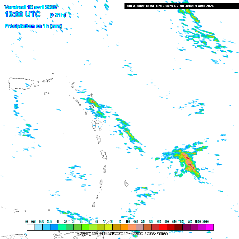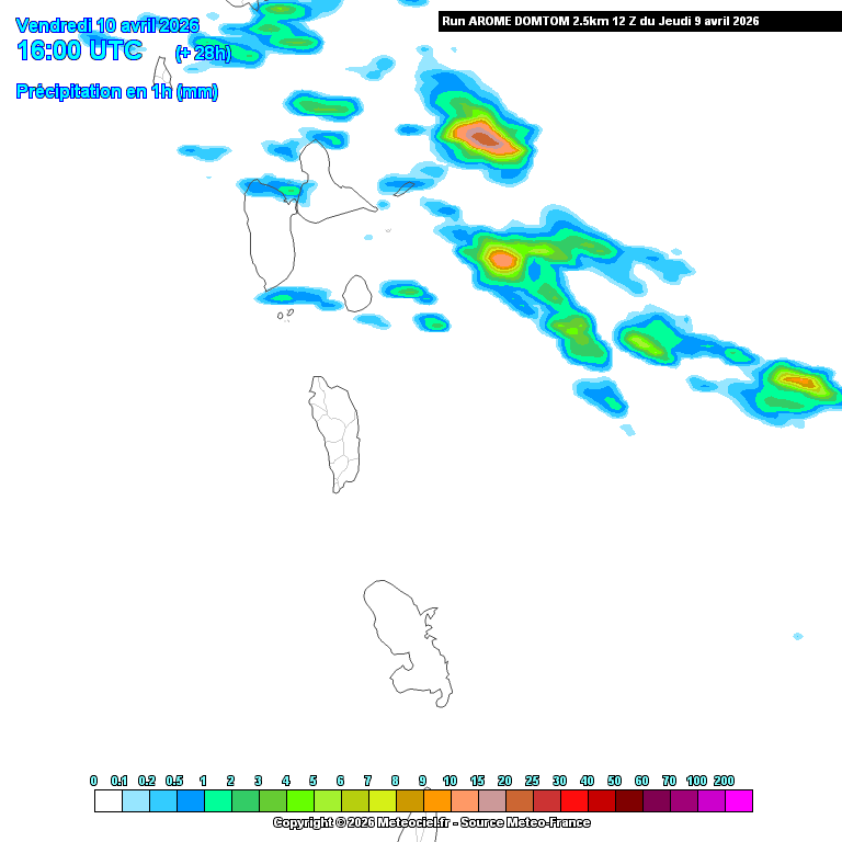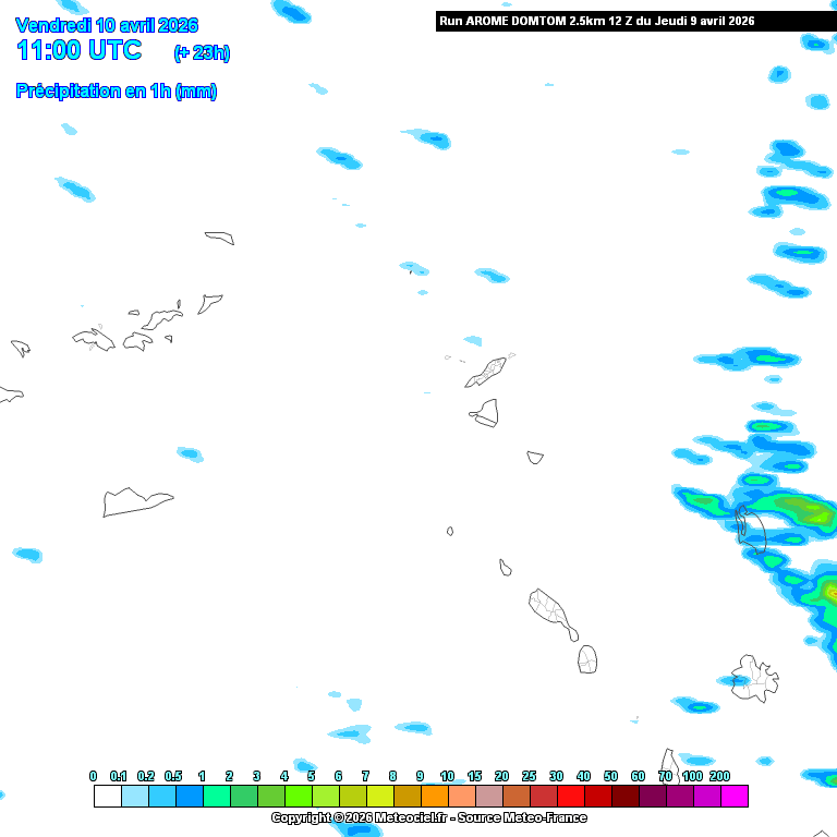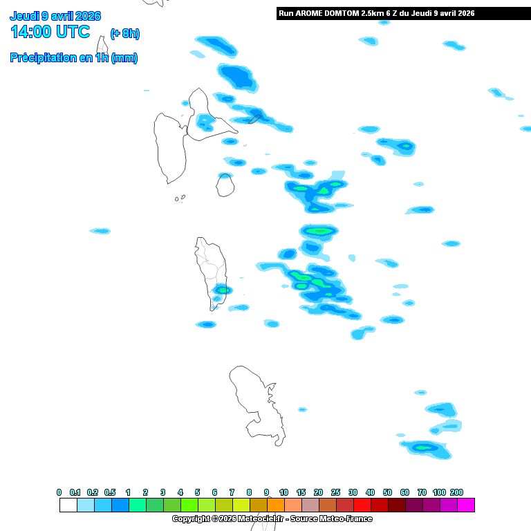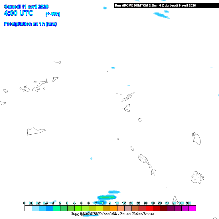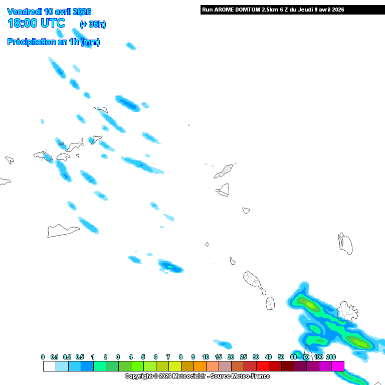 Prévisions du modèle à maille fine AROME pour les Antilles produit par Météo France (Source : Météociel.fr)