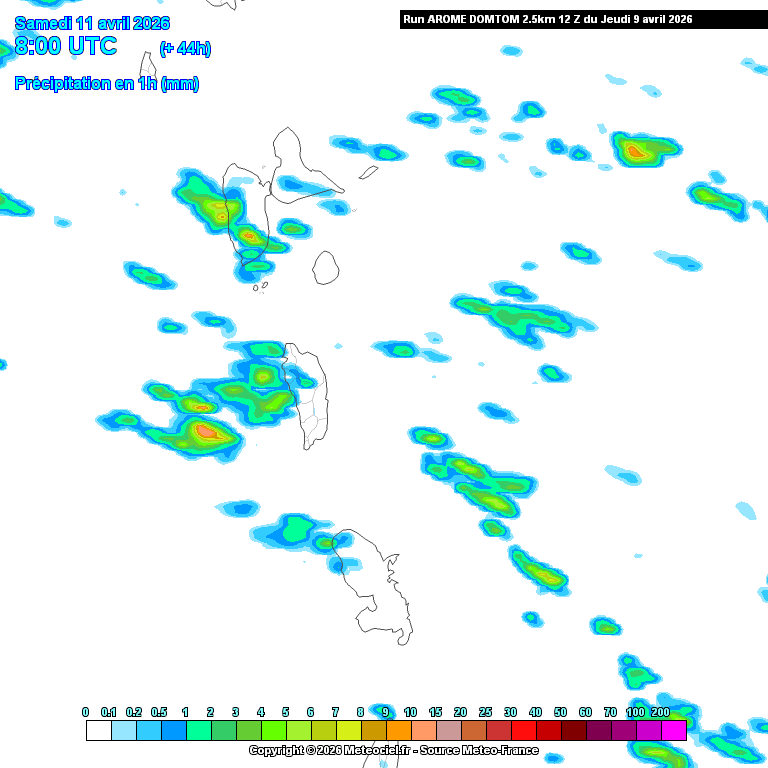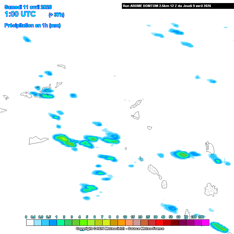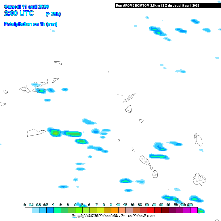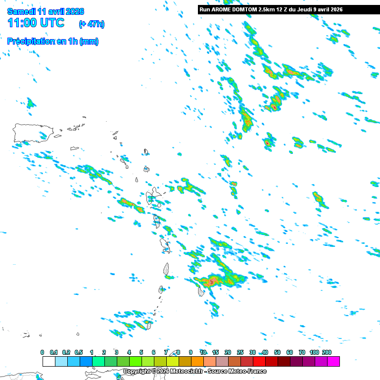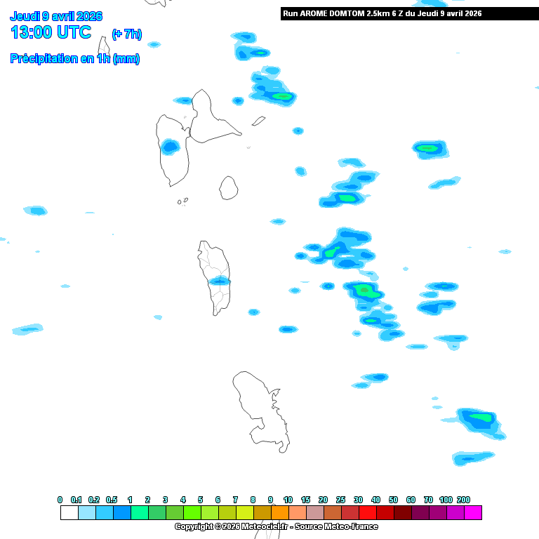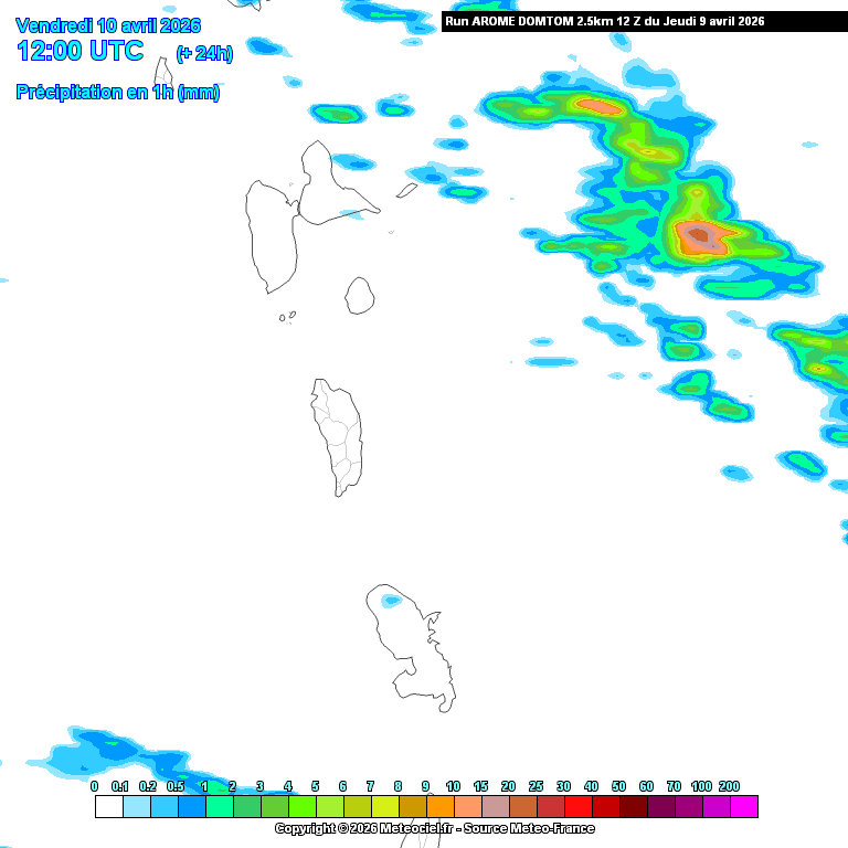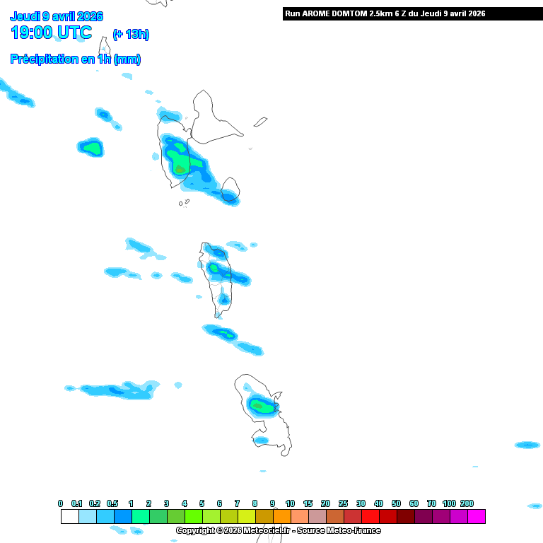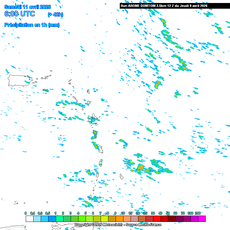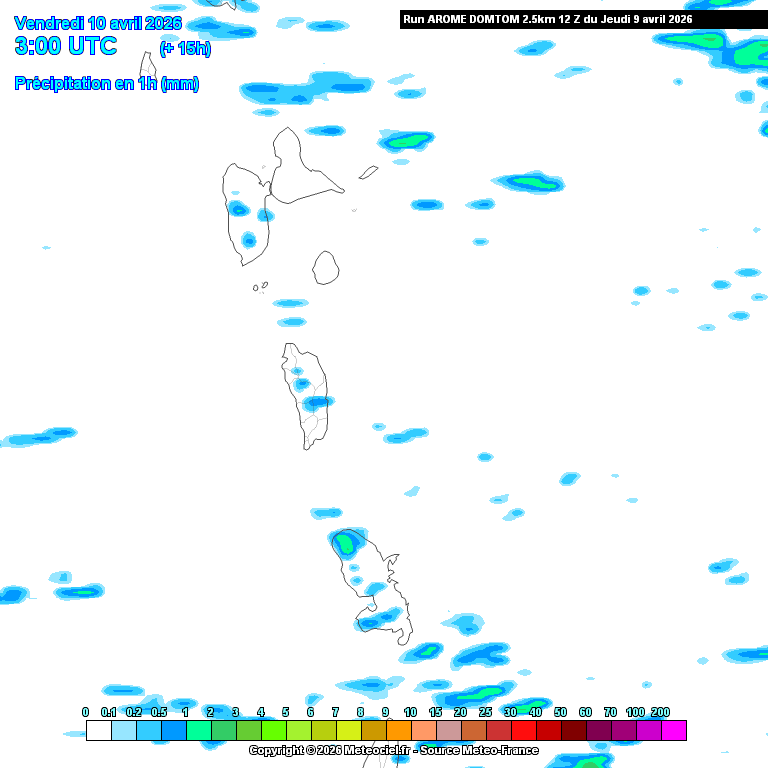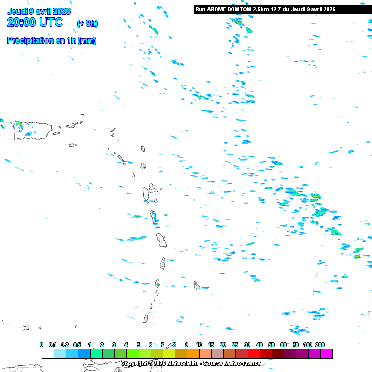 Prévisions du modèle à maille fine AROME pour les Antilles produit par Météo France (Source : Météociel.fr)
