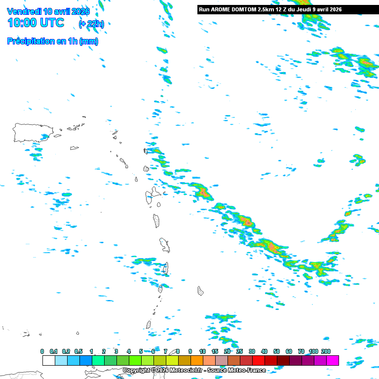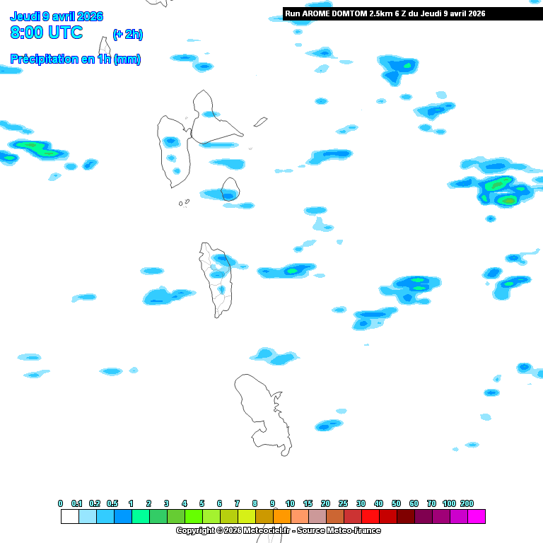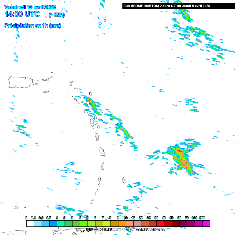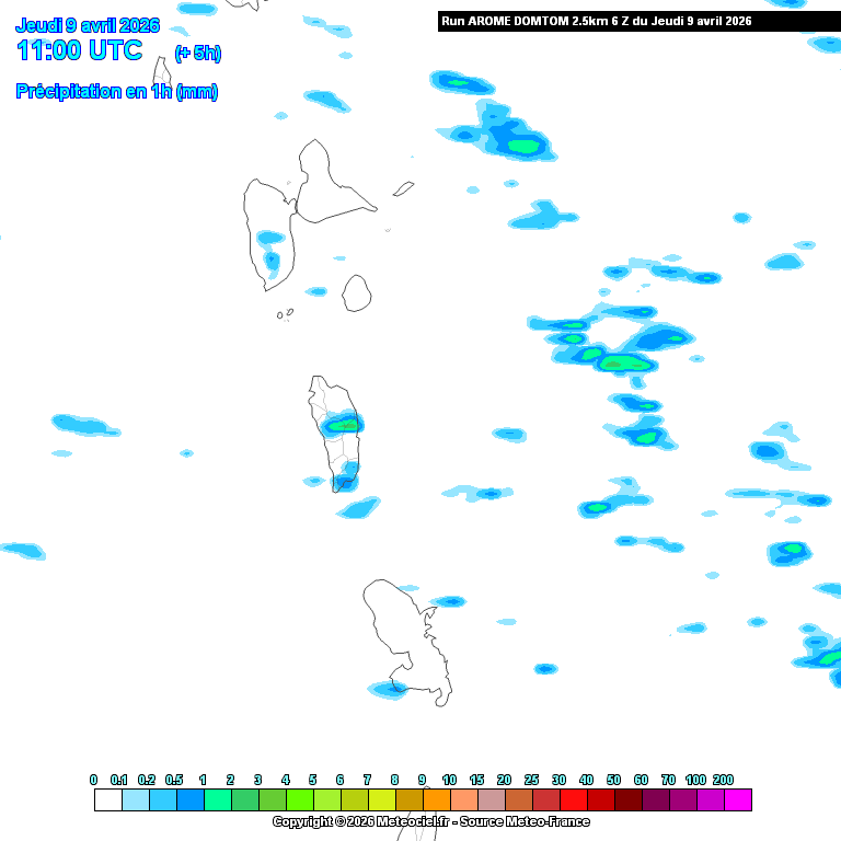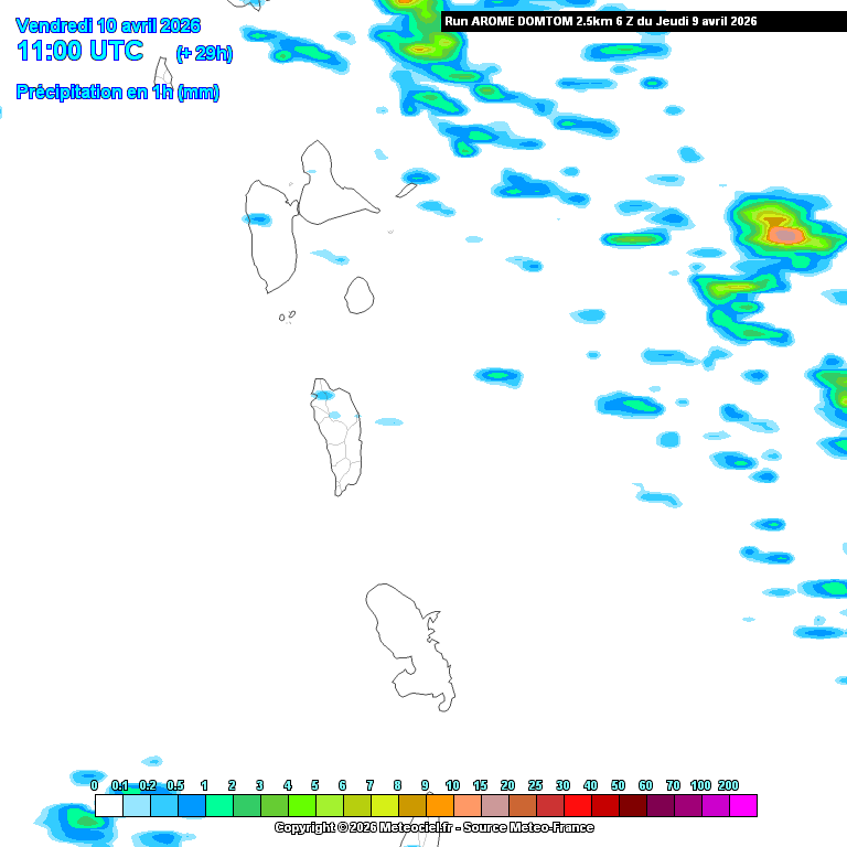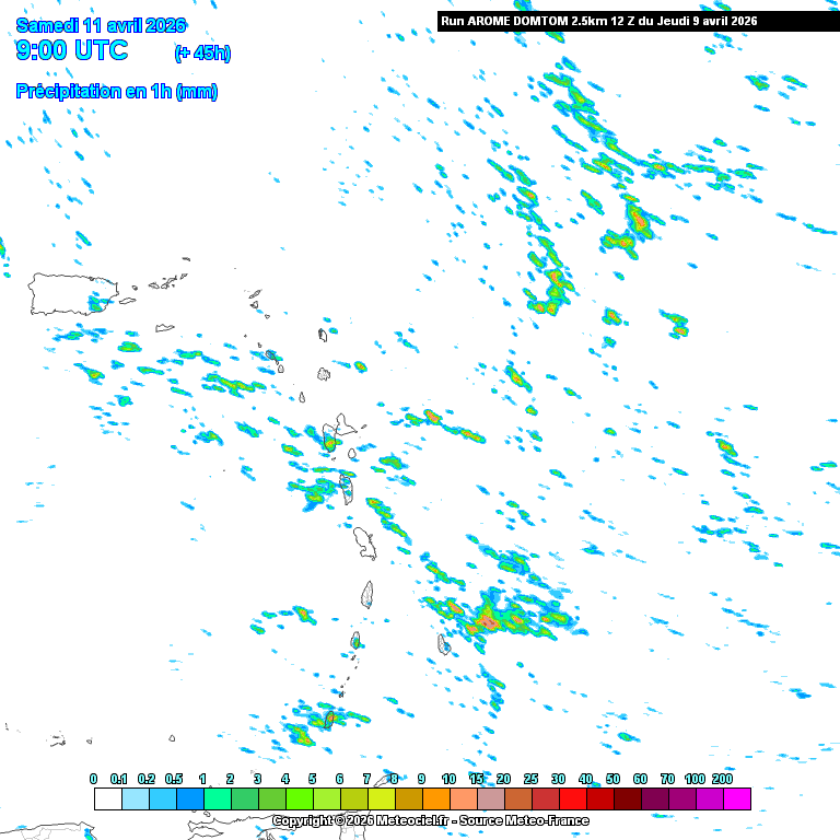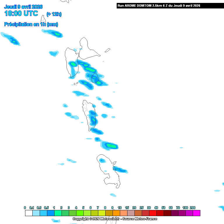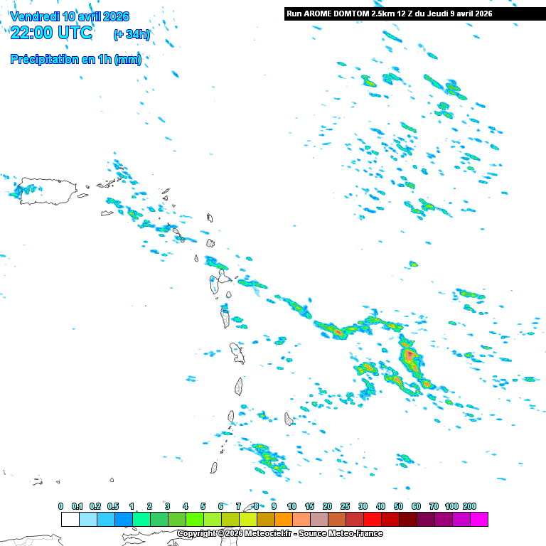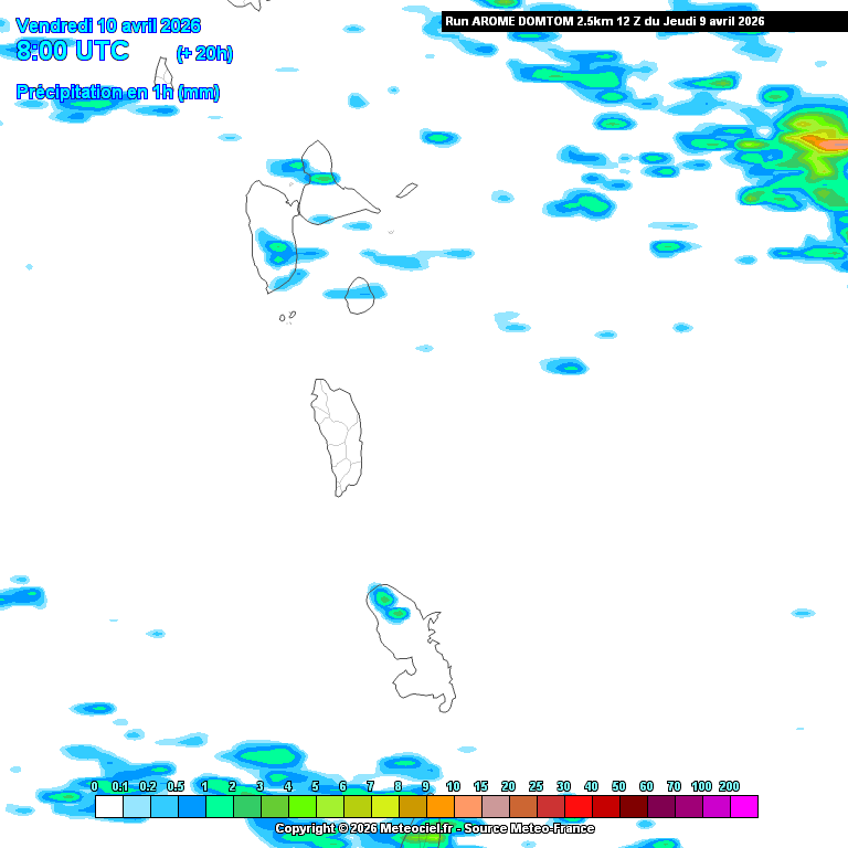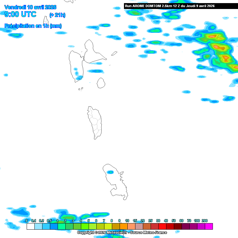 Prévisions du modèle à maille fine AROME pour les Antilles produit par Météo France (Source : Météociel.fr)