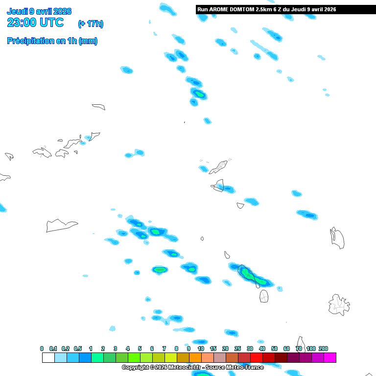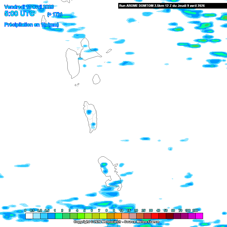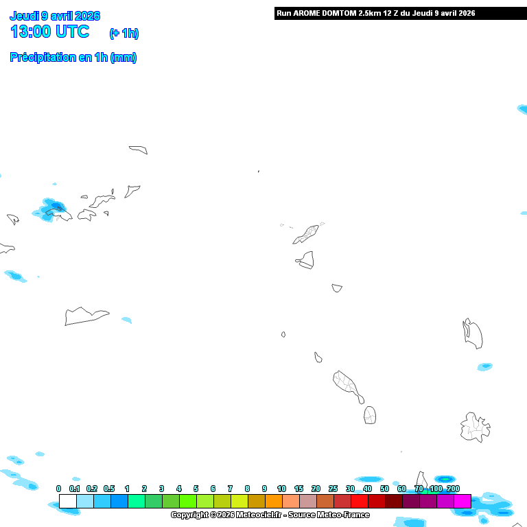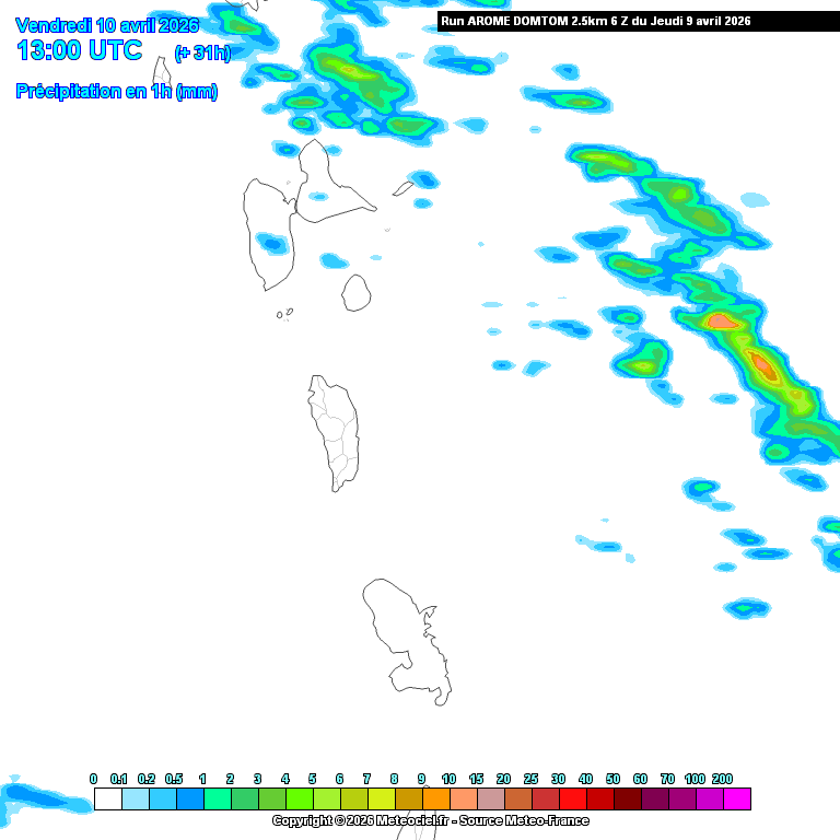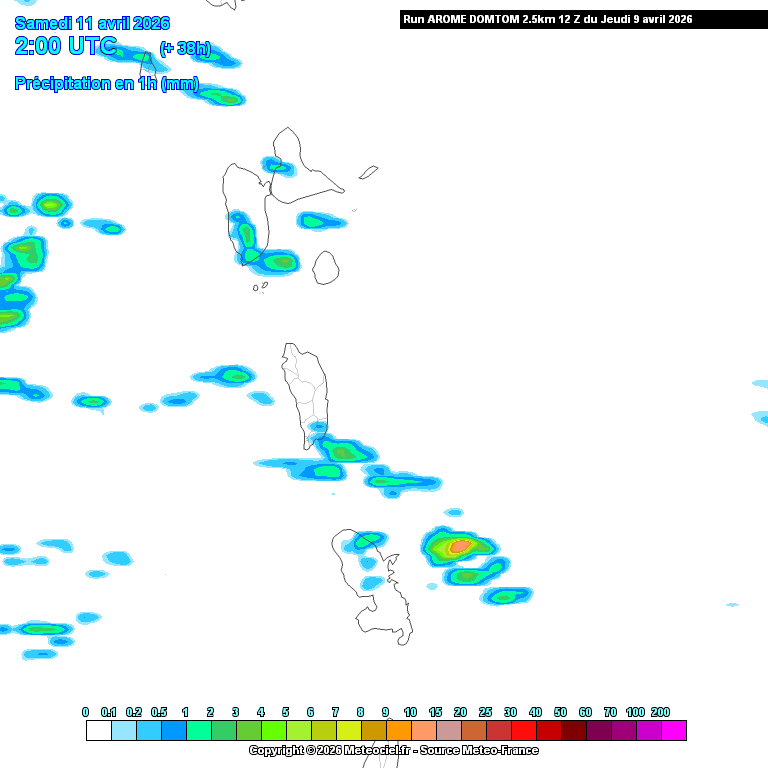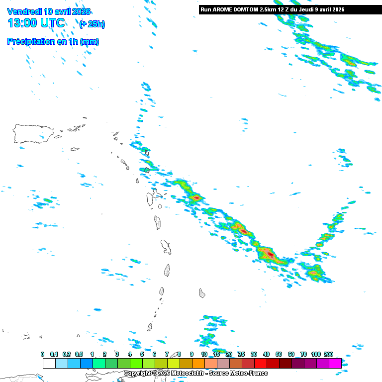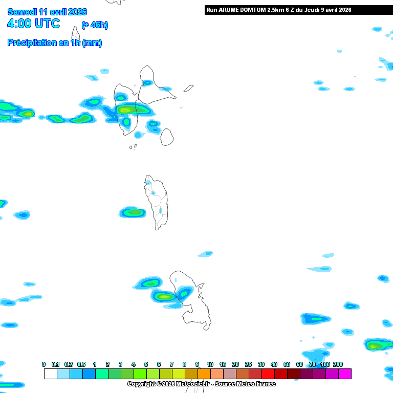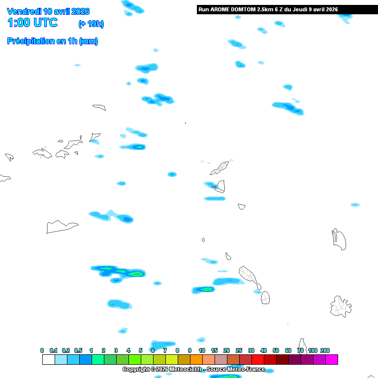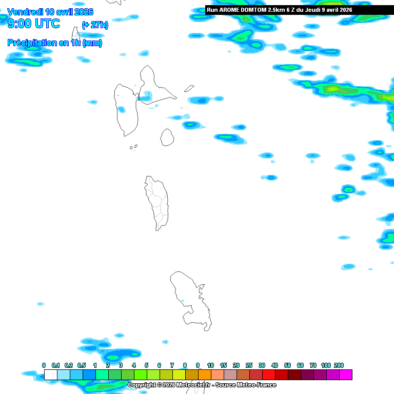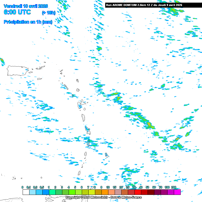 Prévisions du modèle à maille fine AROME pour les Antilles produit par Météo France (Source : Météociel.fr)