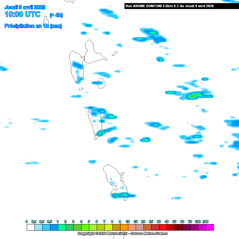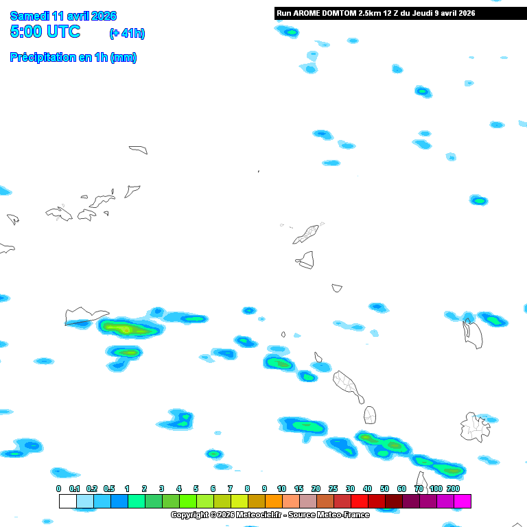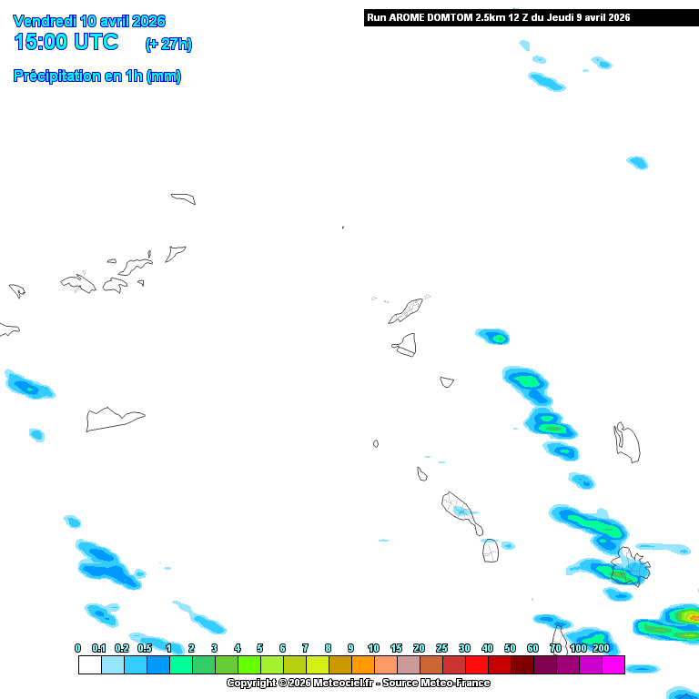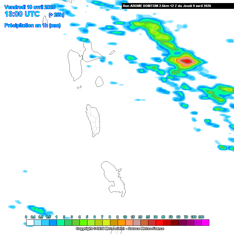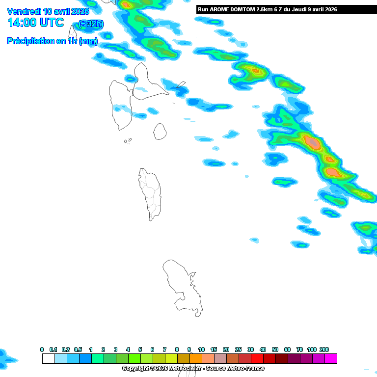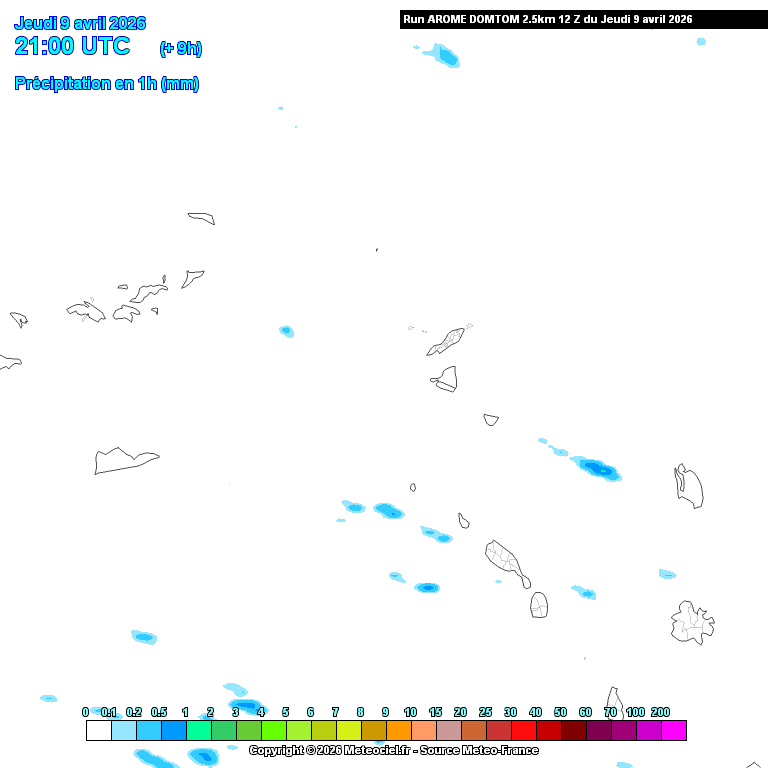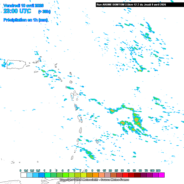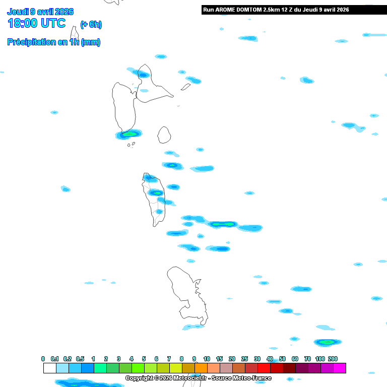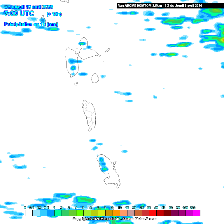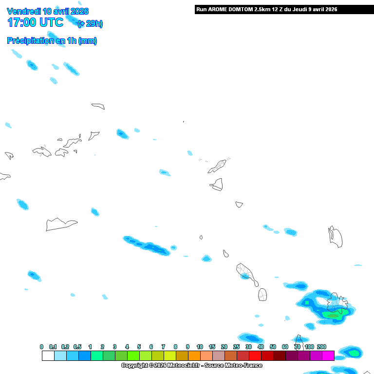 Prévisions du modèle à maille fine AROME pour les Antilles produit par Météo France (Source : Météociel.fr)