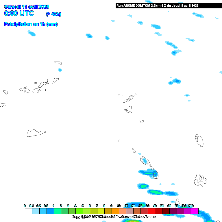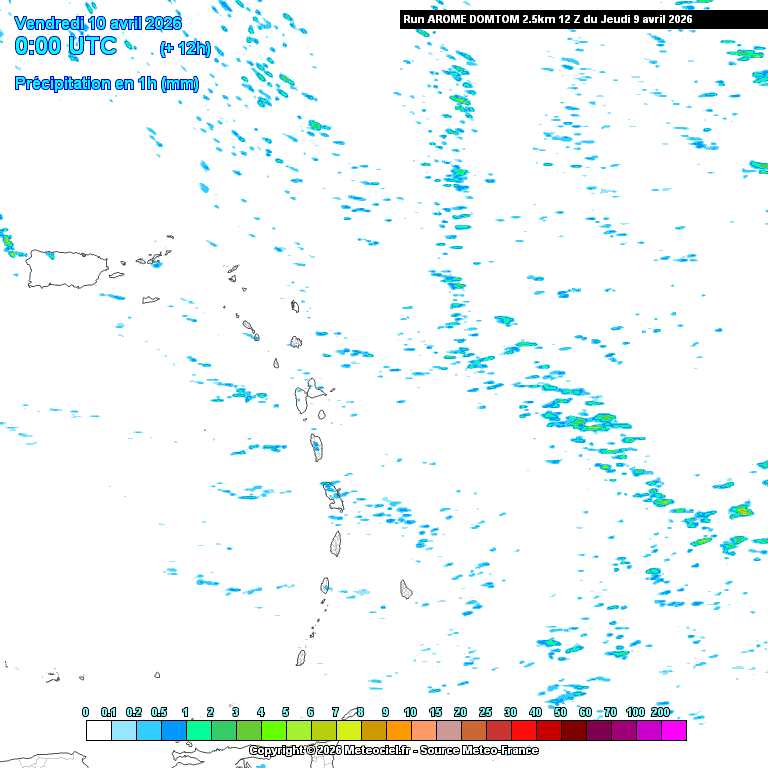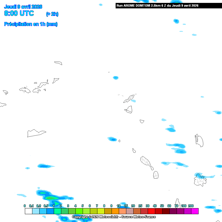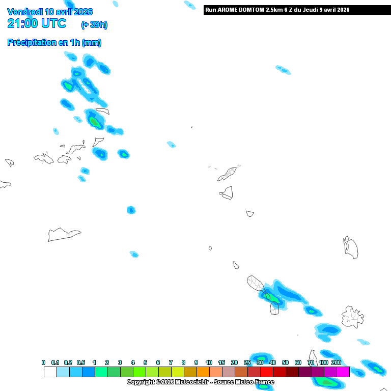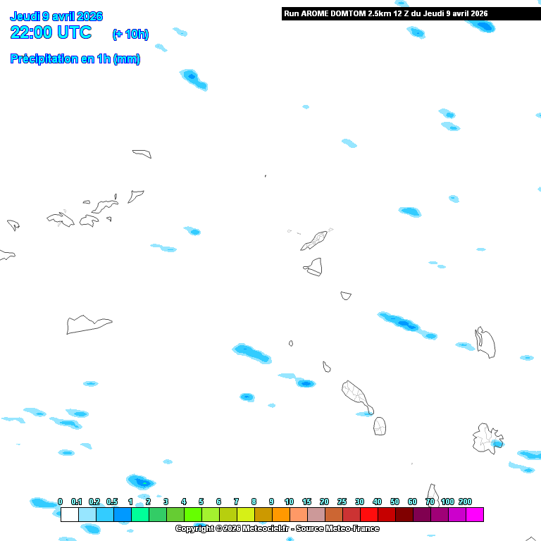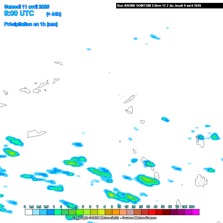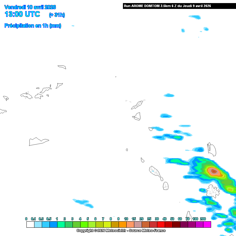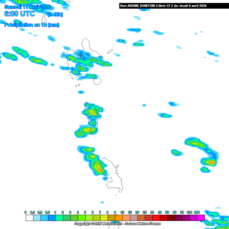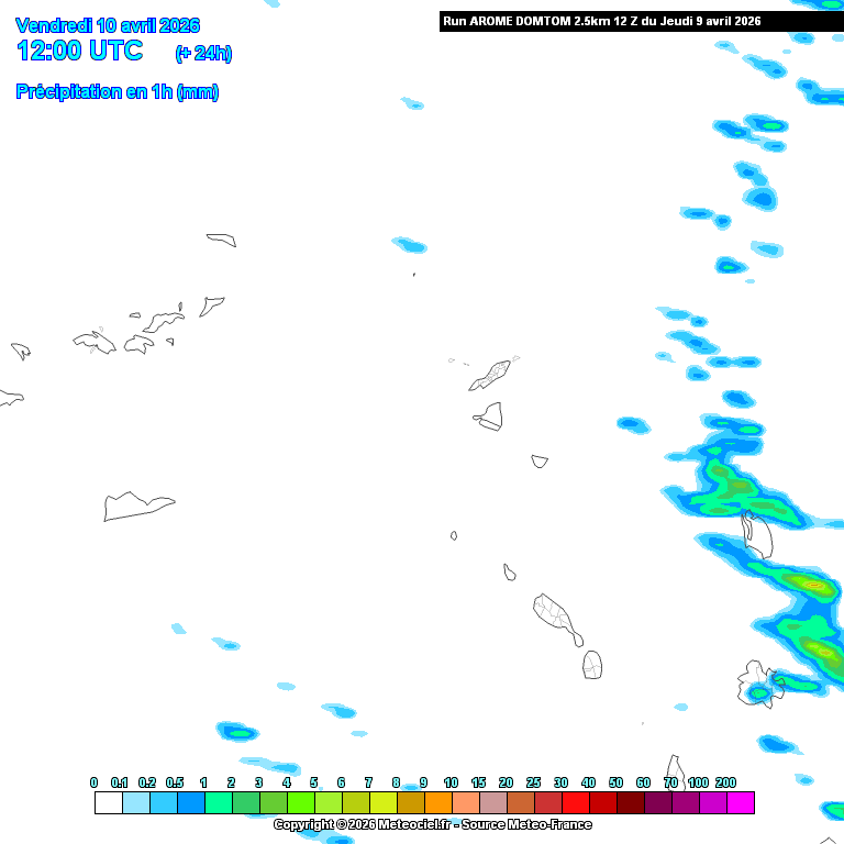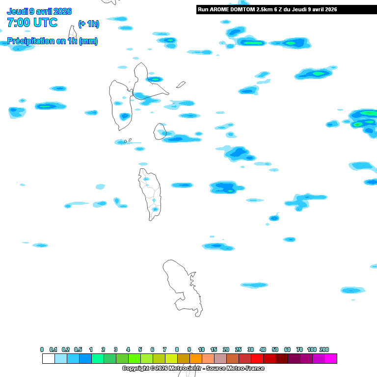 Prévisions du modèle à maille fine AROME pour les Antilles produit par Météo France (Source : Météociel.fr)