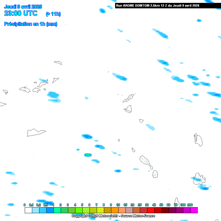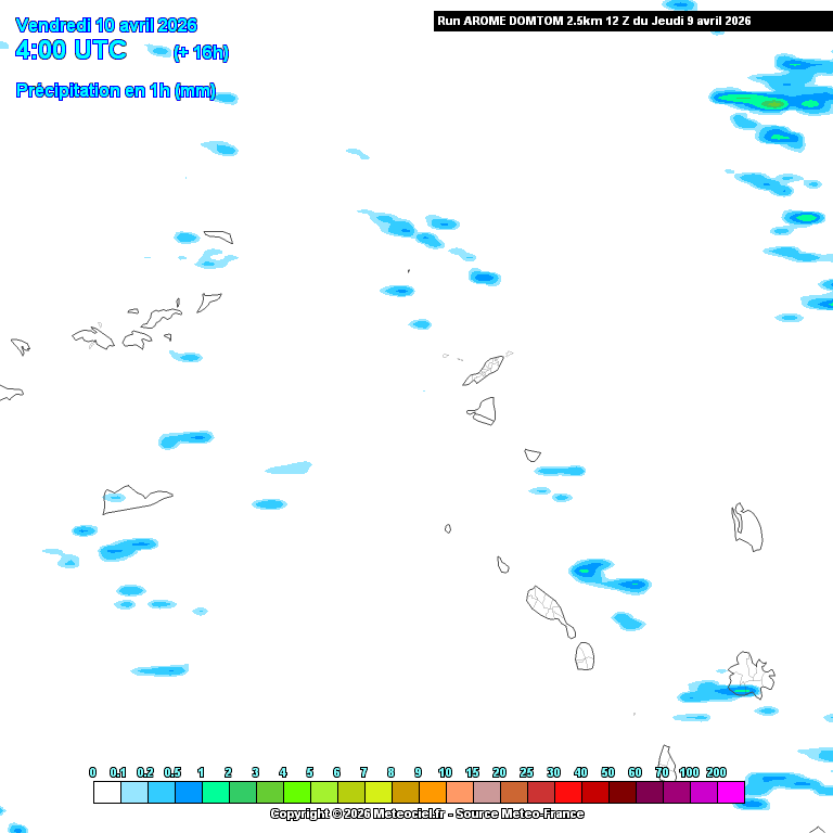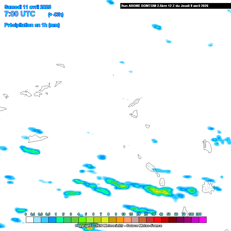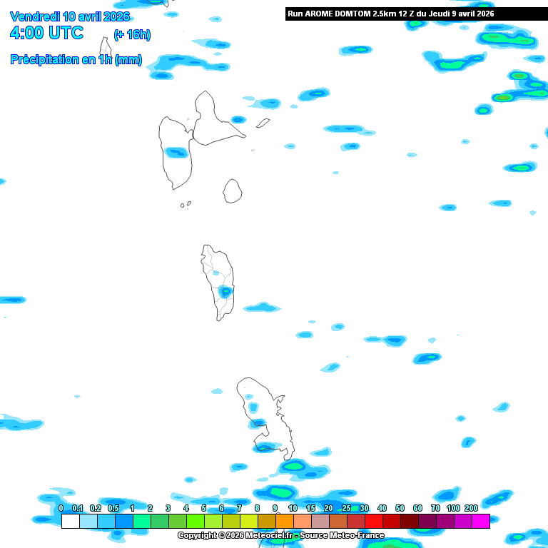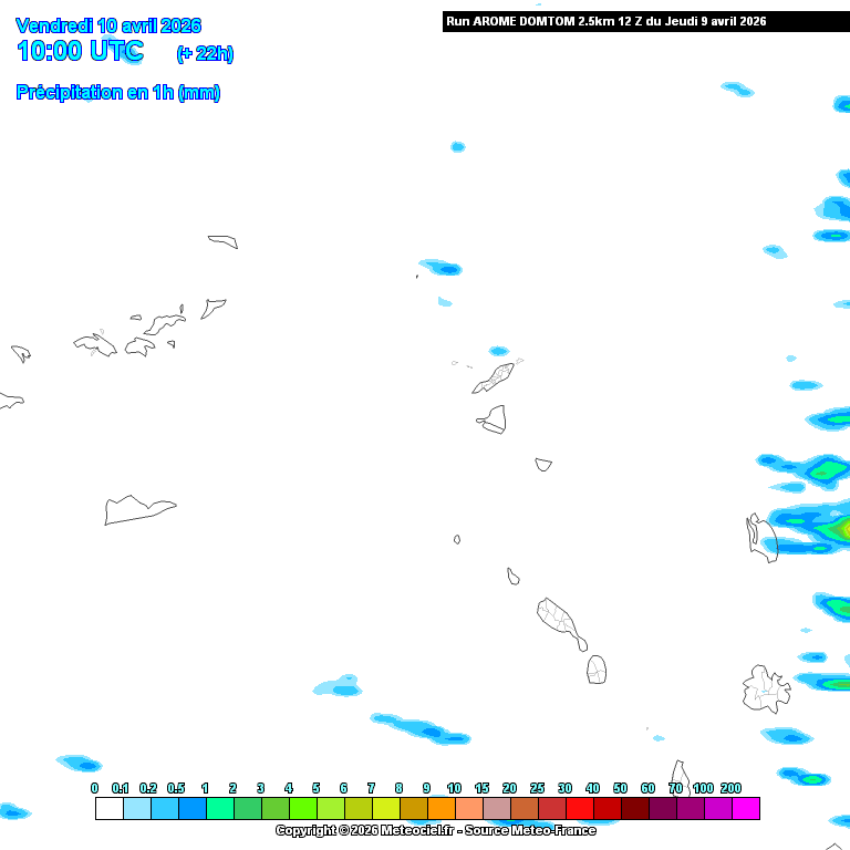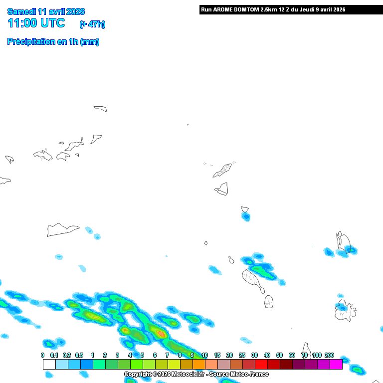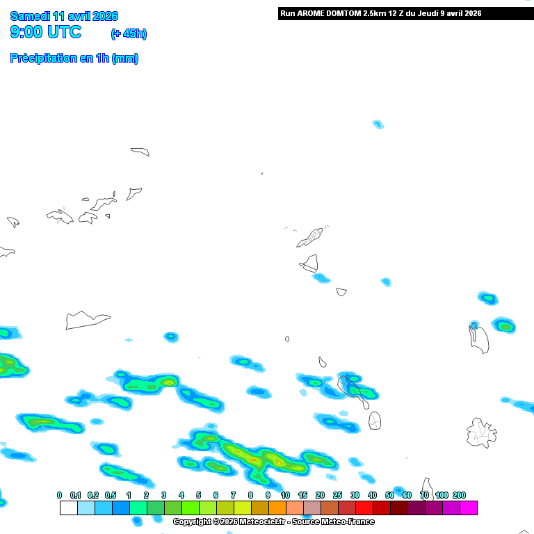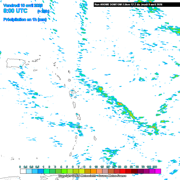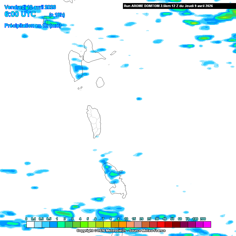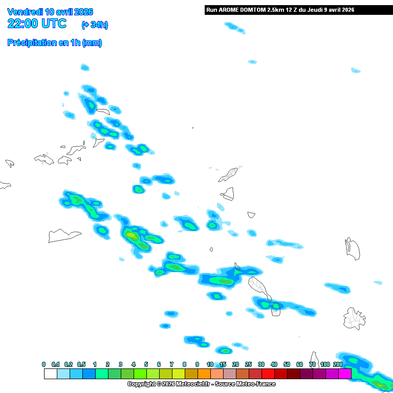 Prévisions du modèle à maille fine AROME pour les Antilles produit par Météo France (Source : Météociel.fr)