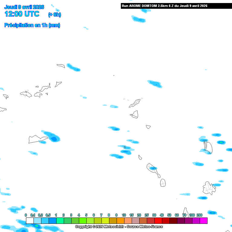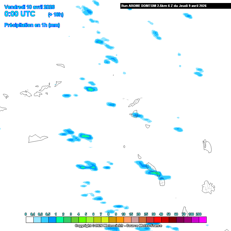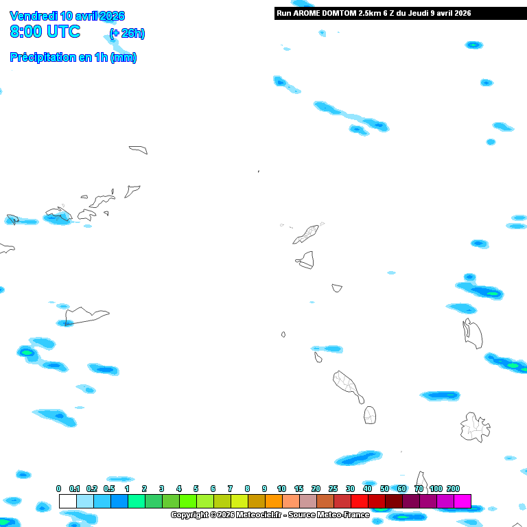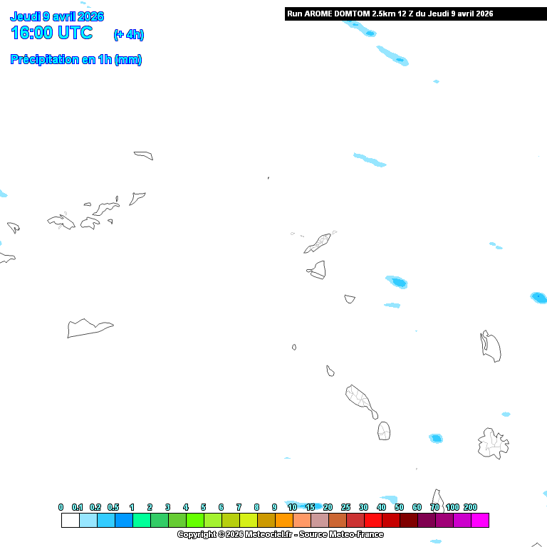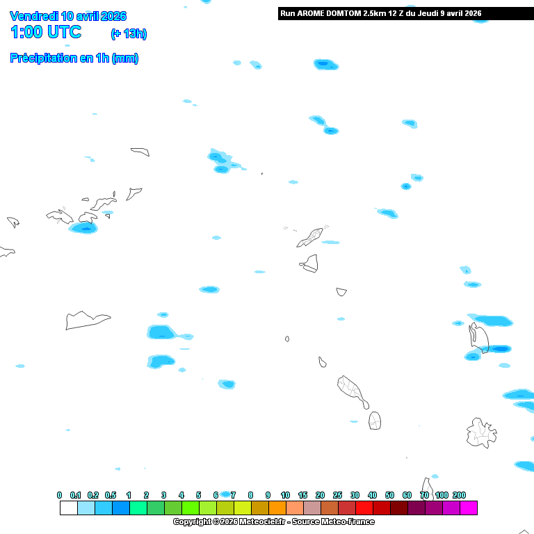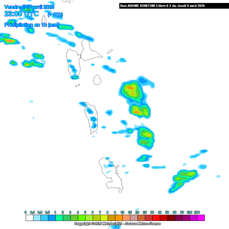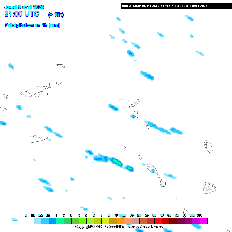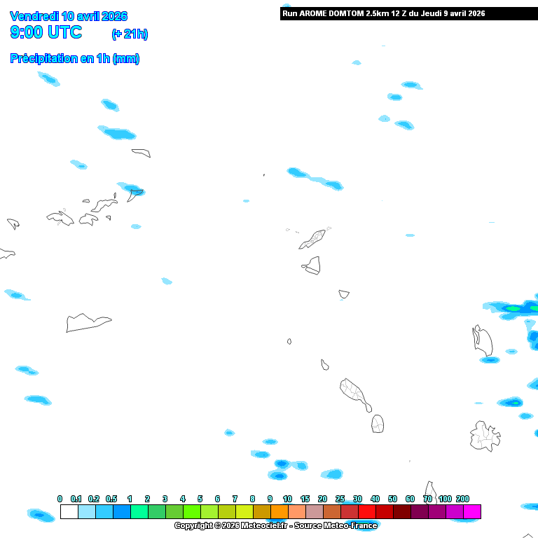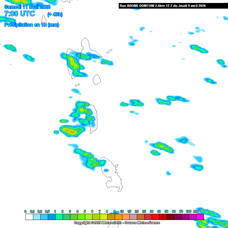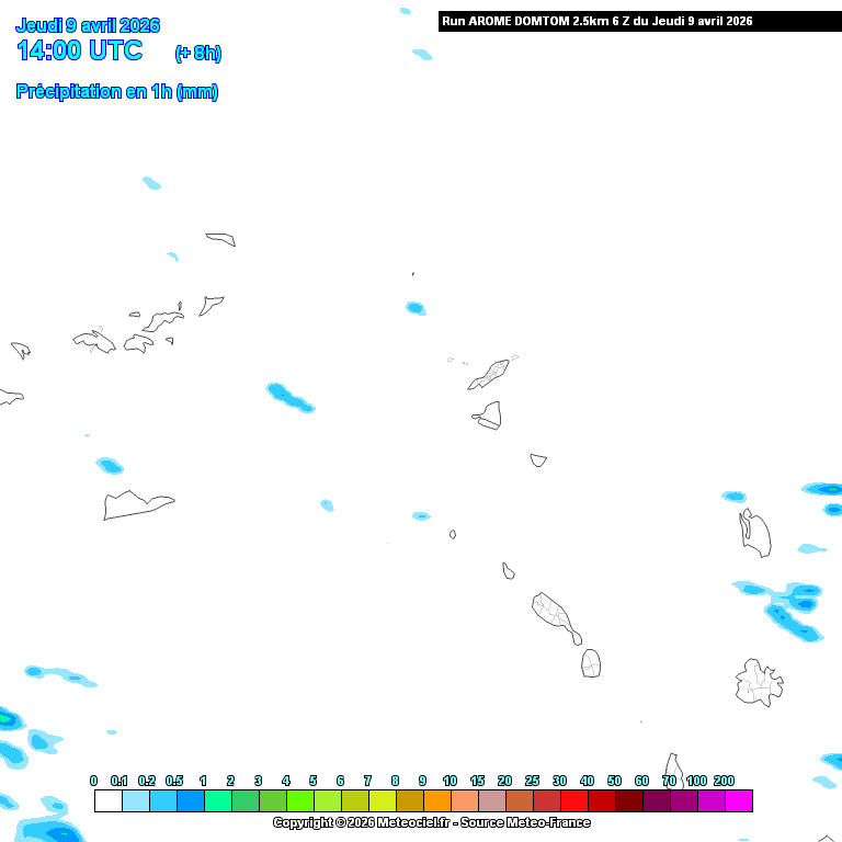 Prévisions du modèle à maille fine AROME pour les Antilles produit par Météo France (Source : Météociel.fr)