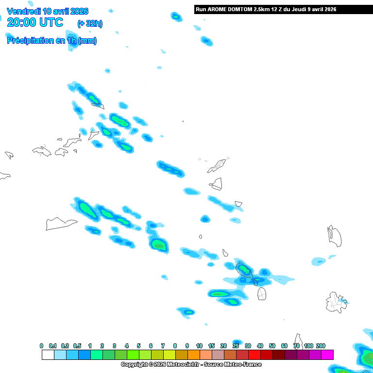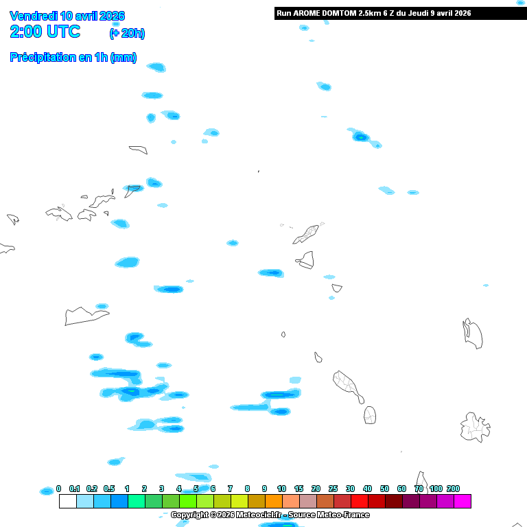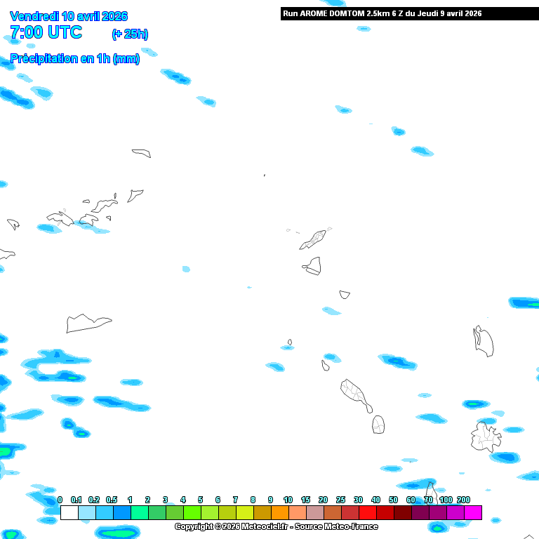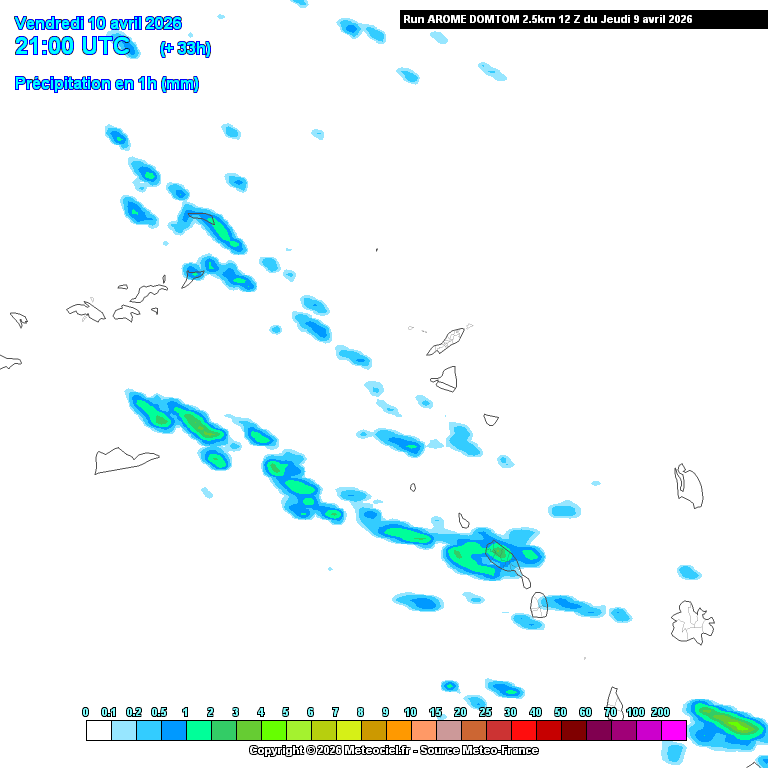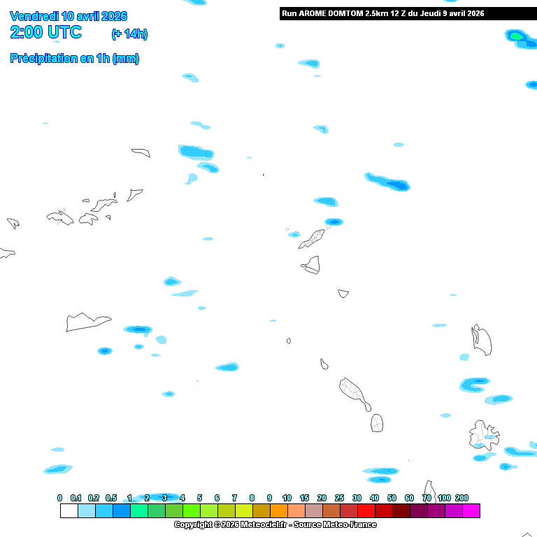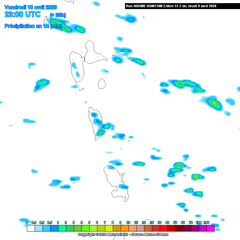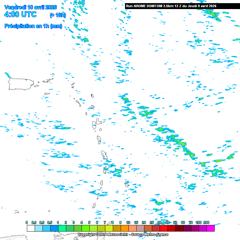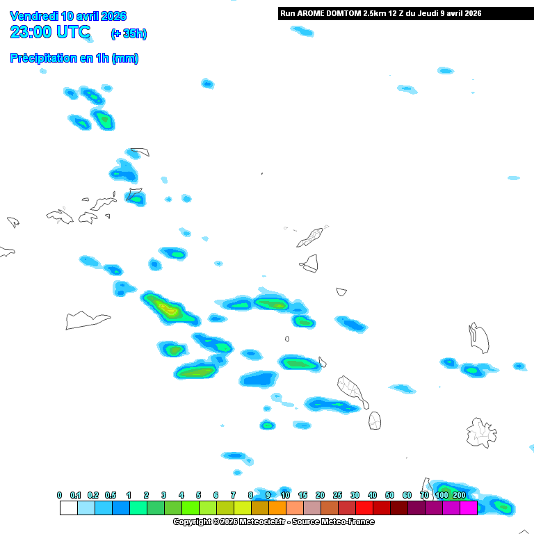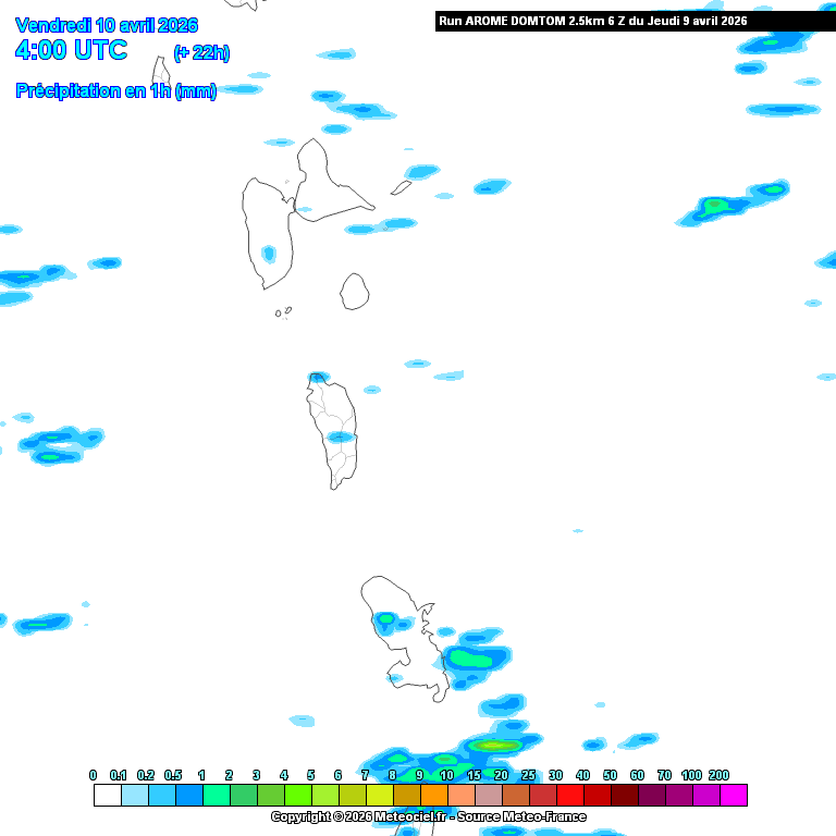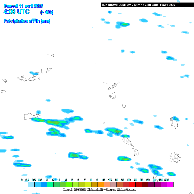 Prévisions du modèle à maille fine AROME pour les Antilles produit par Météo France (Source : Météociel.fr)
