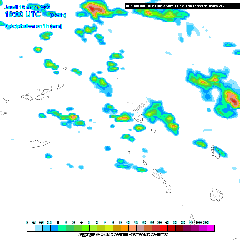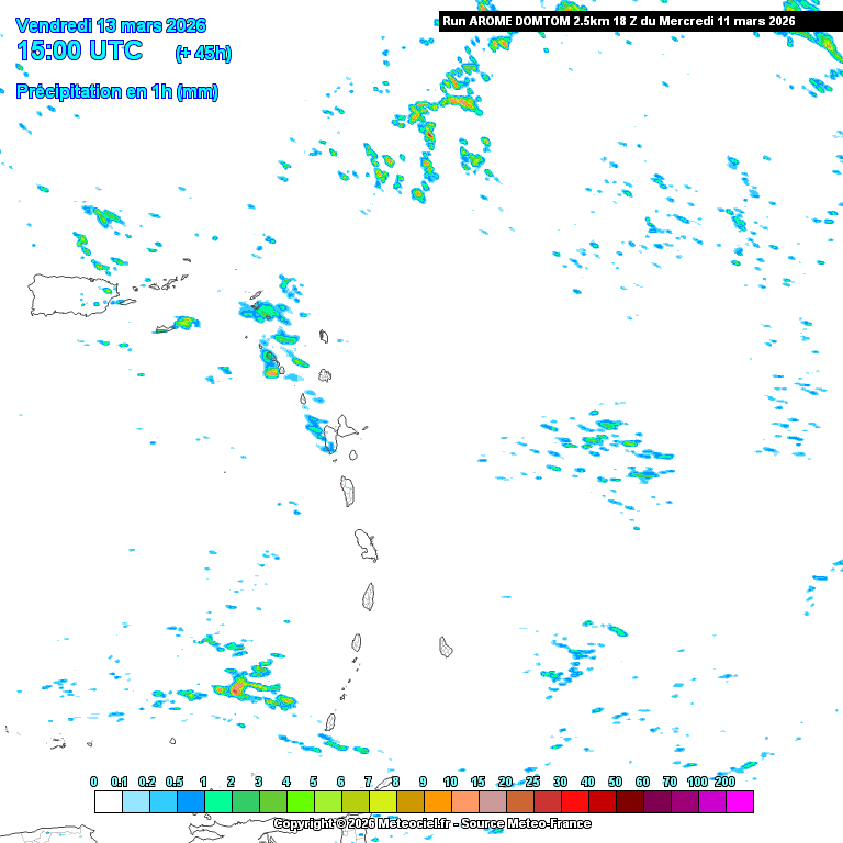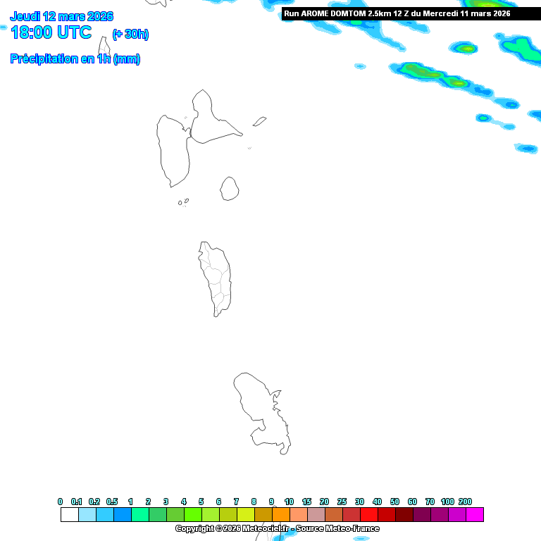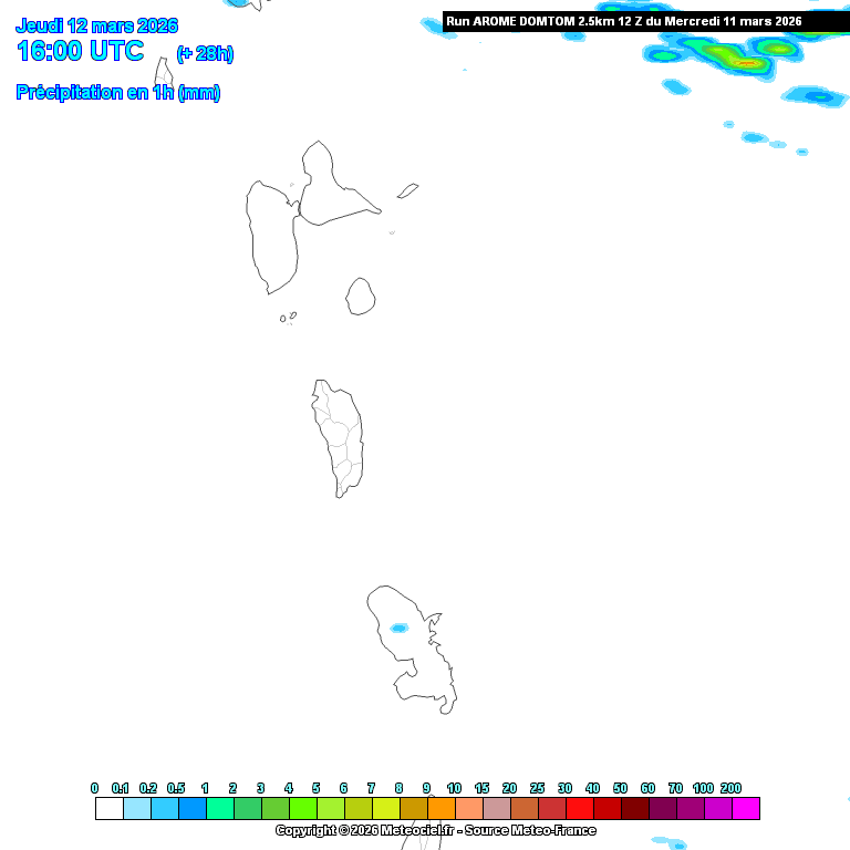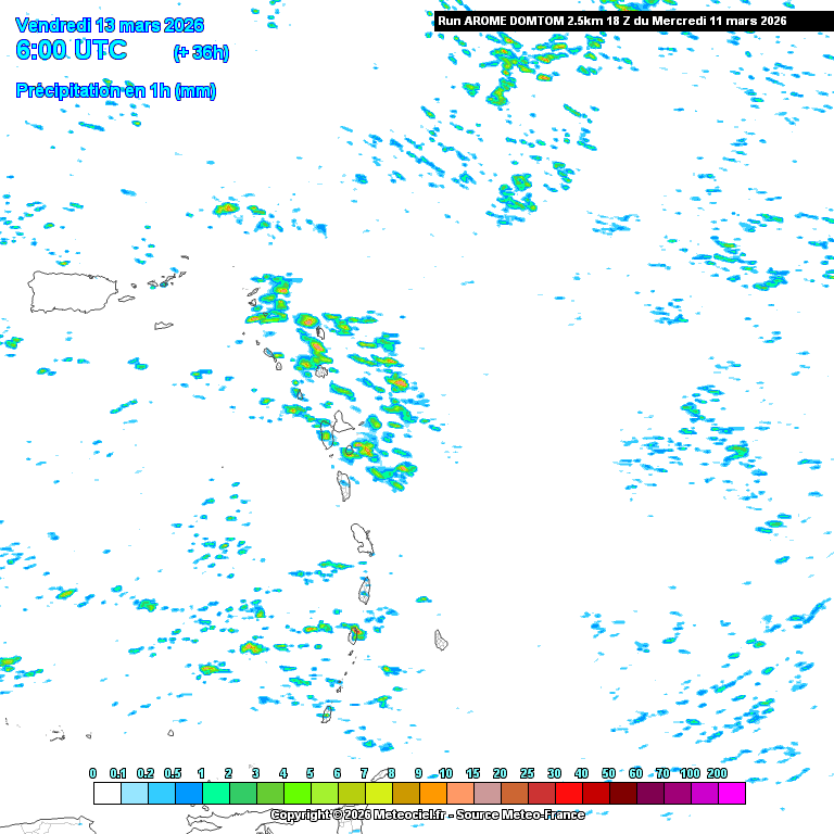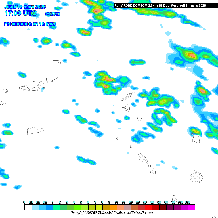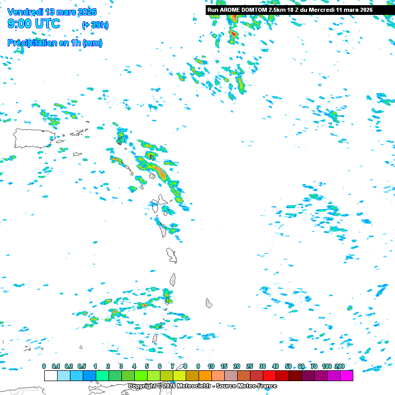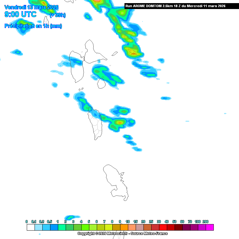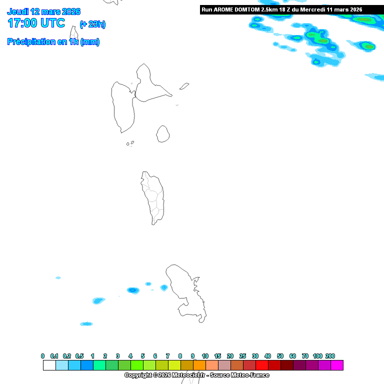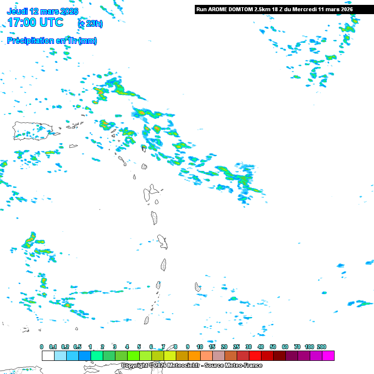 Prévisions du modèle à maille fine AROME pour les Antilles produit par Météo France (Source : Météociel.fr)