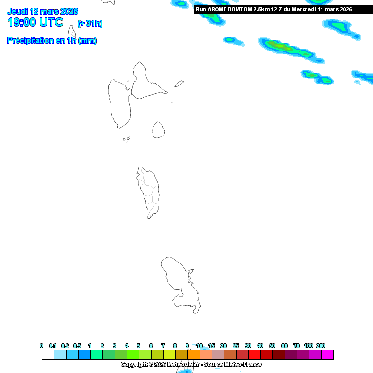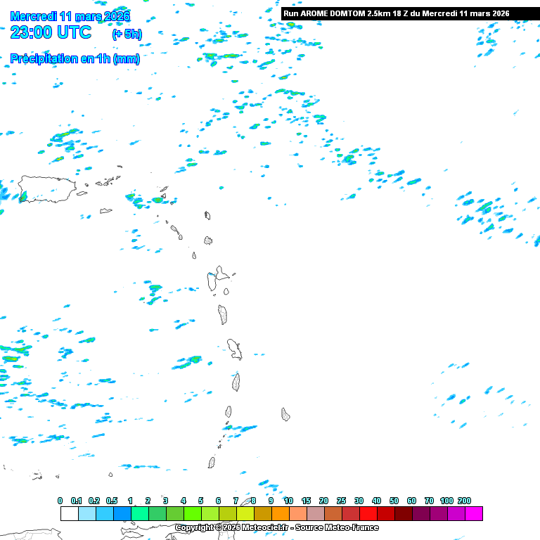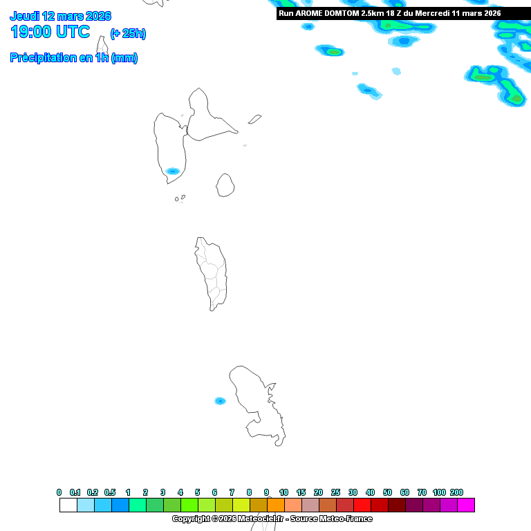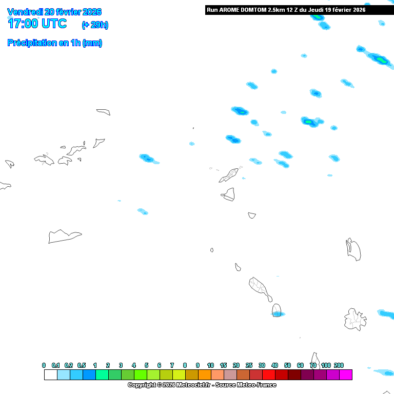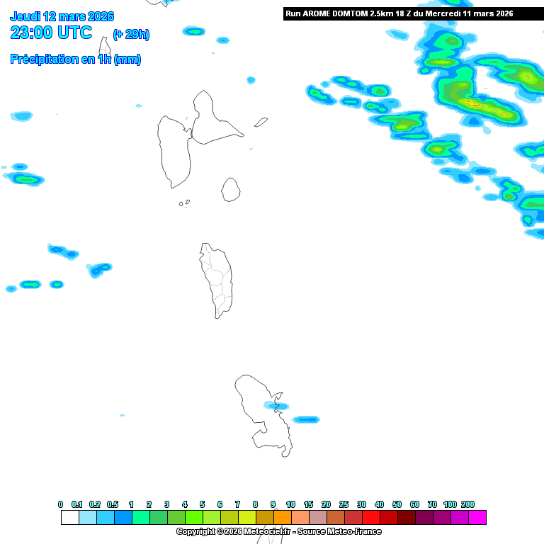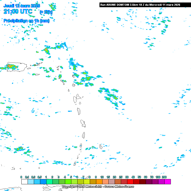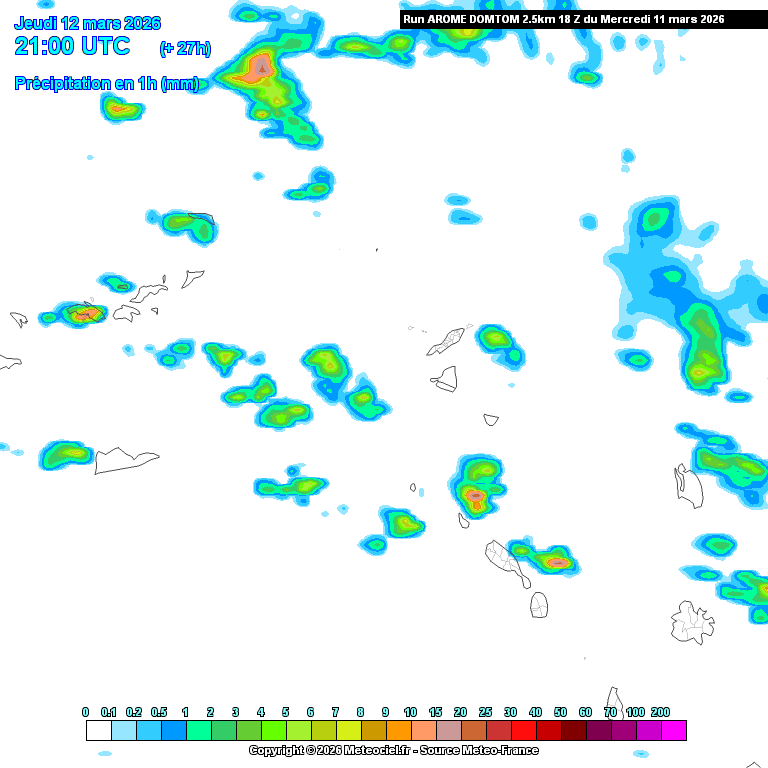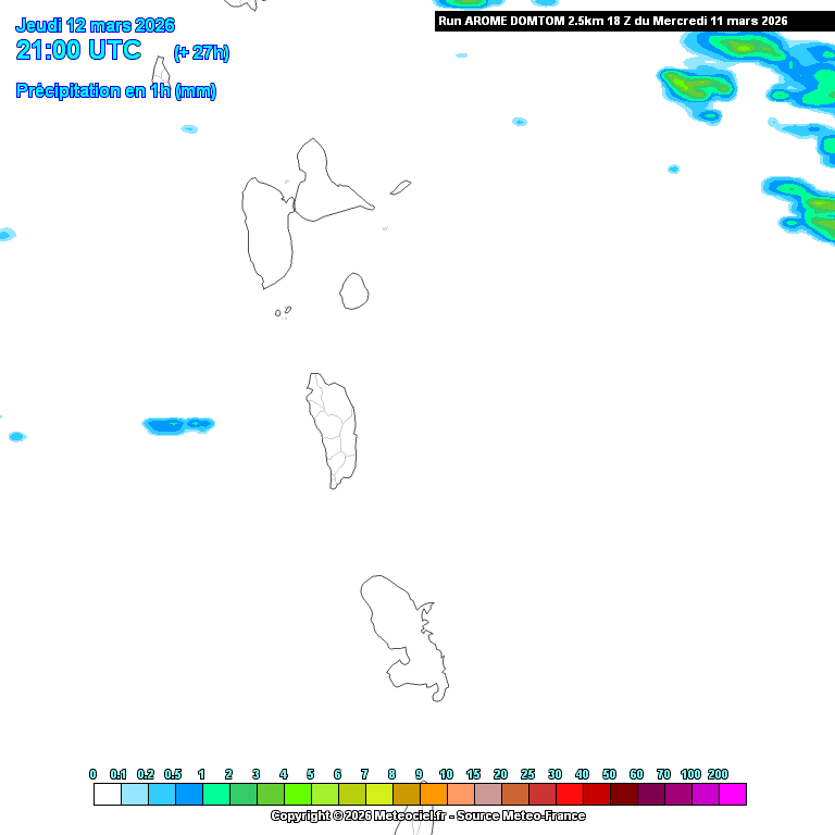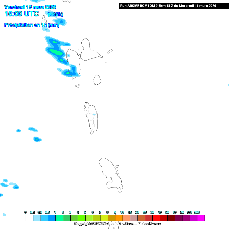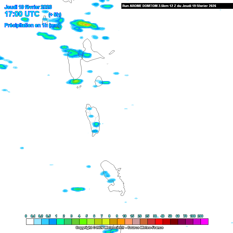 Prévisions du modèle à maille fine AROME pour les Antilles produit par Météo France (Source : Météociel.fr)