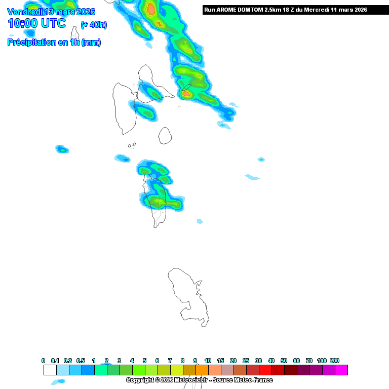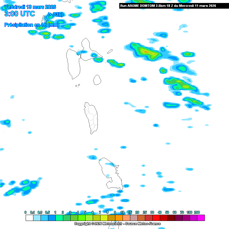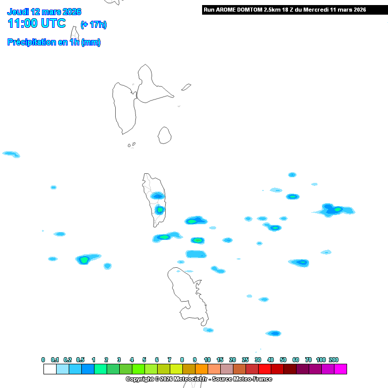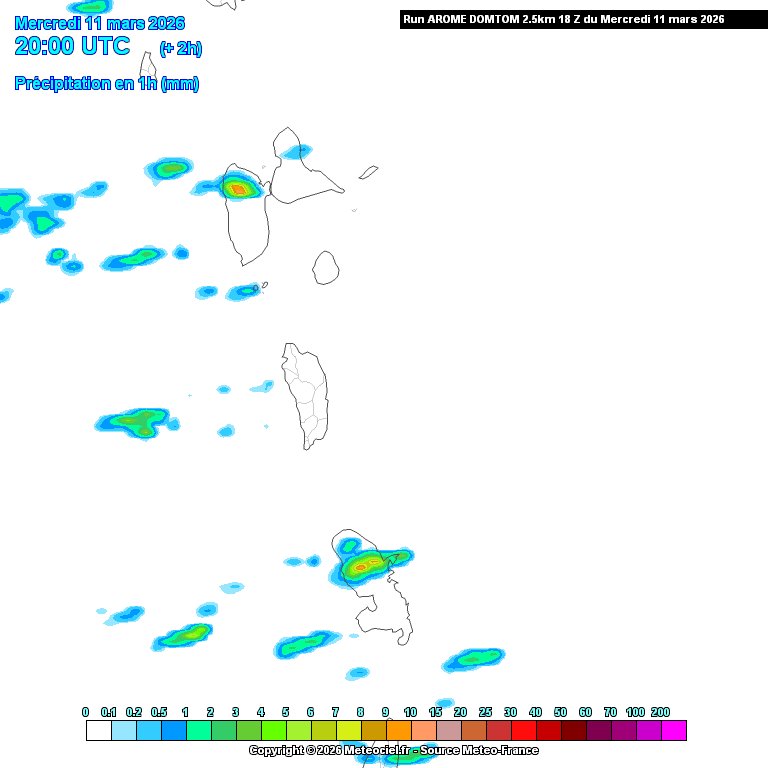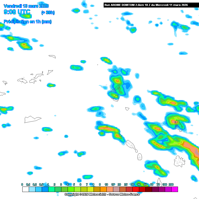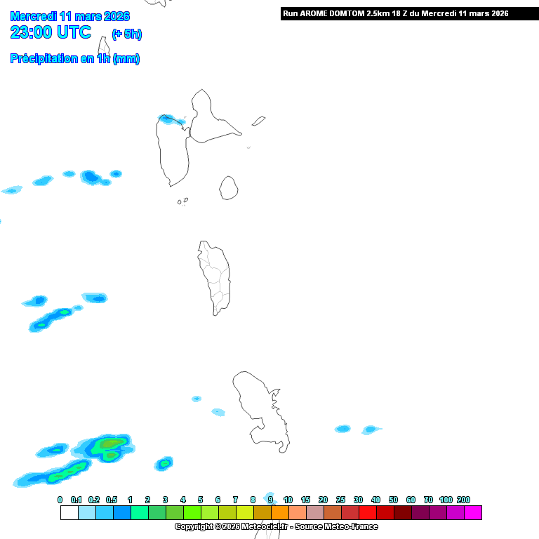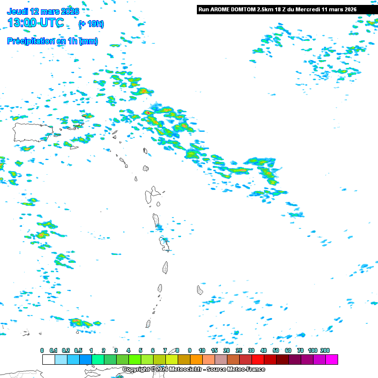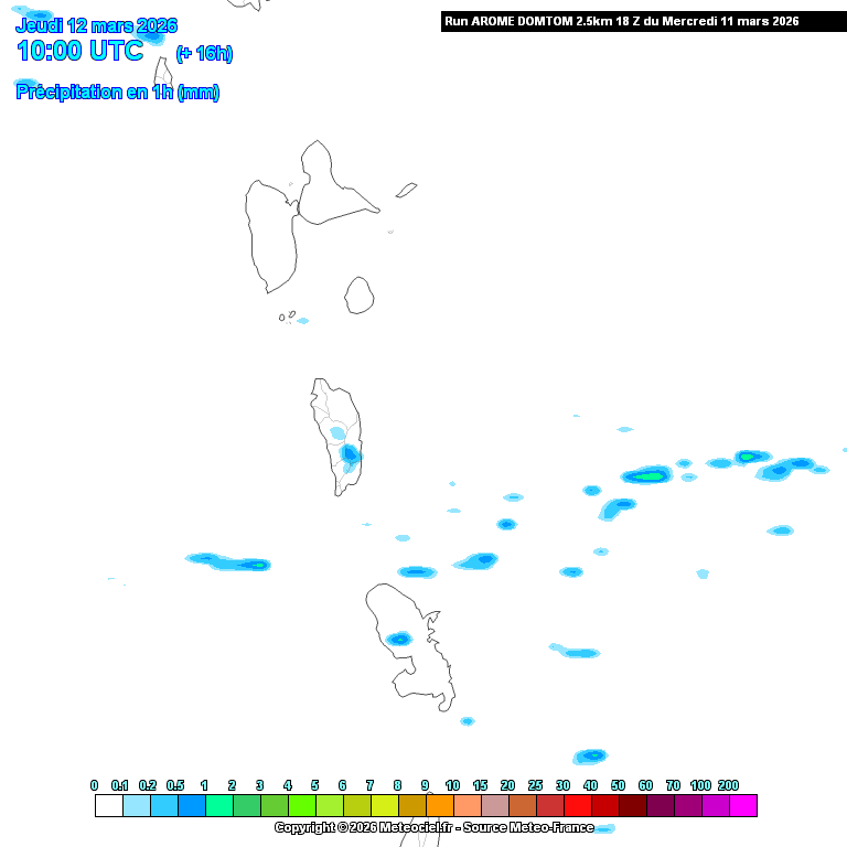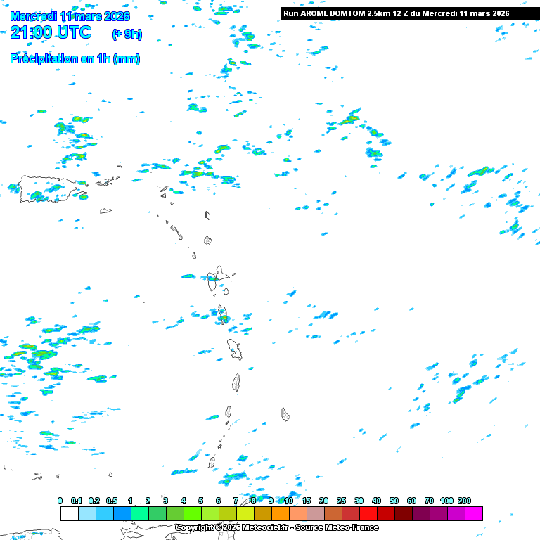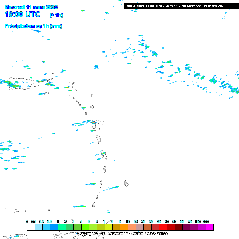Prévisions du modèle à maille fine AROME pour les Antilles produit par Météo France (Source : Météociel.fr)
