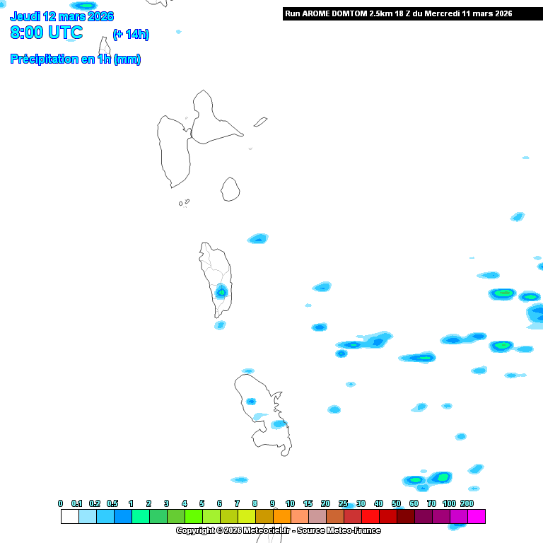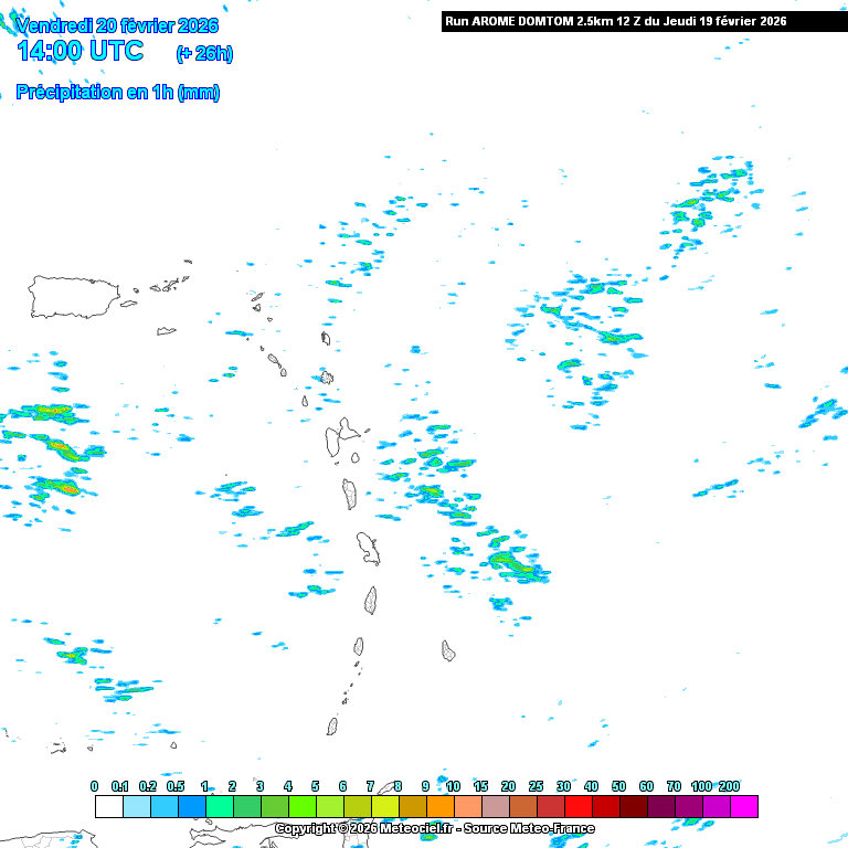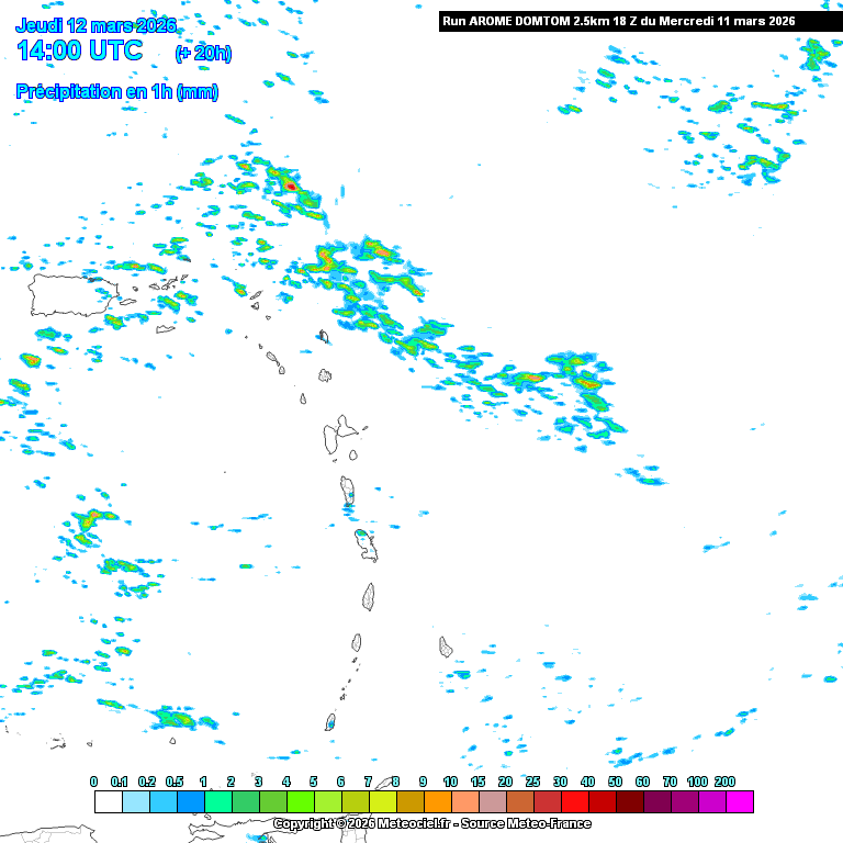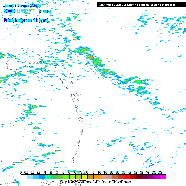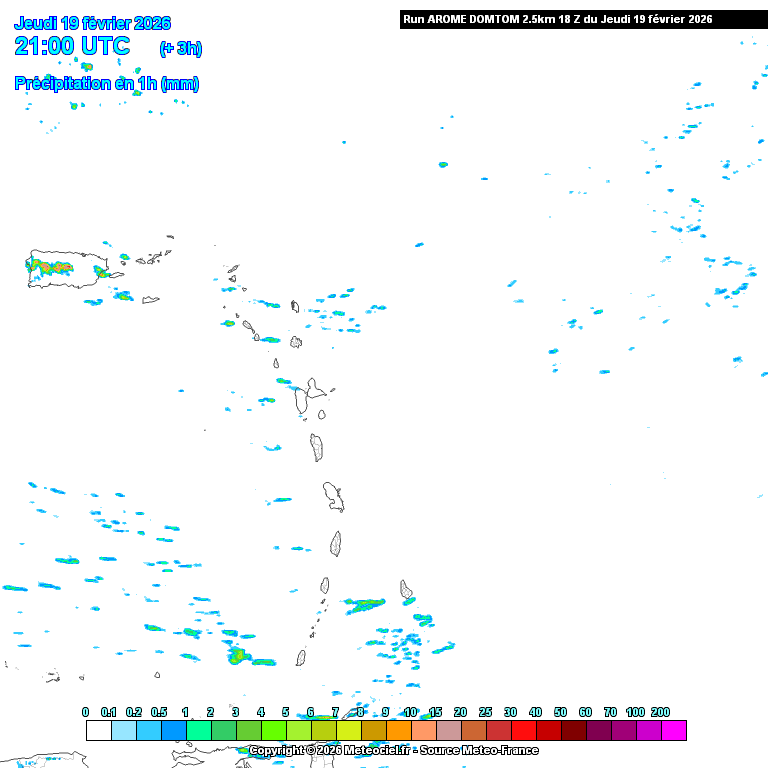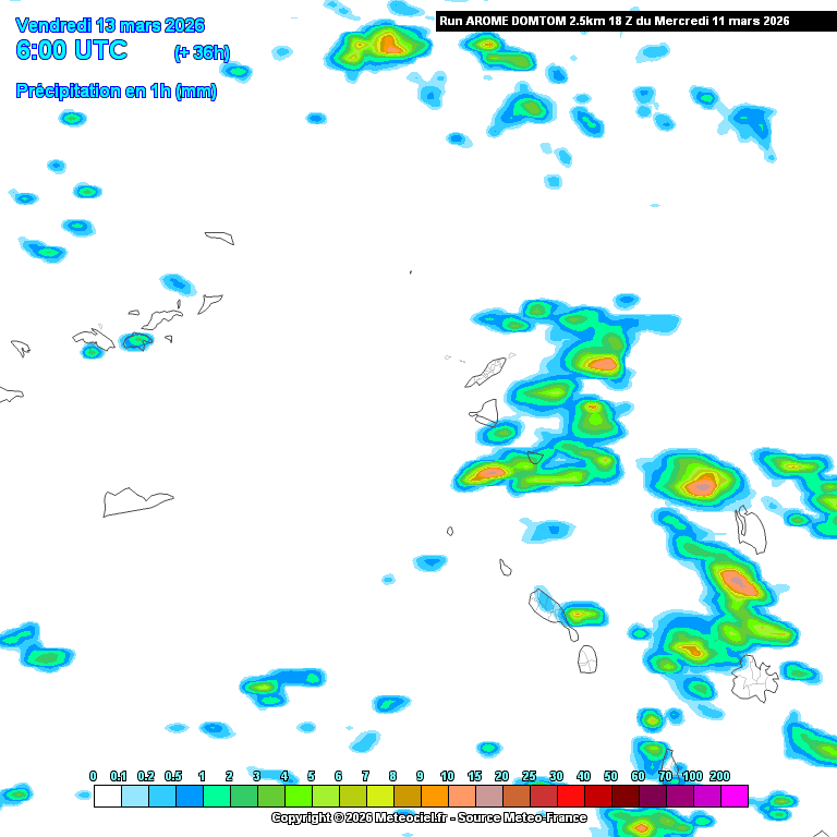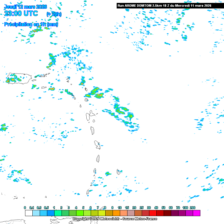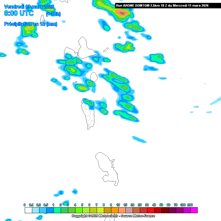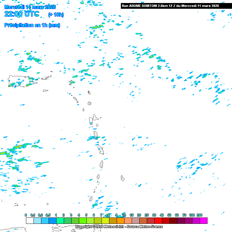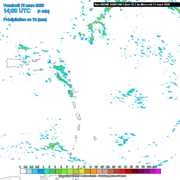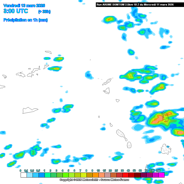 Prévisions du modèle à maille fine AROME pour les Antilles produit par Météo France (Source : Météociel.fr)