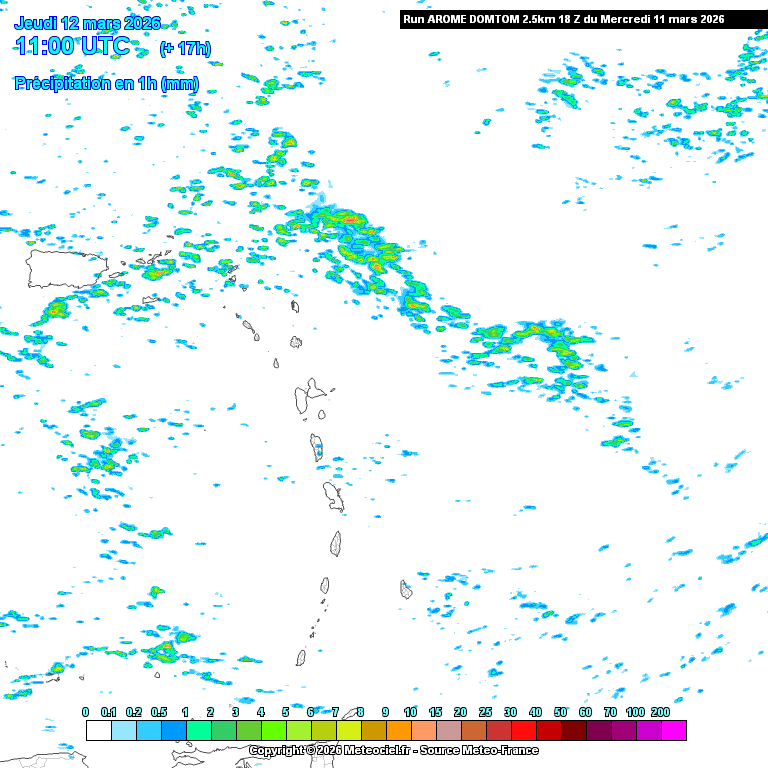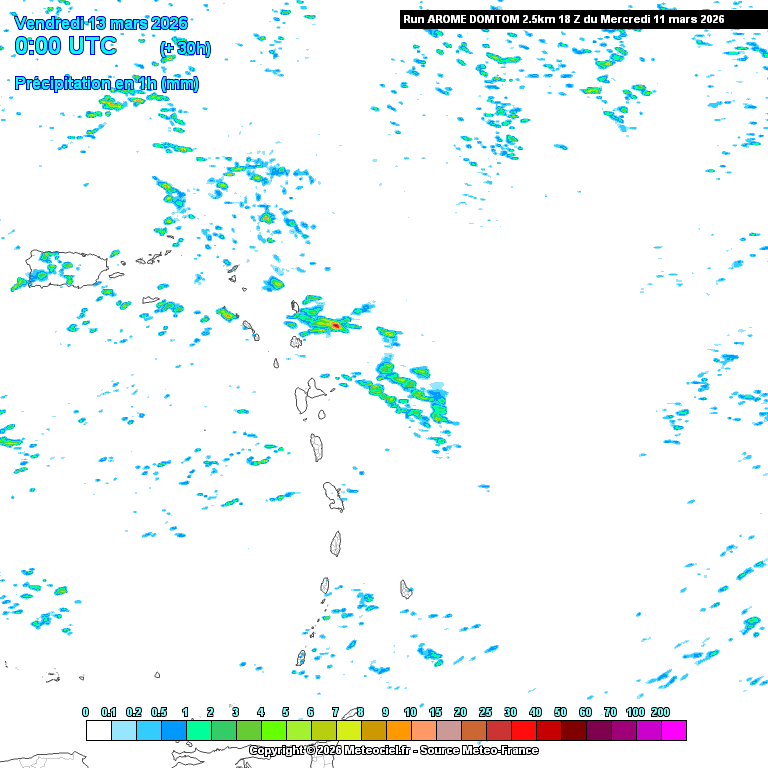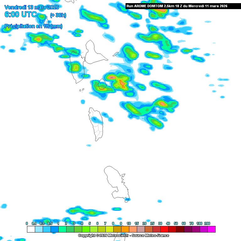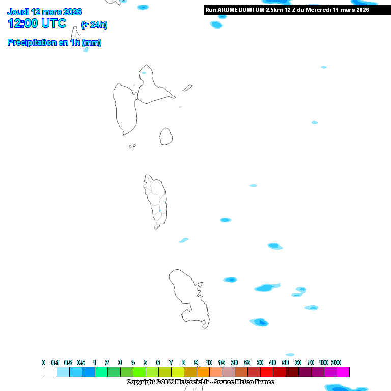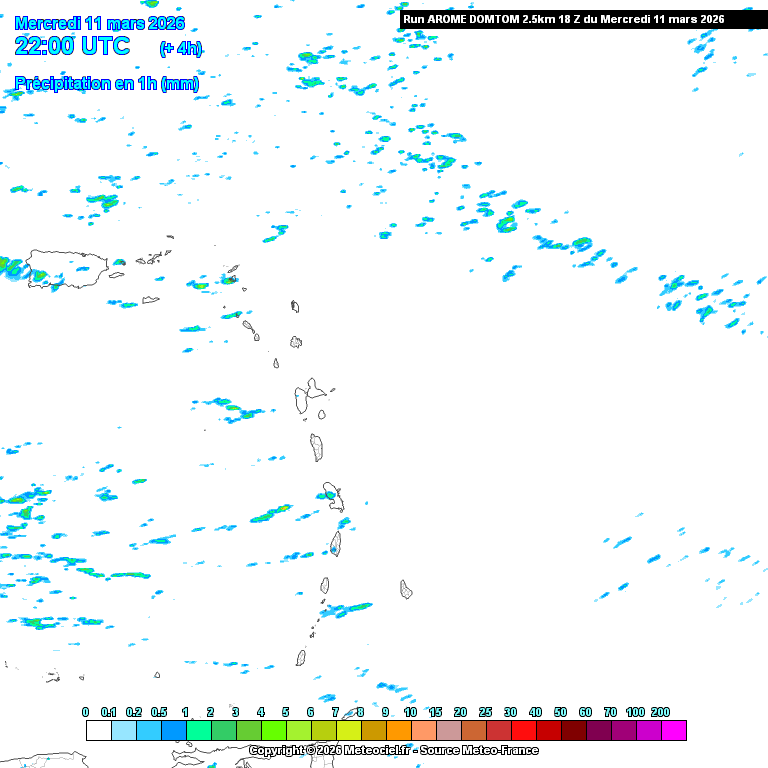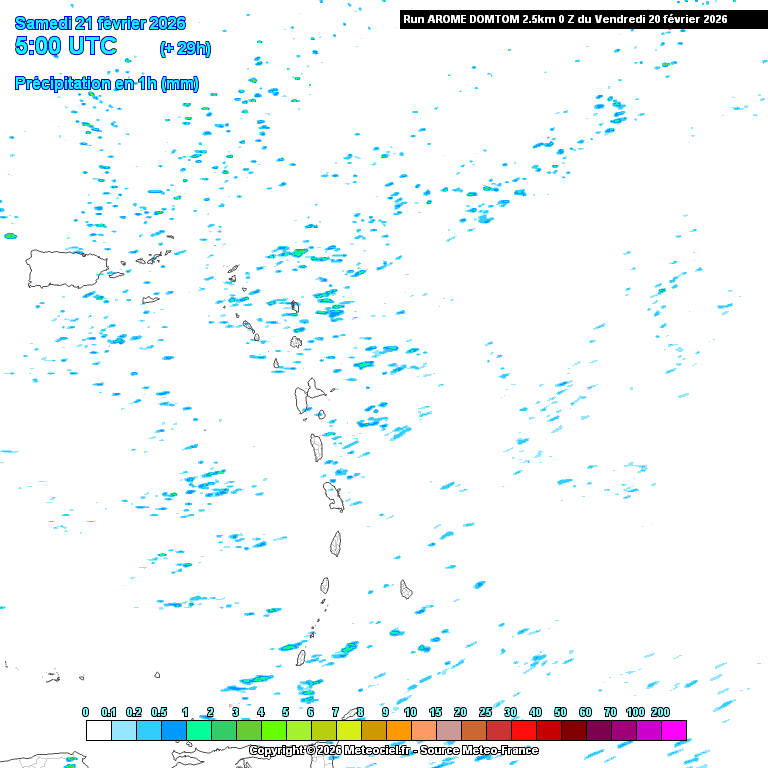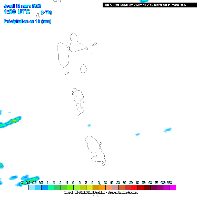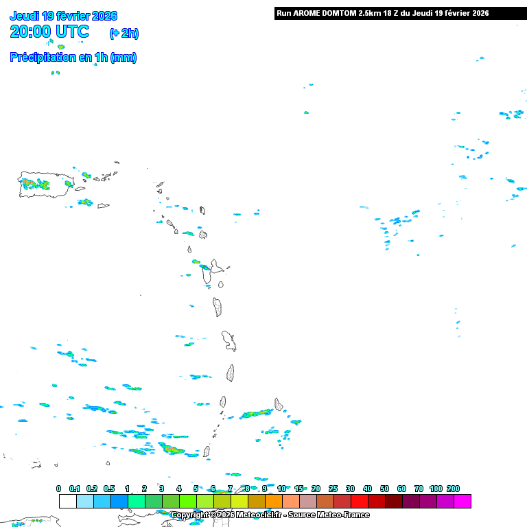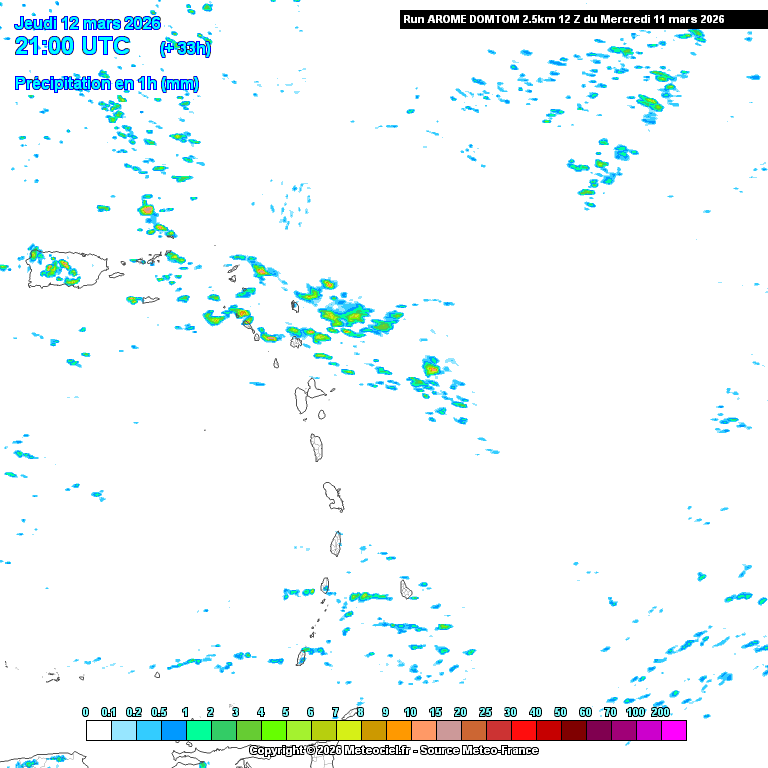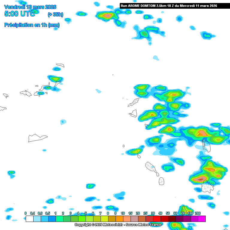 Prévisions du modèle à maille fine AROME pour les Antilles produit par Météo France (Source : Météociel.fr)