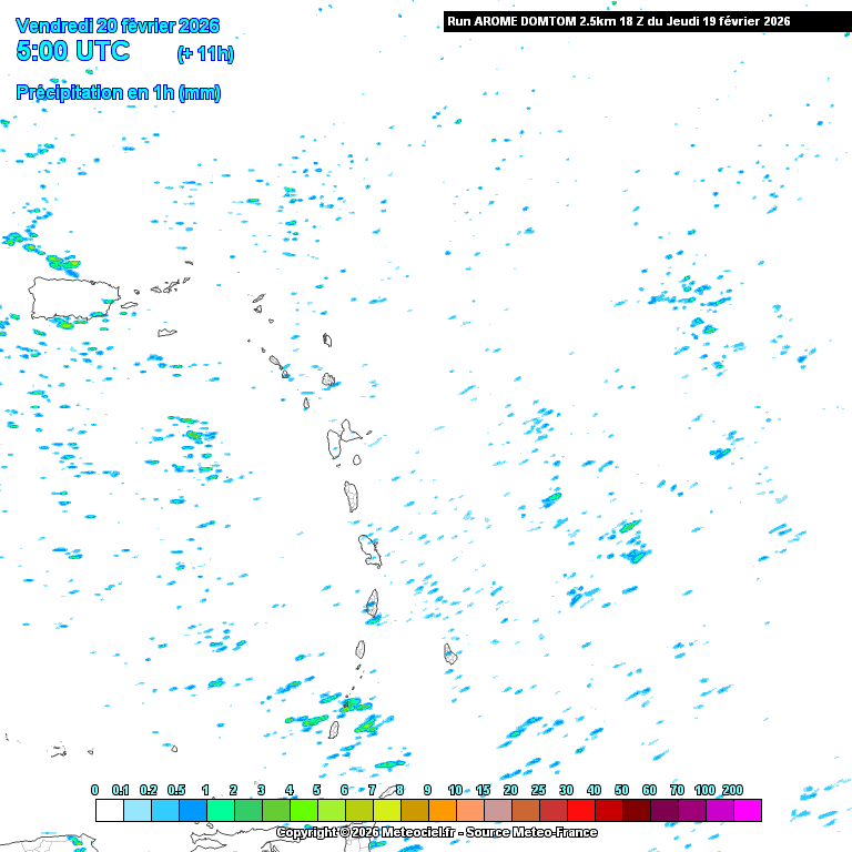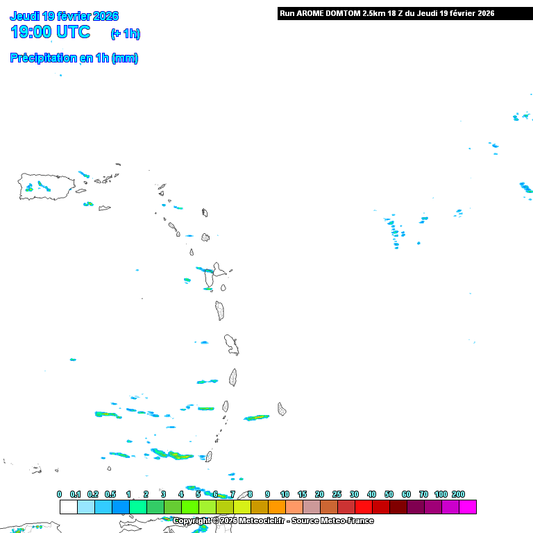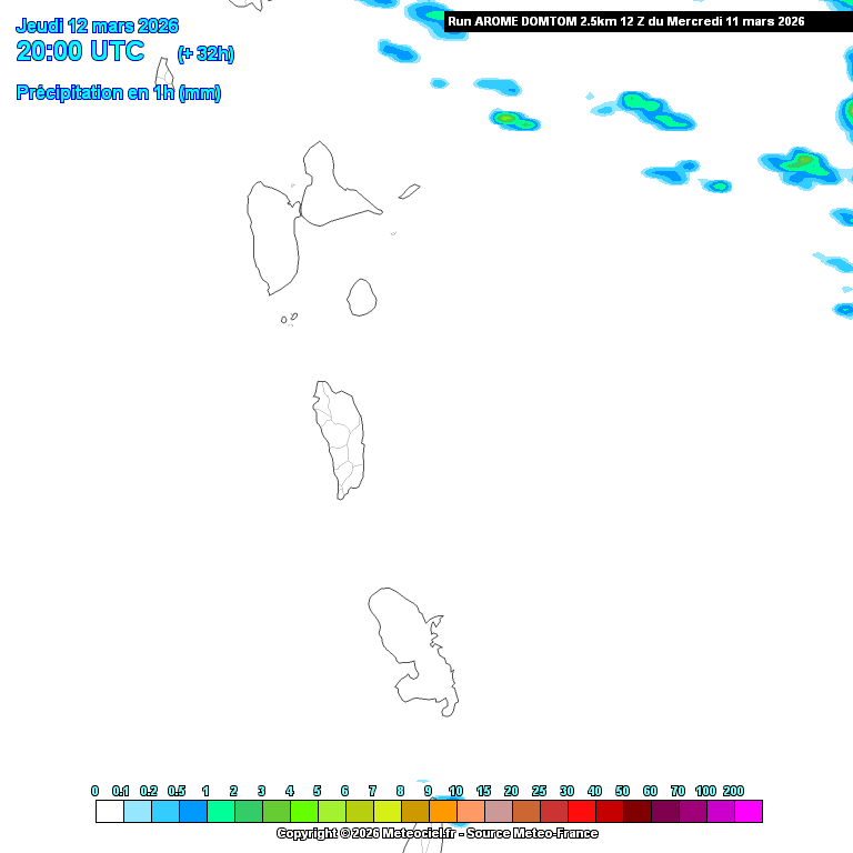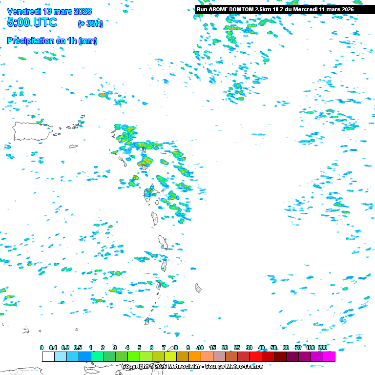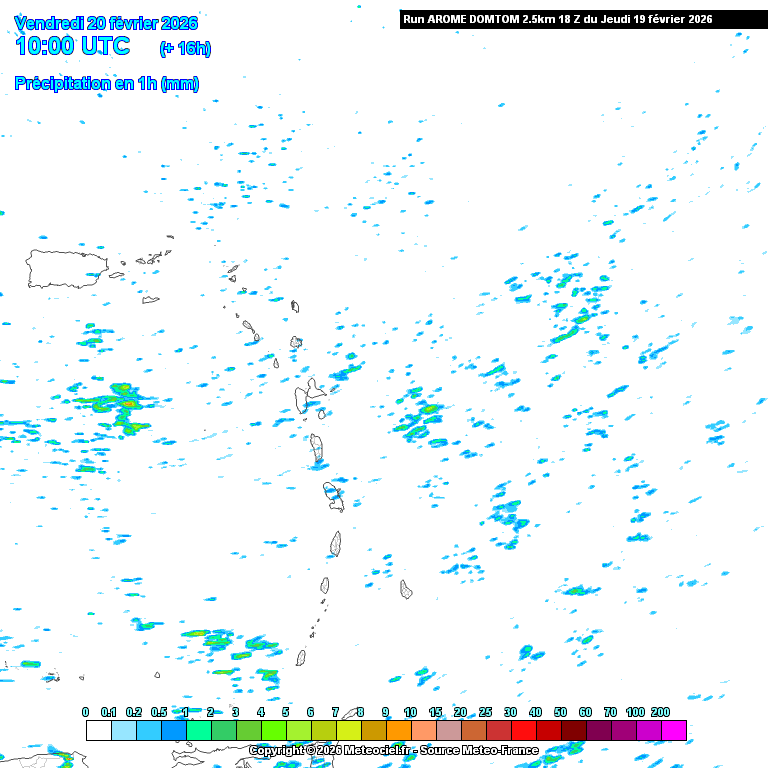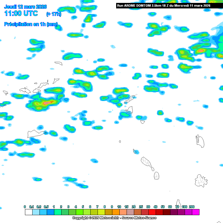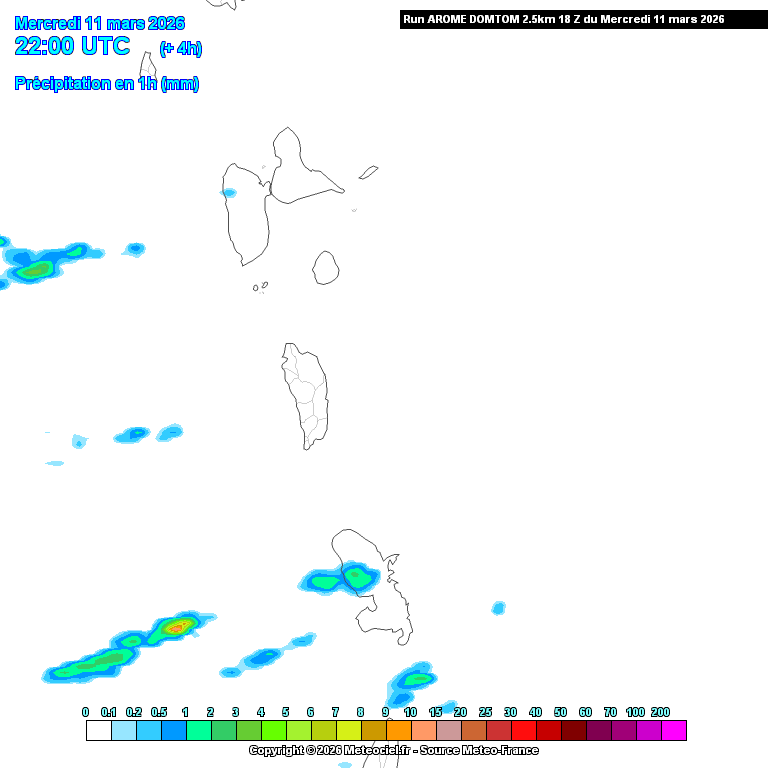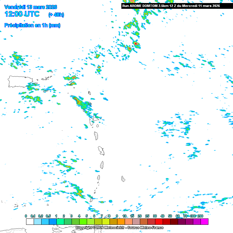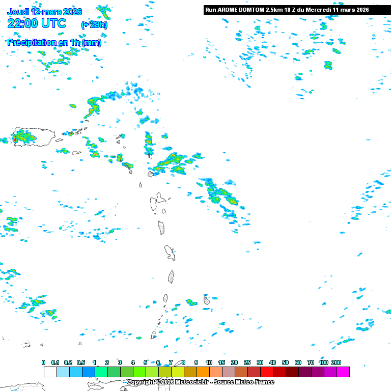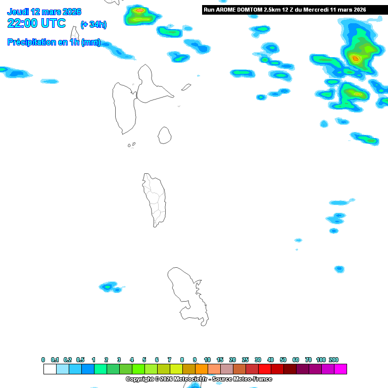 Prévisions du modèle à maille fine AROME pour les Antilles produit par Météo France (Source : Météociel.fr)