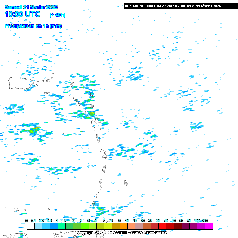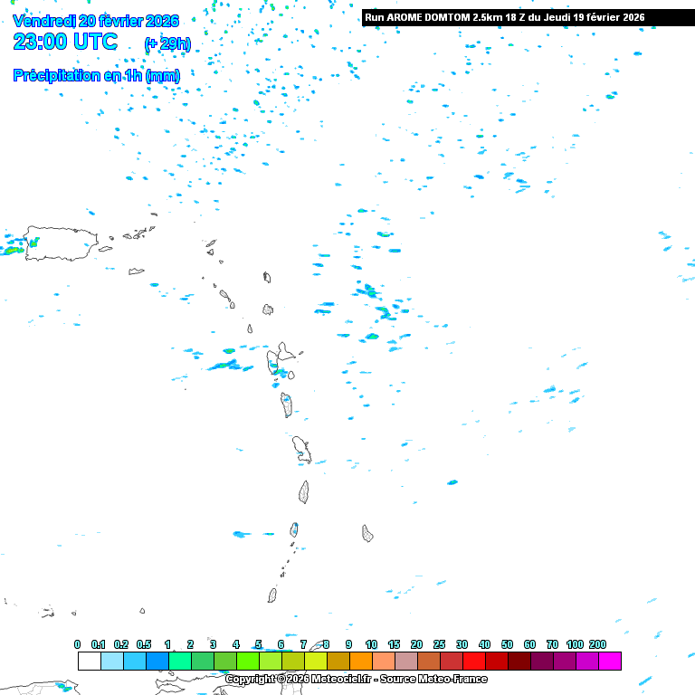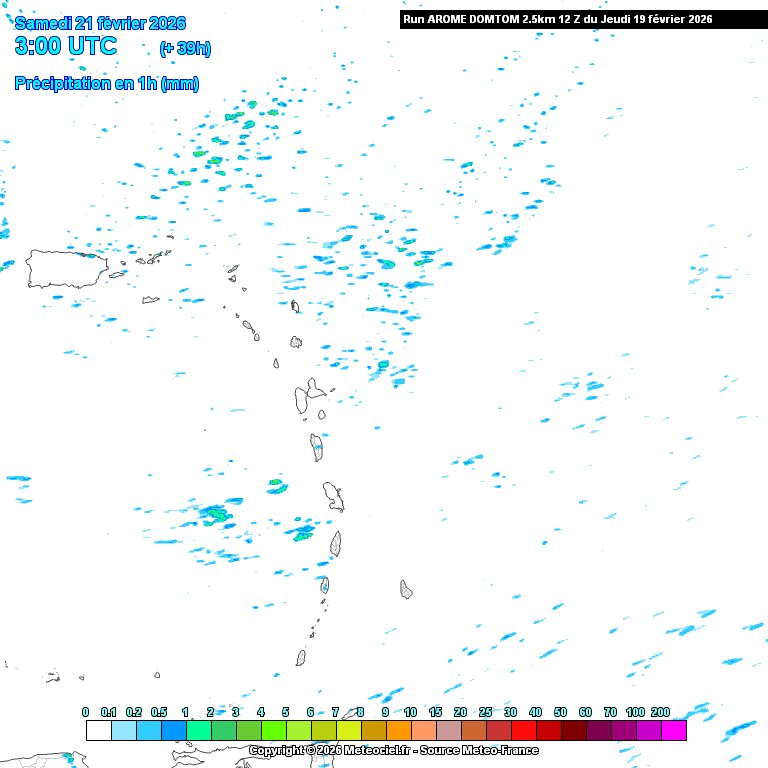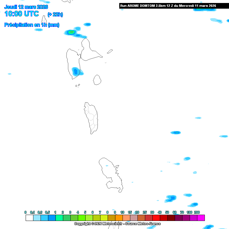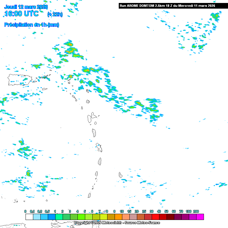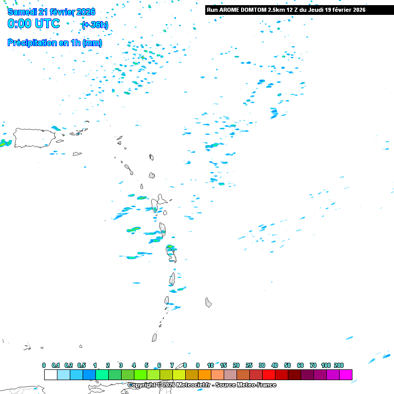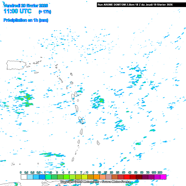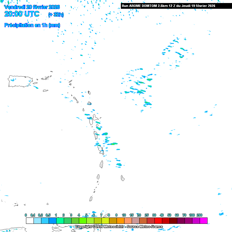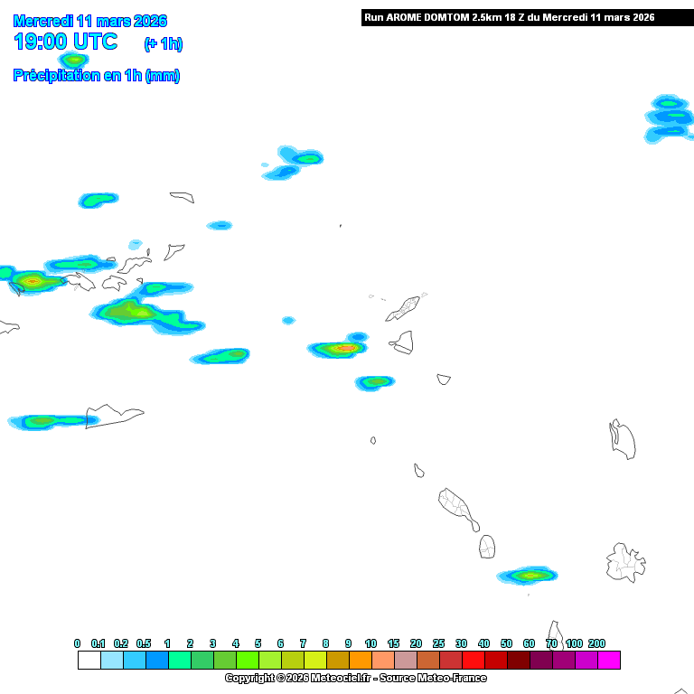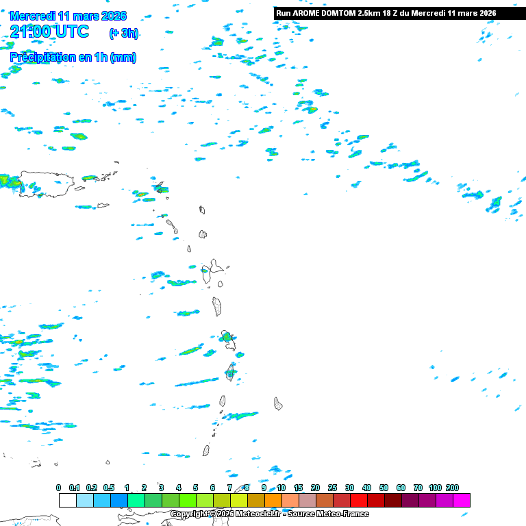 Prévisions du modèle à maille fine AROME pour les Antilles produit par Météo France (Source : Météociel.fr)