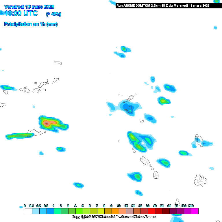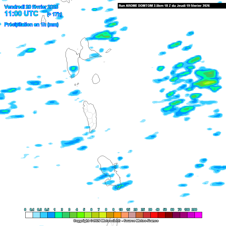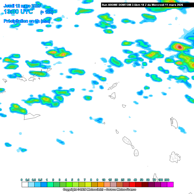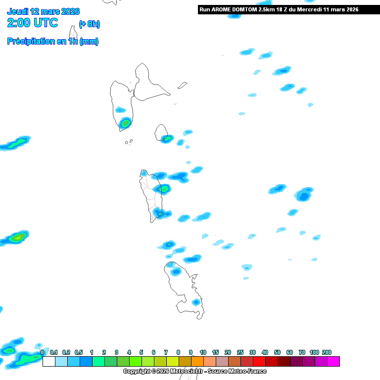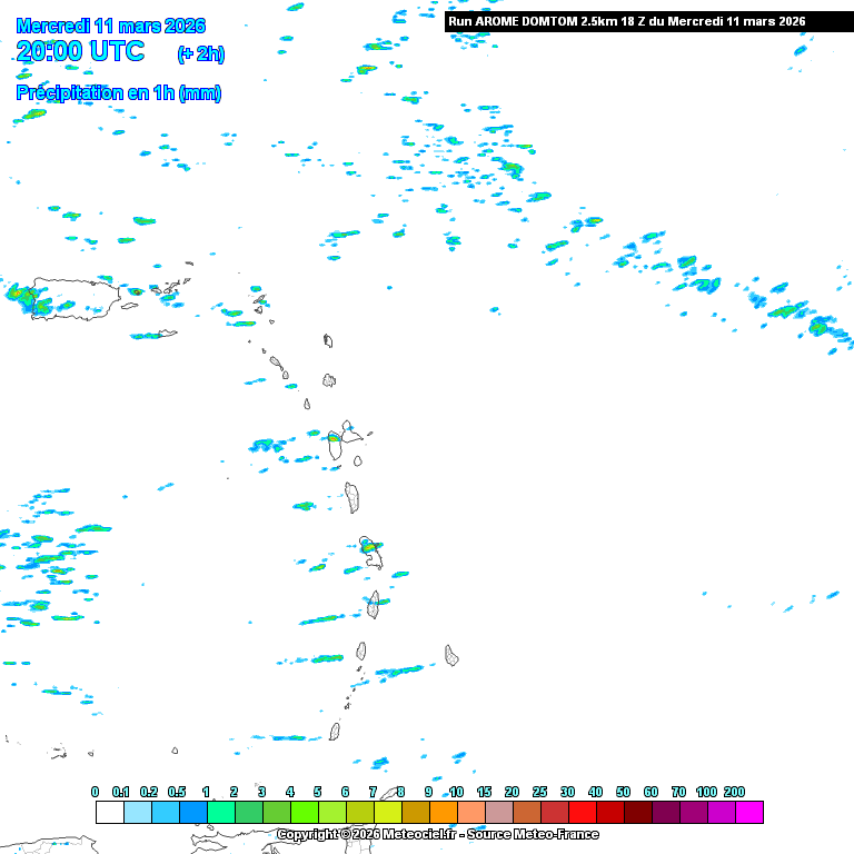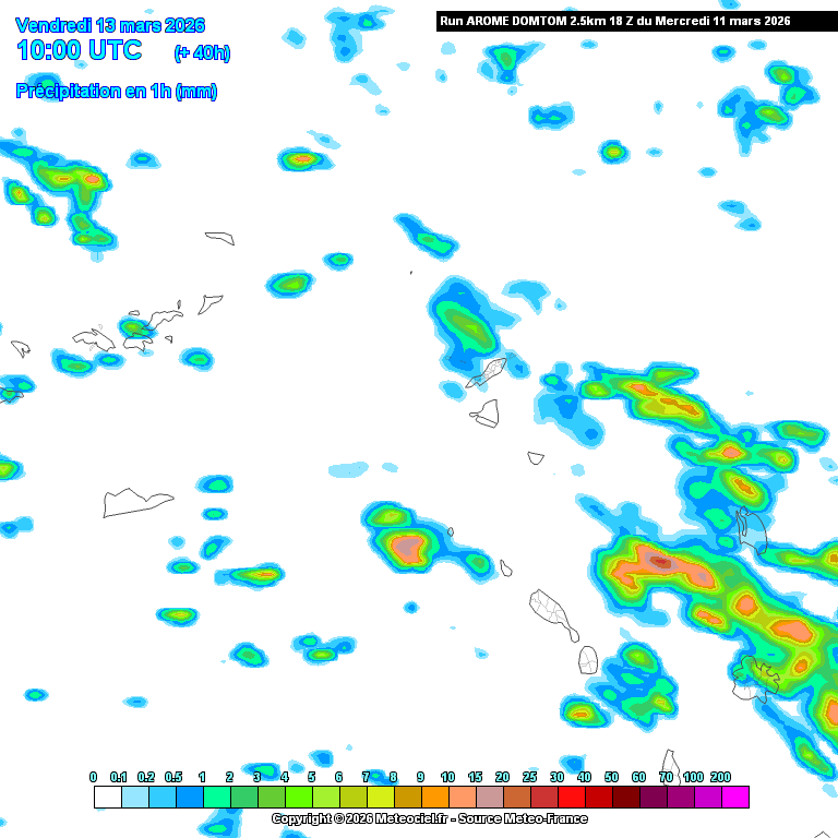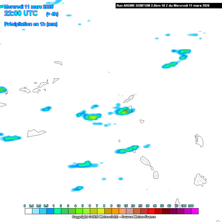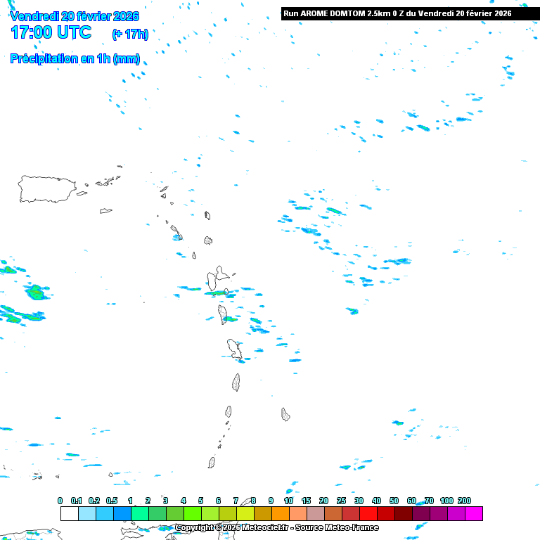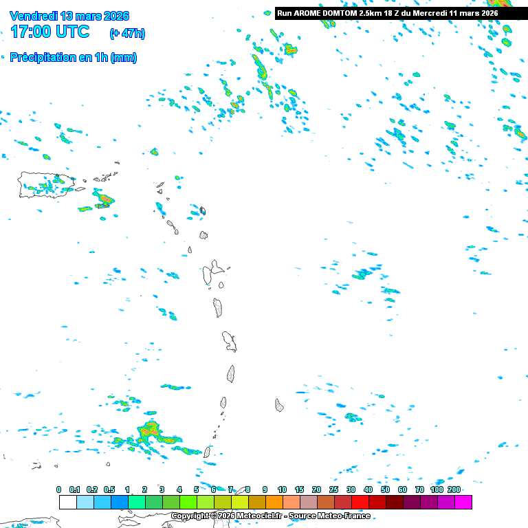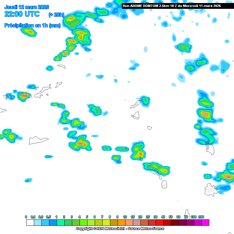 Prévisions du modèle à maille fine AROME pour les Antilles produit par Météo France (Source : Météociel.fr)