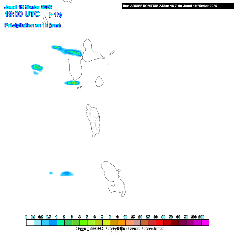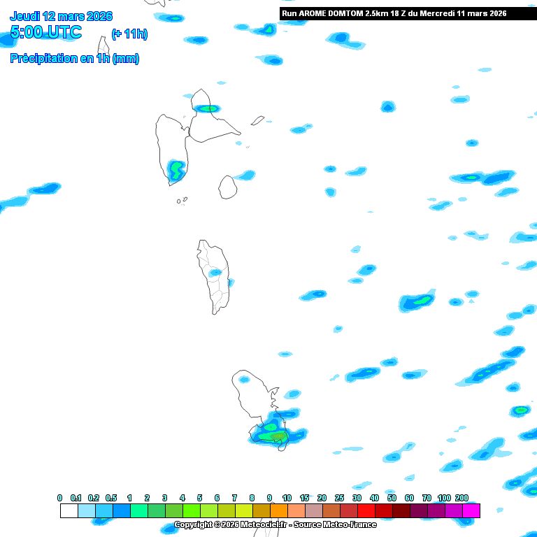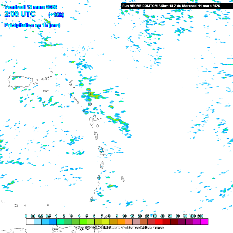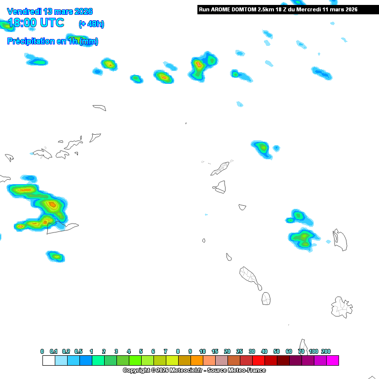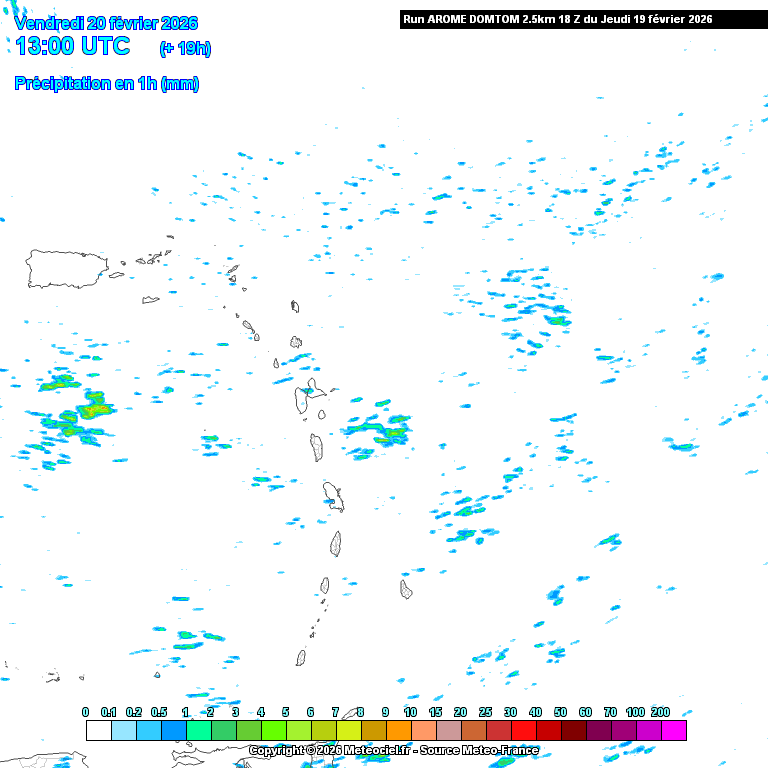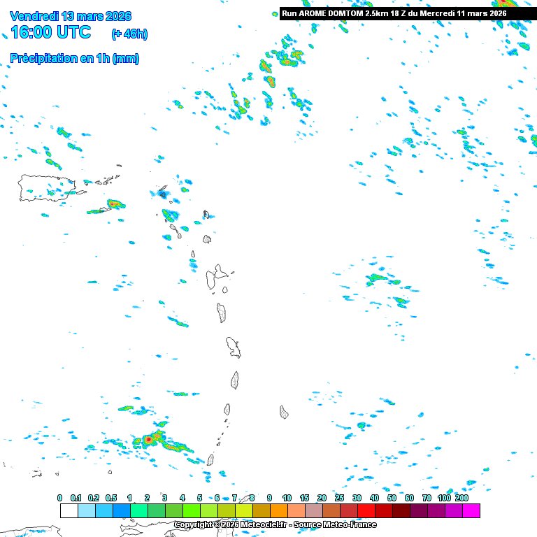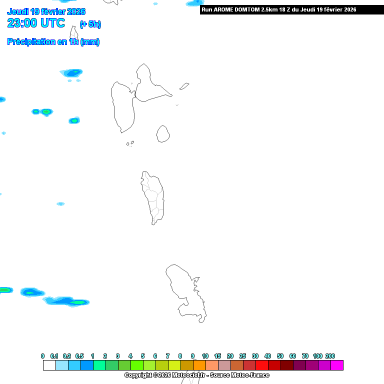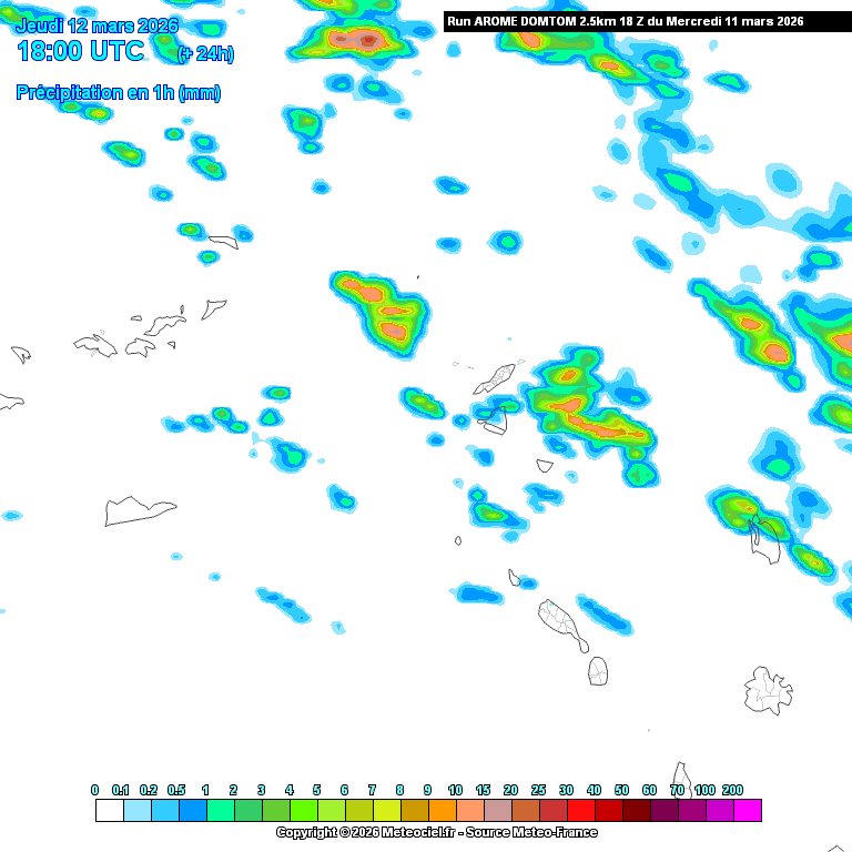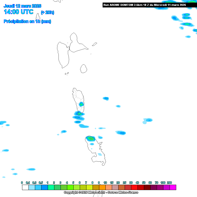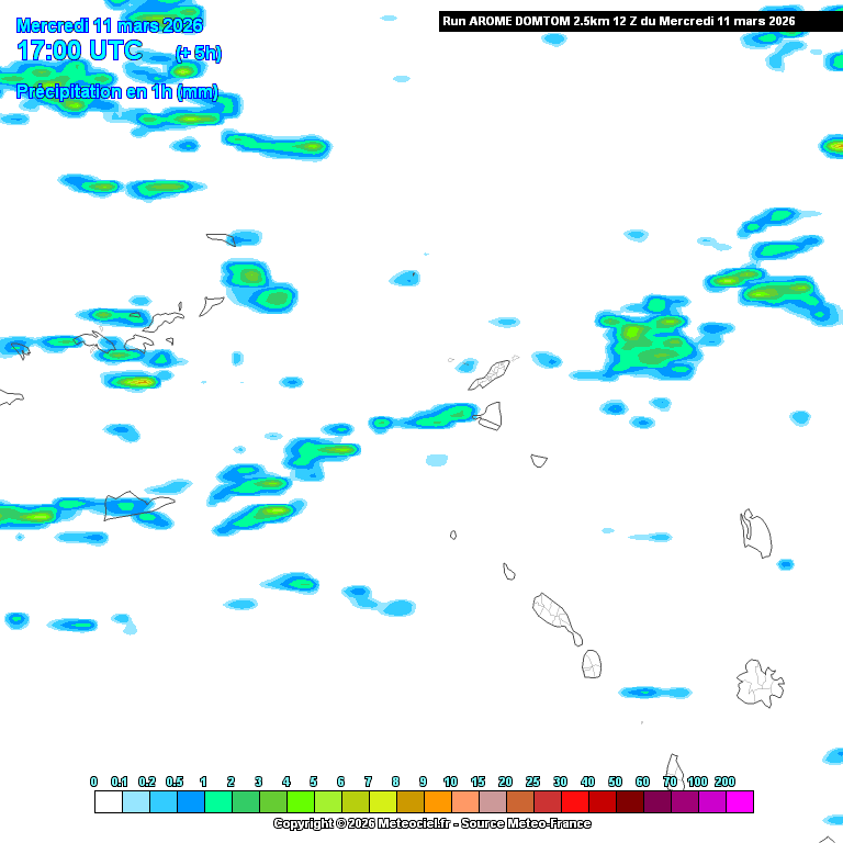 Prévisions du modèle à maille fine AROME pour les Antilles produit par Météo France (Source : Météociel.fr)