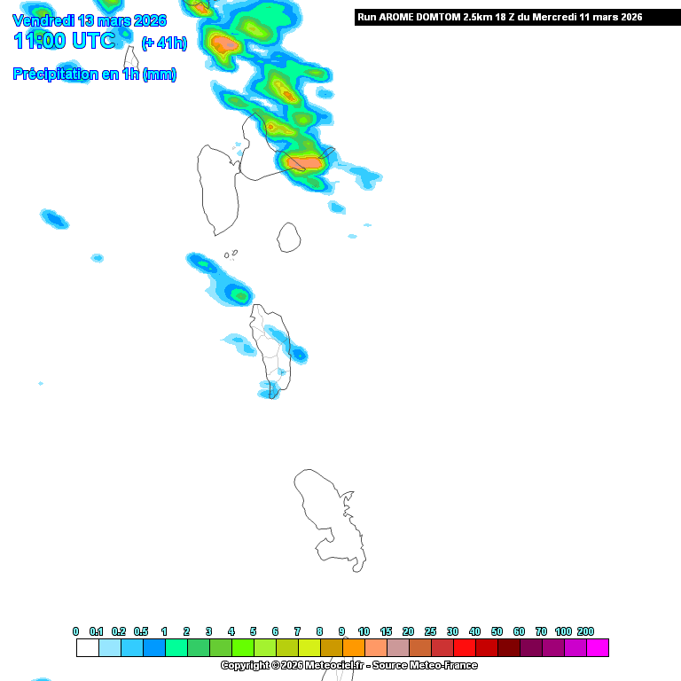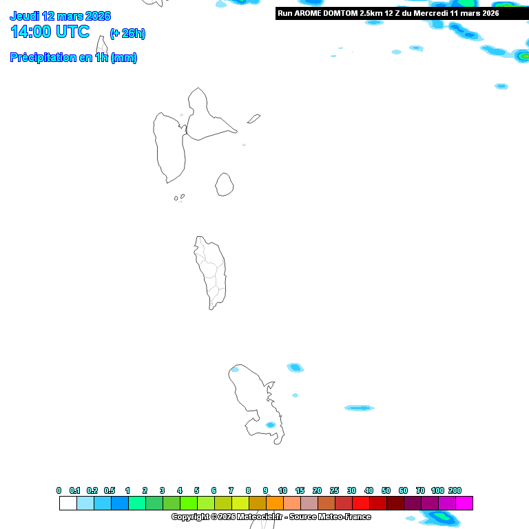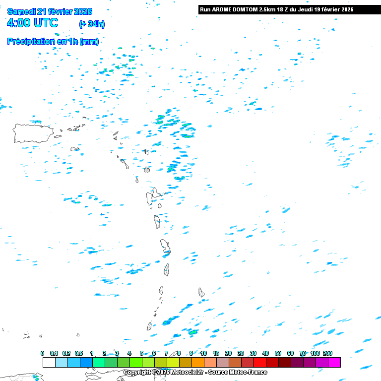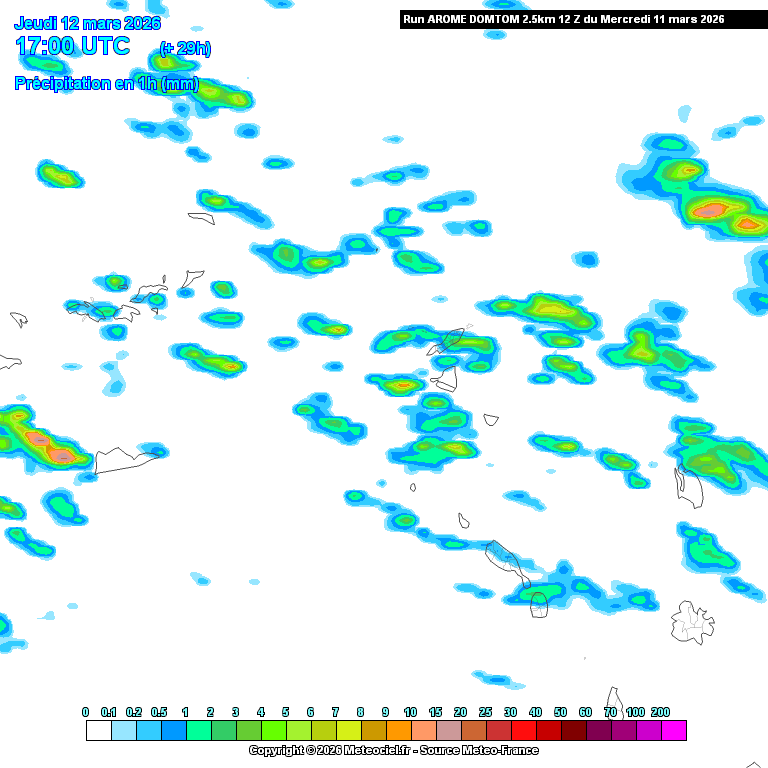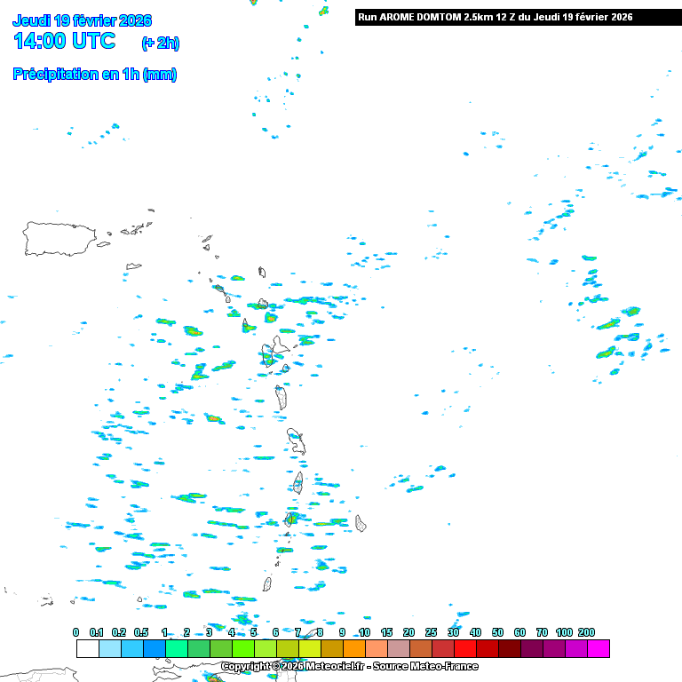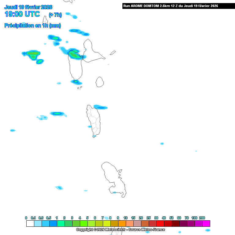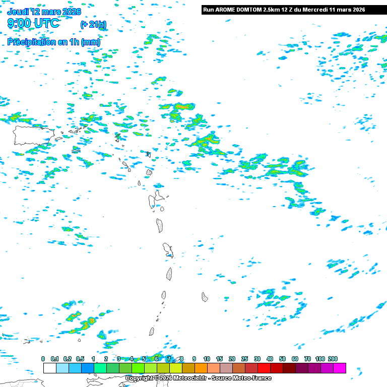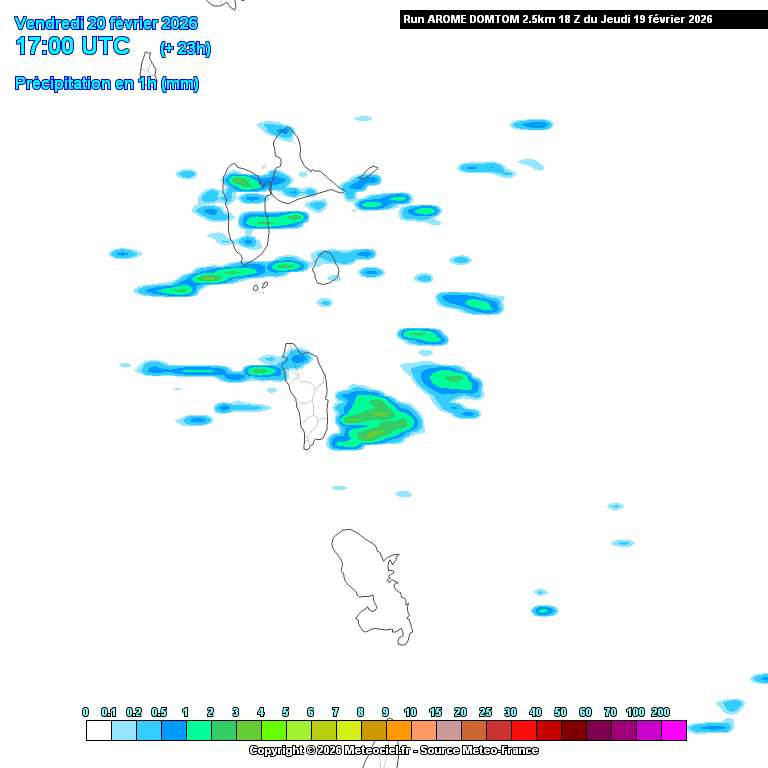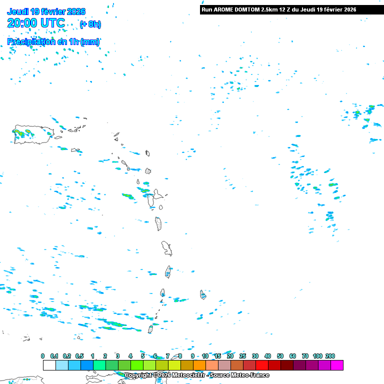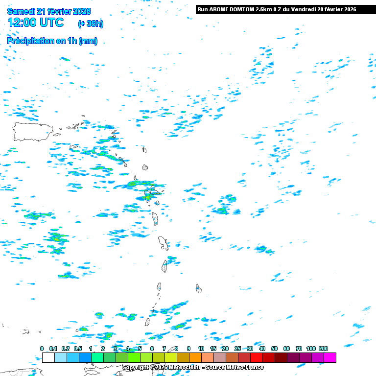 Prévisions du modèle à maille fine AROME pour les Antilles produit par Météo France (Source : Météociel.fr)