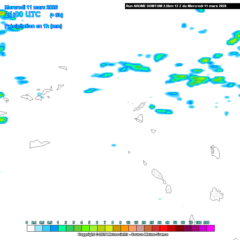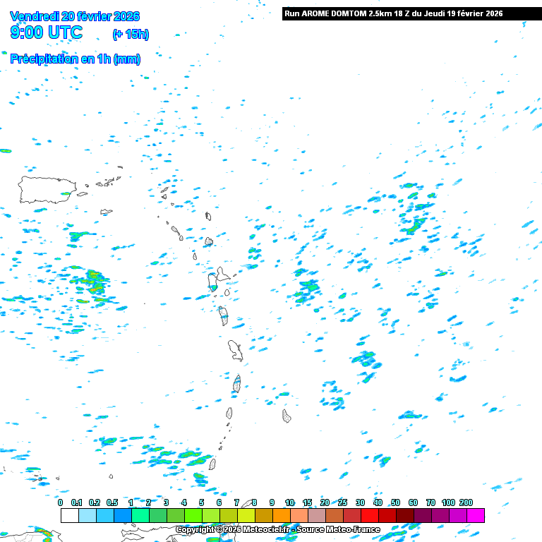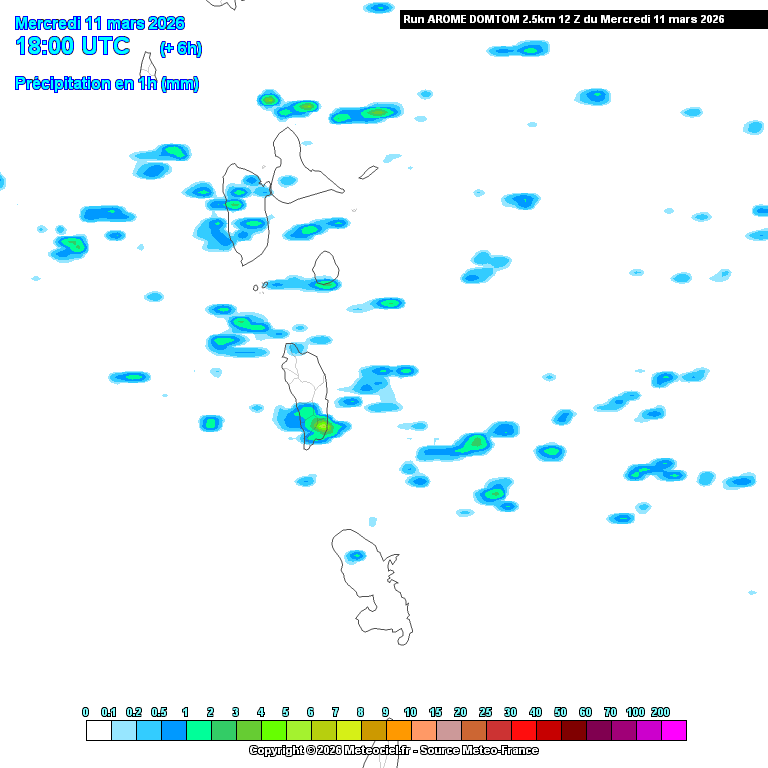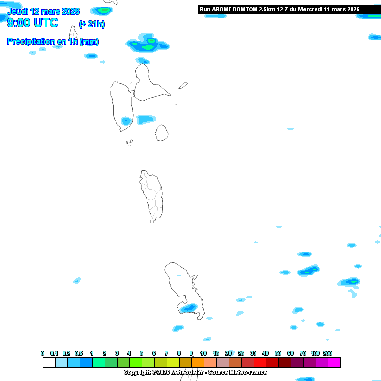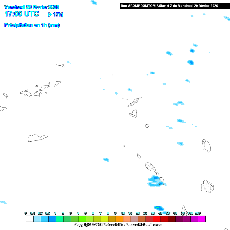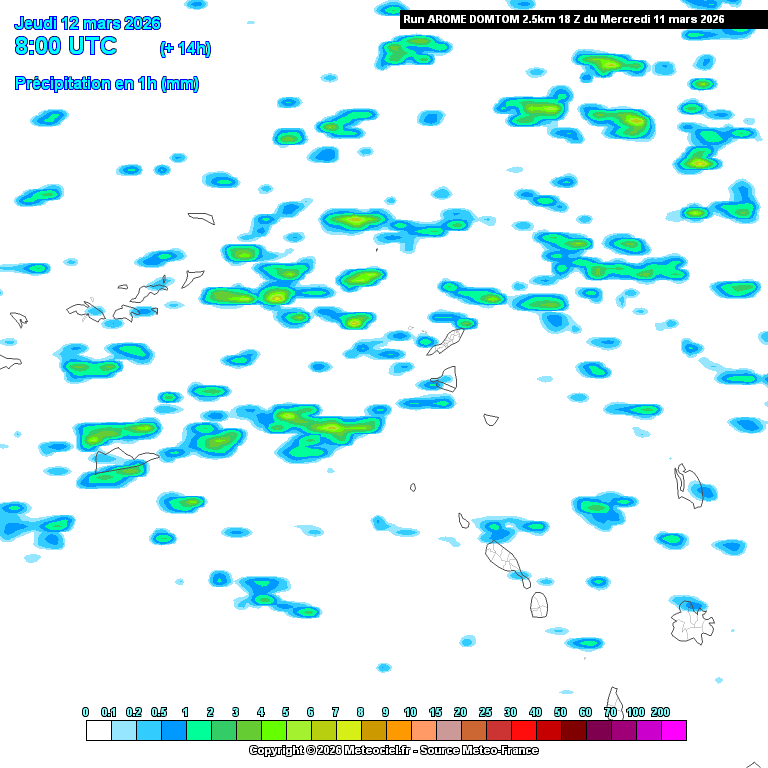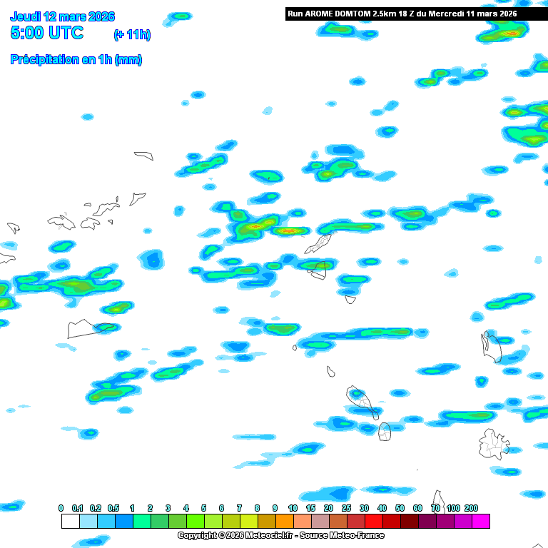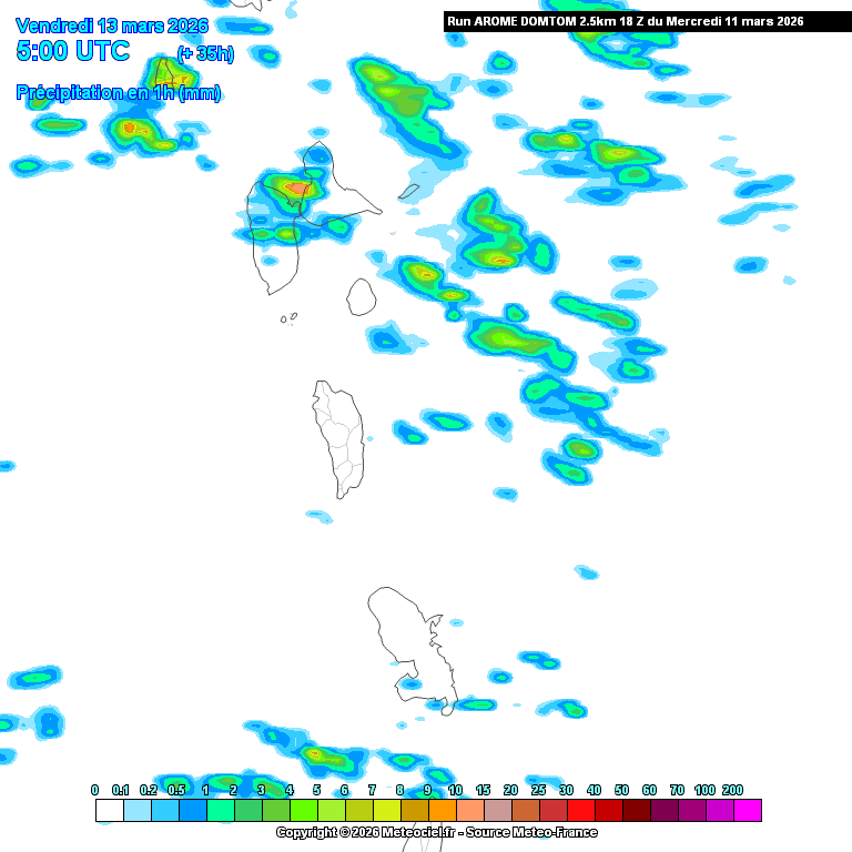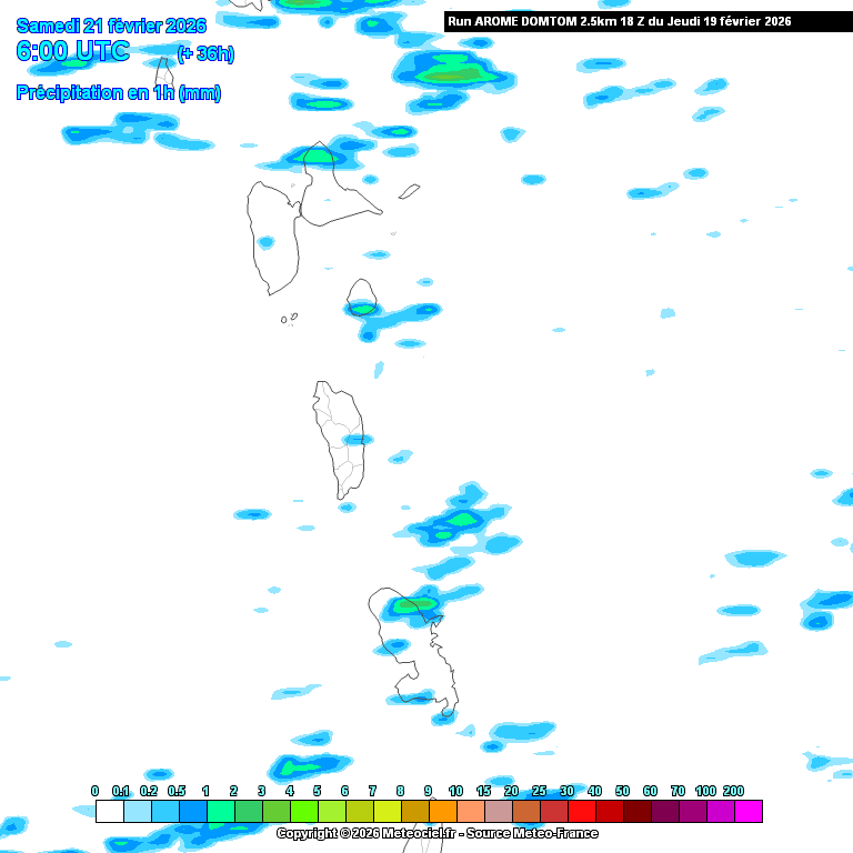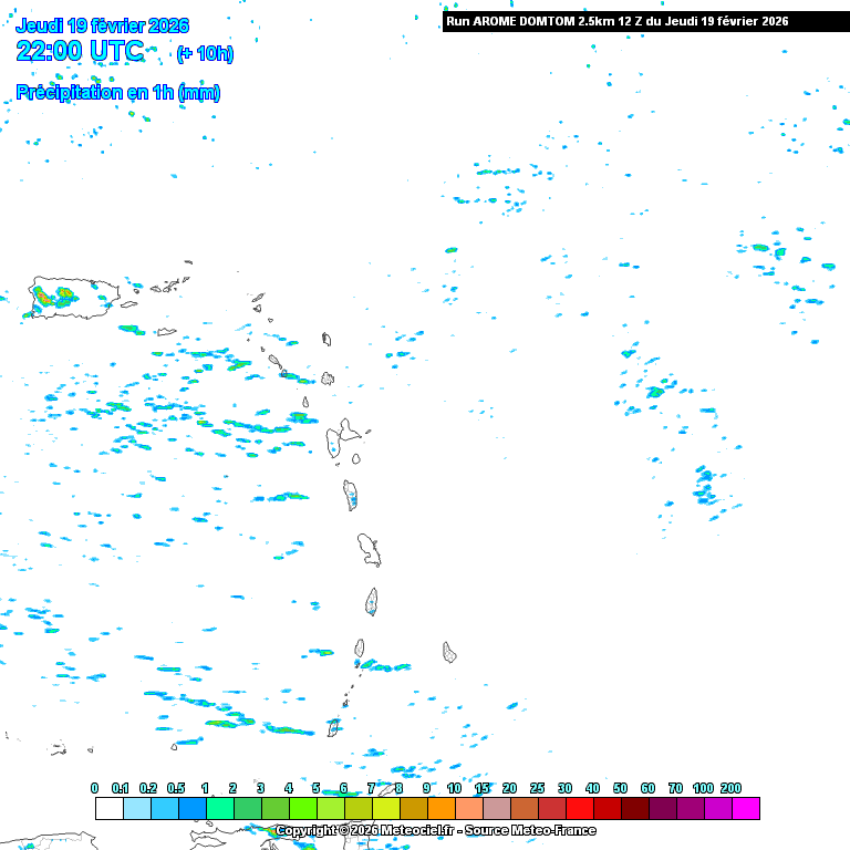 Prévisions du modèle à maille fine AROME pour les Antilles produit par Météo France (Source : Météociel.fr)