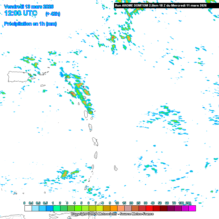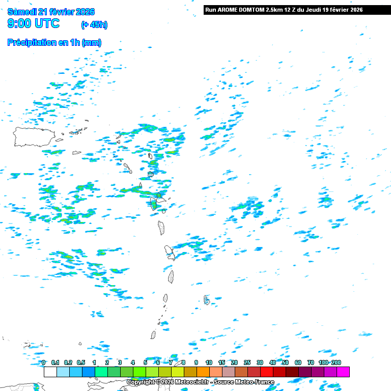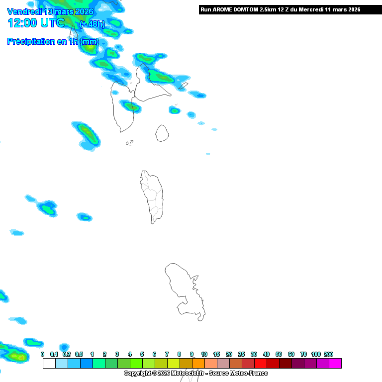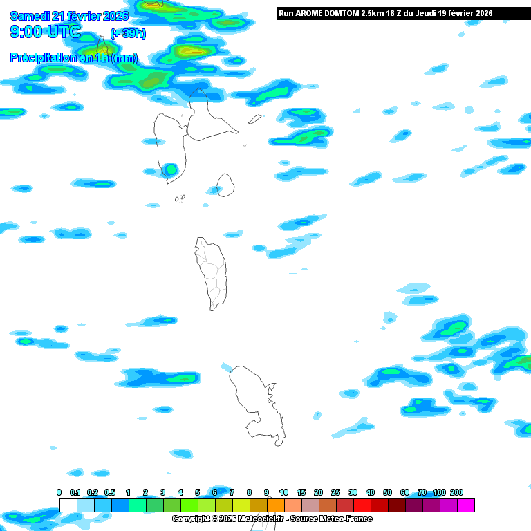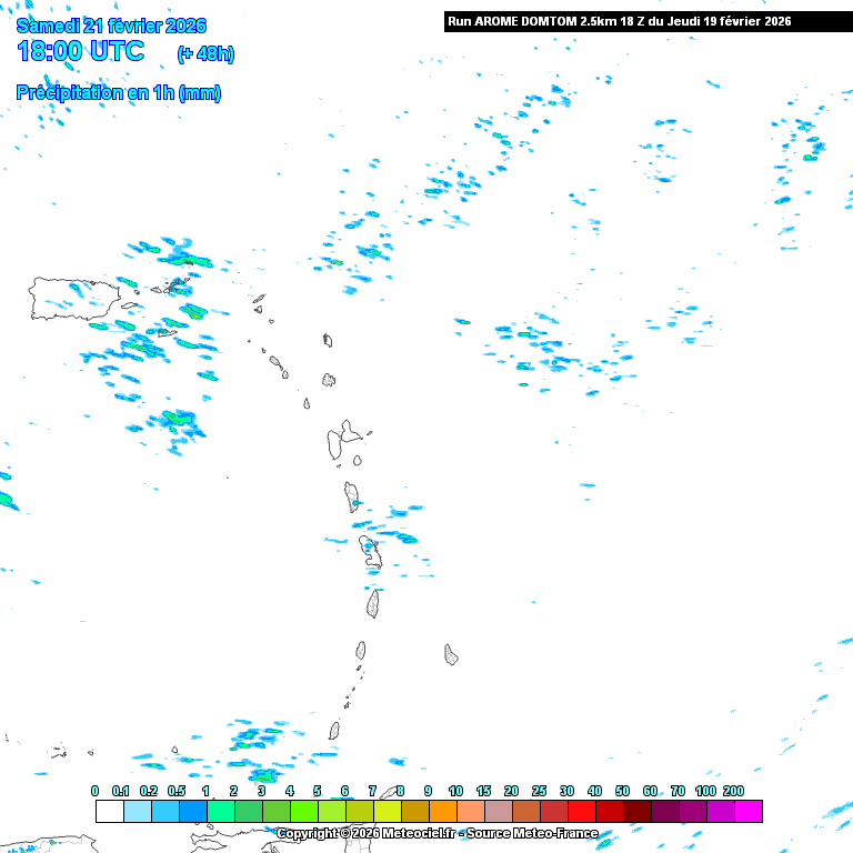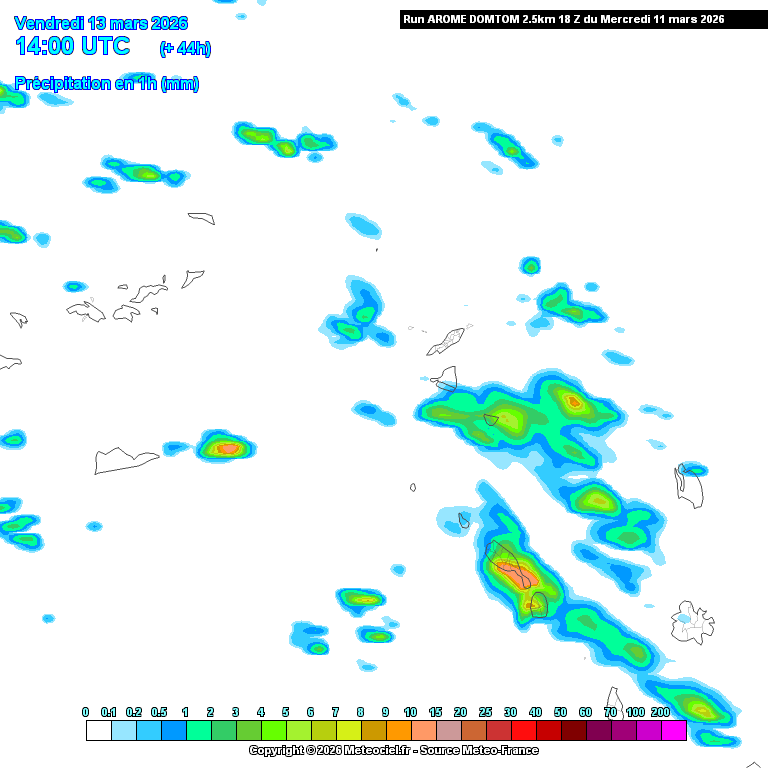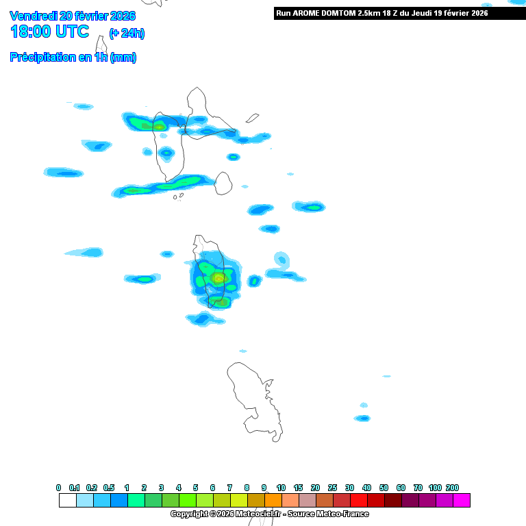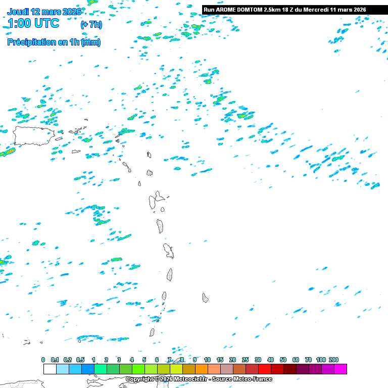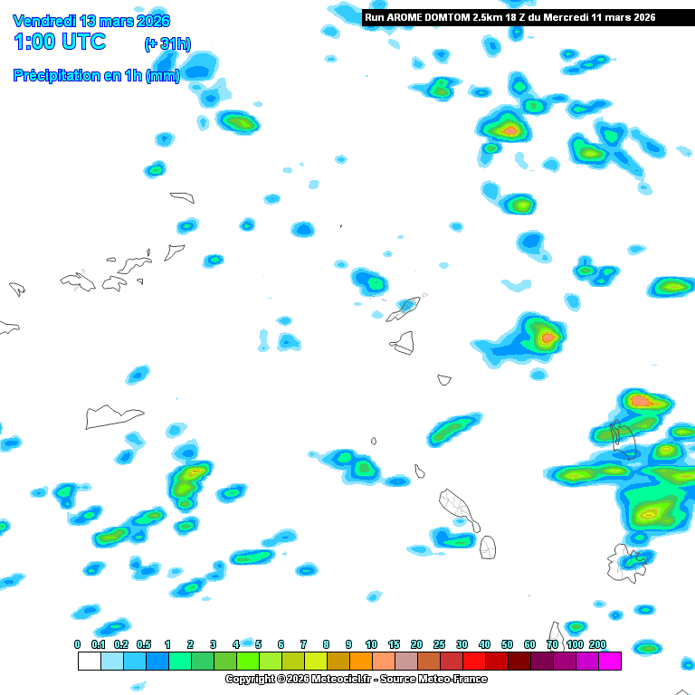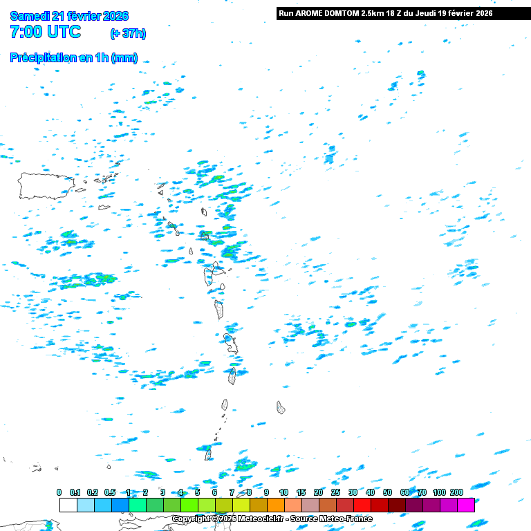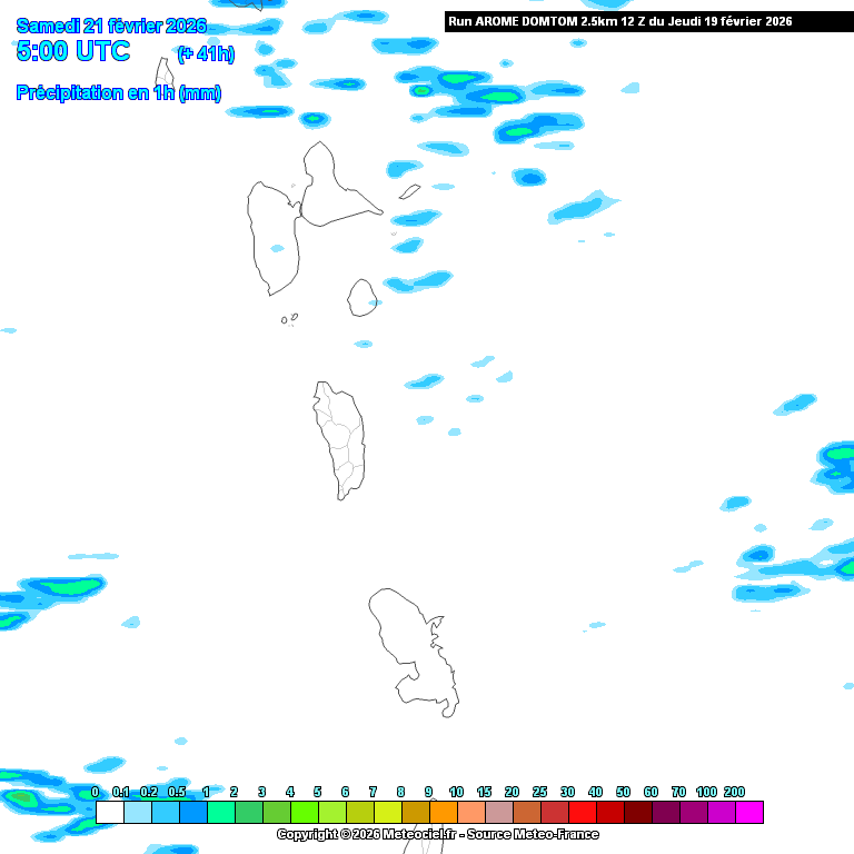 Prévisions du modèle à maille fine AROME pour les Antilles produit par Météo France (Source : Météociel.fr)