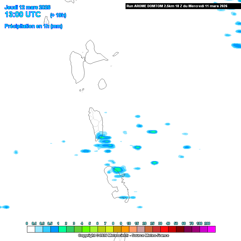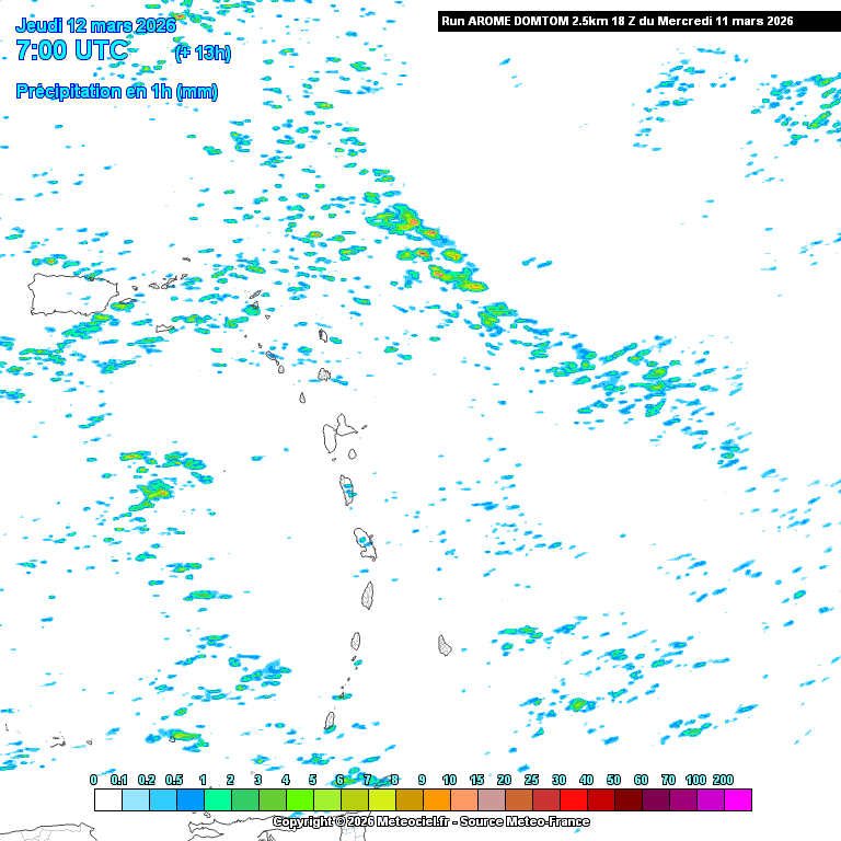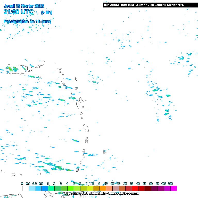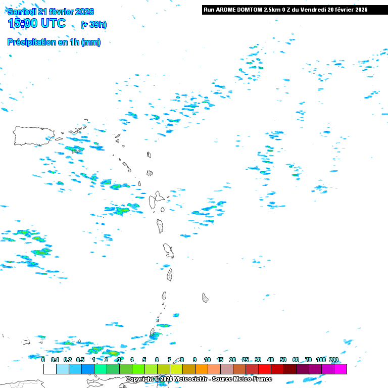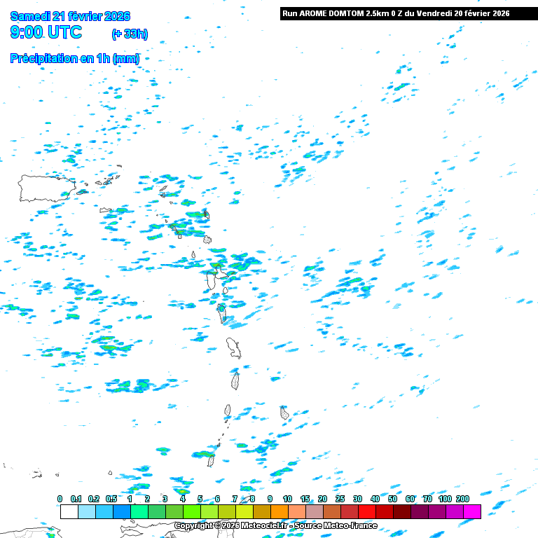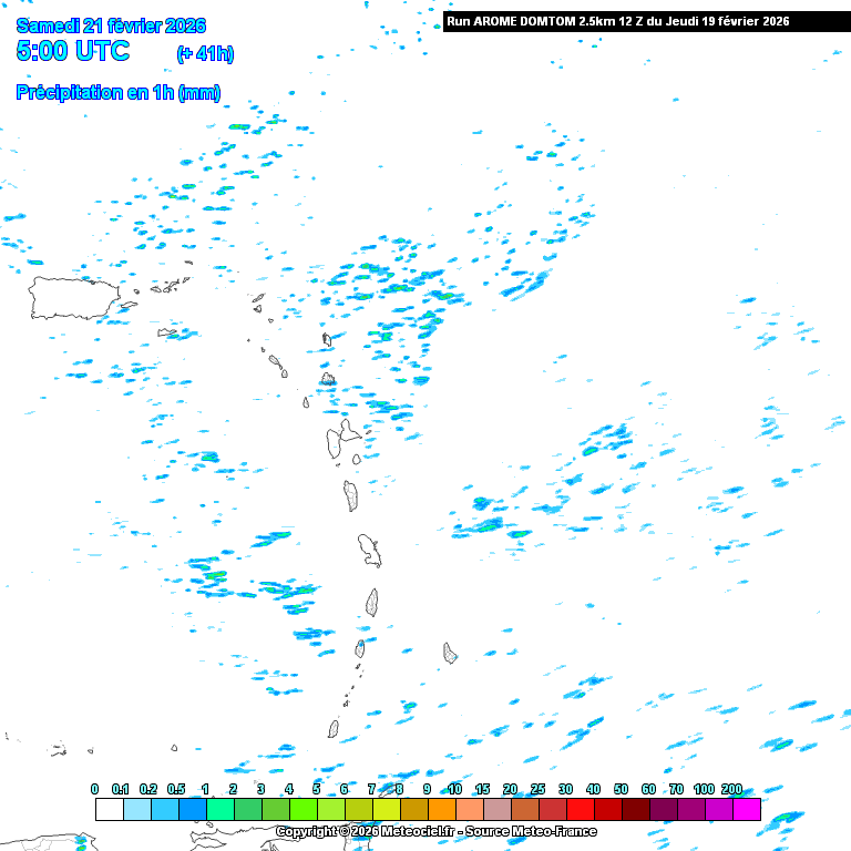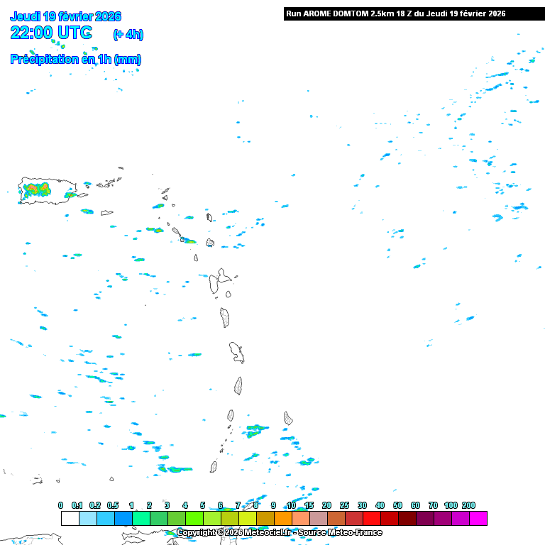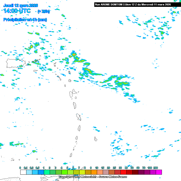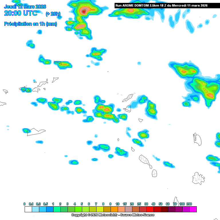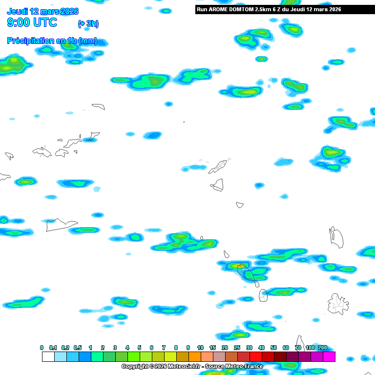 Prévisions du modèle à maille fine AROME pour les Antilles produit par Météo France (Source : Météociel.fr)