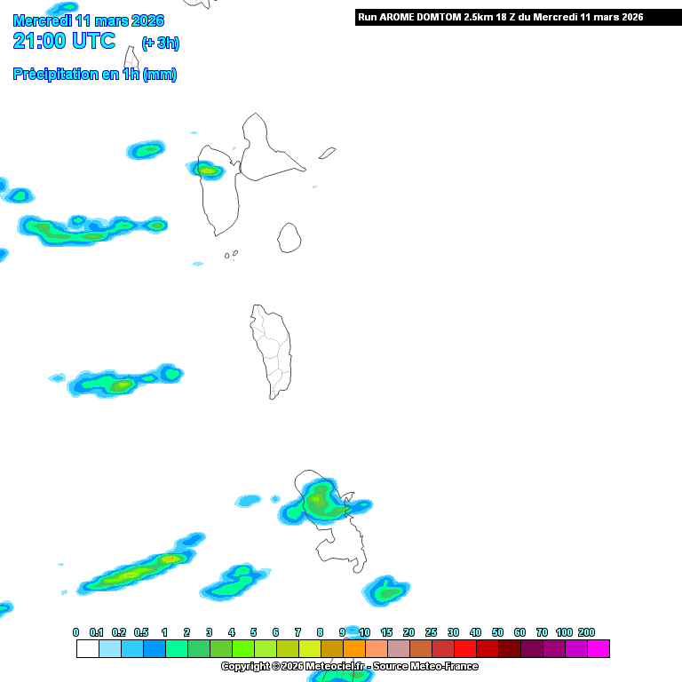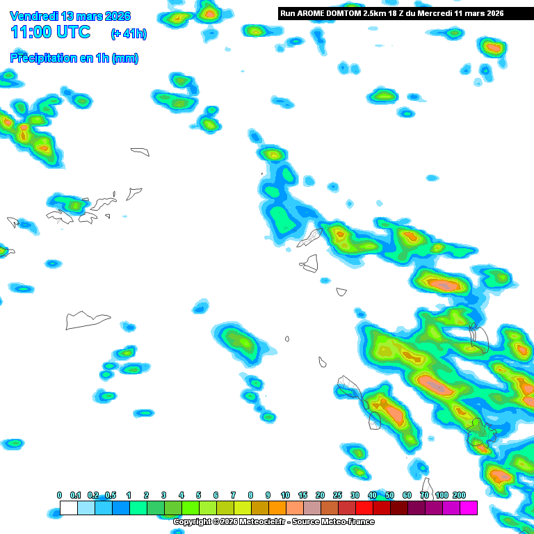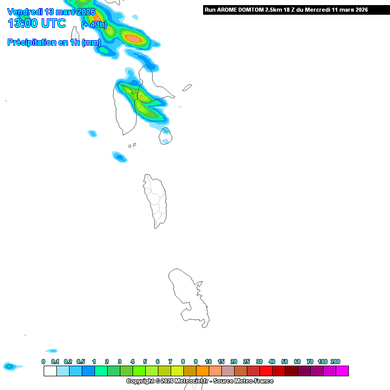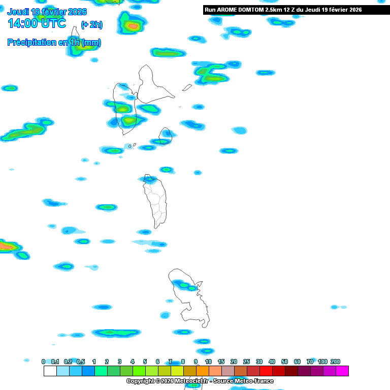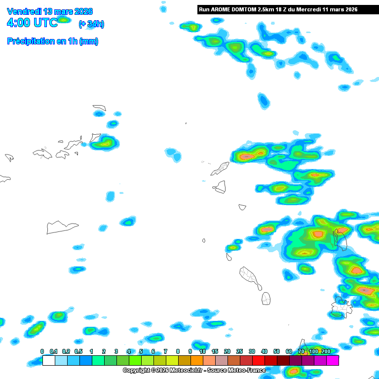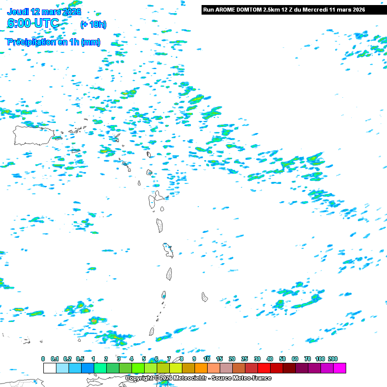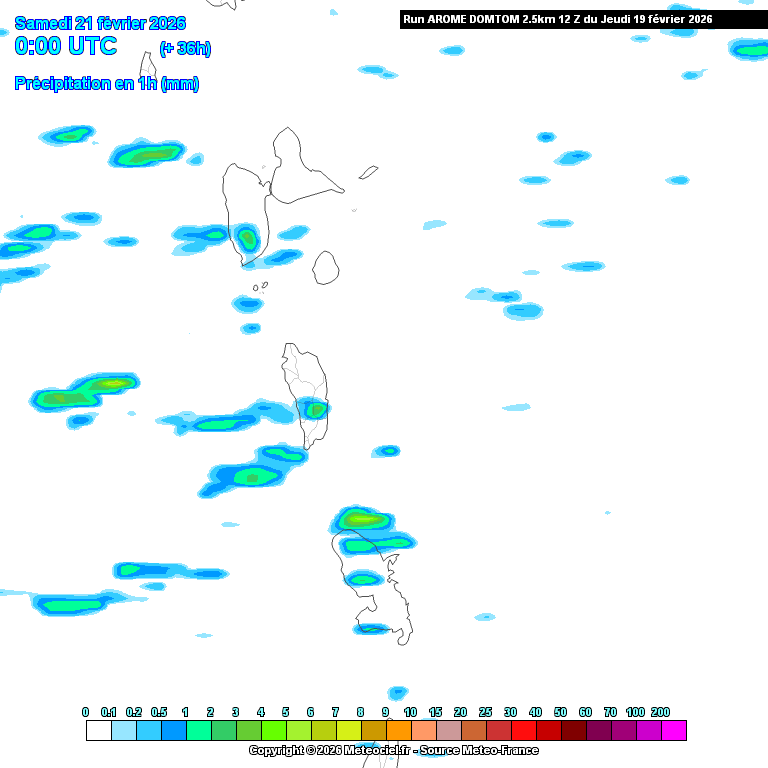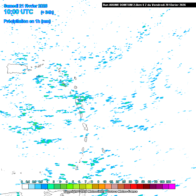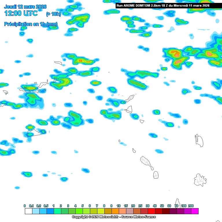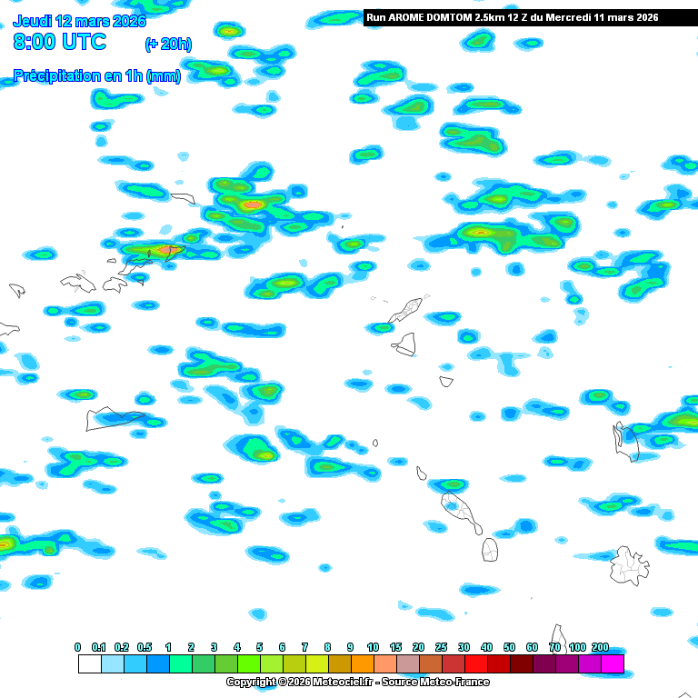 Prévisions du modèle à maille fine AROME pour les Antilles produit par Météo France (Source : Météociel.fr)