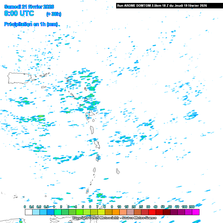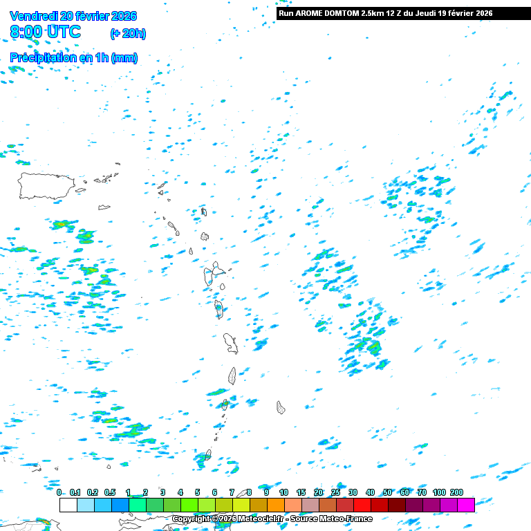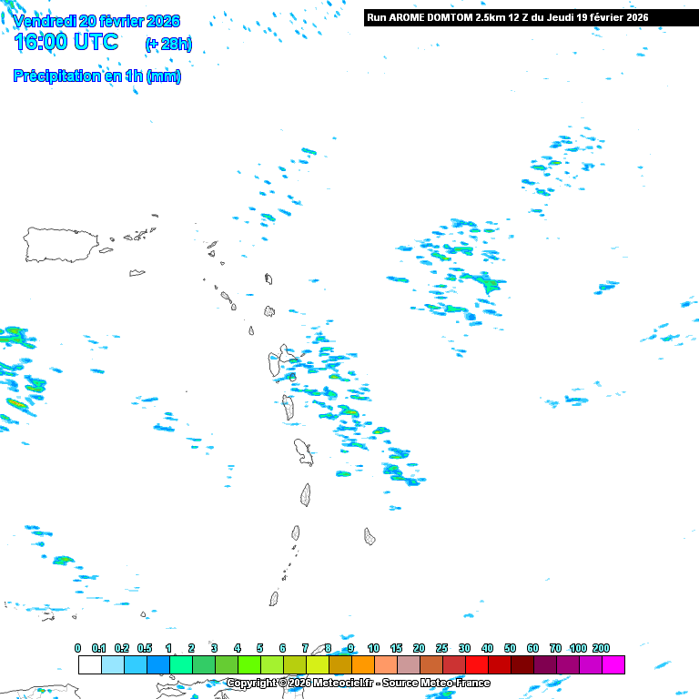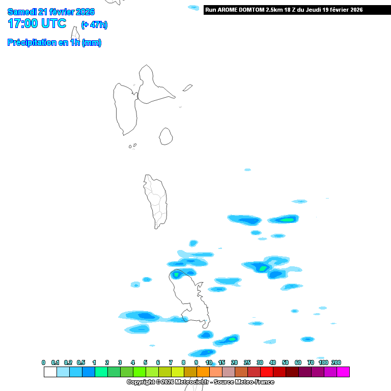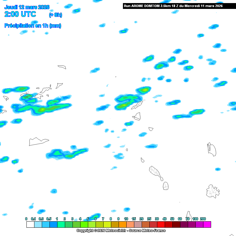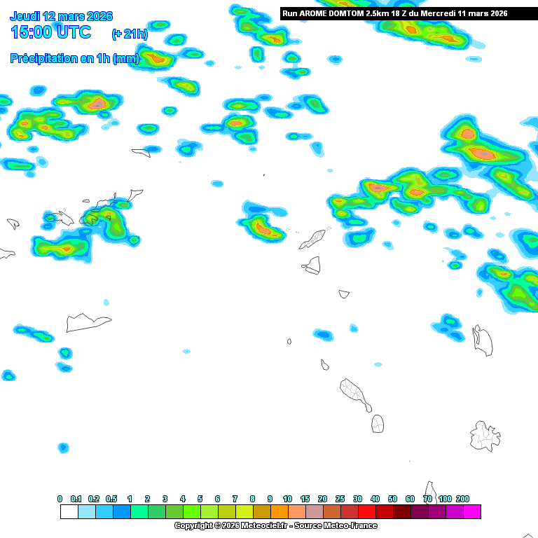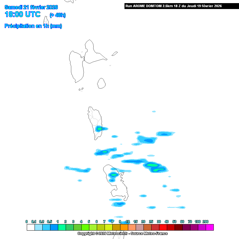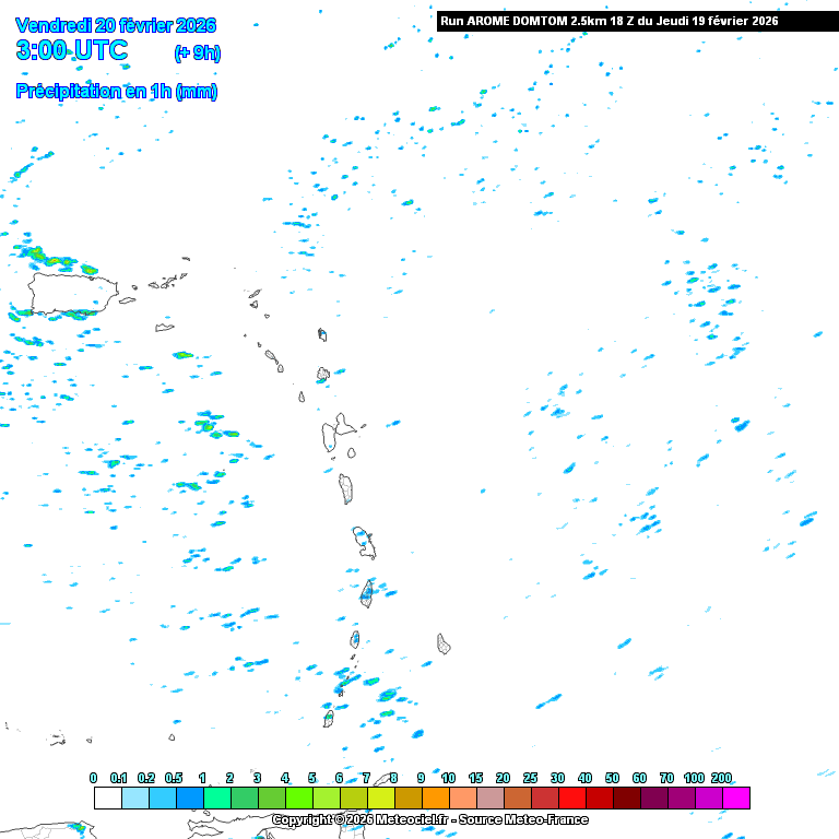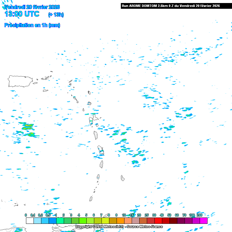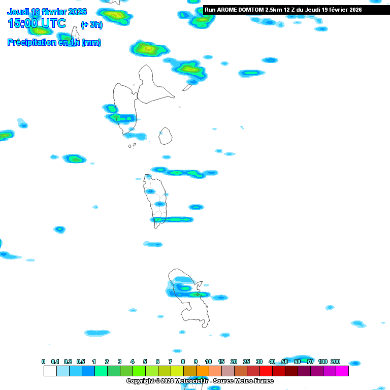 Prévisions du modèle à maille fine AROME pour les Antilles produit par Météo France (Source : Météociel.fr)