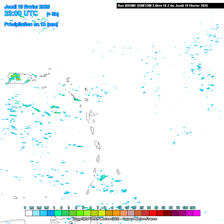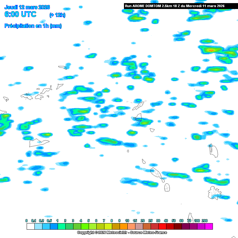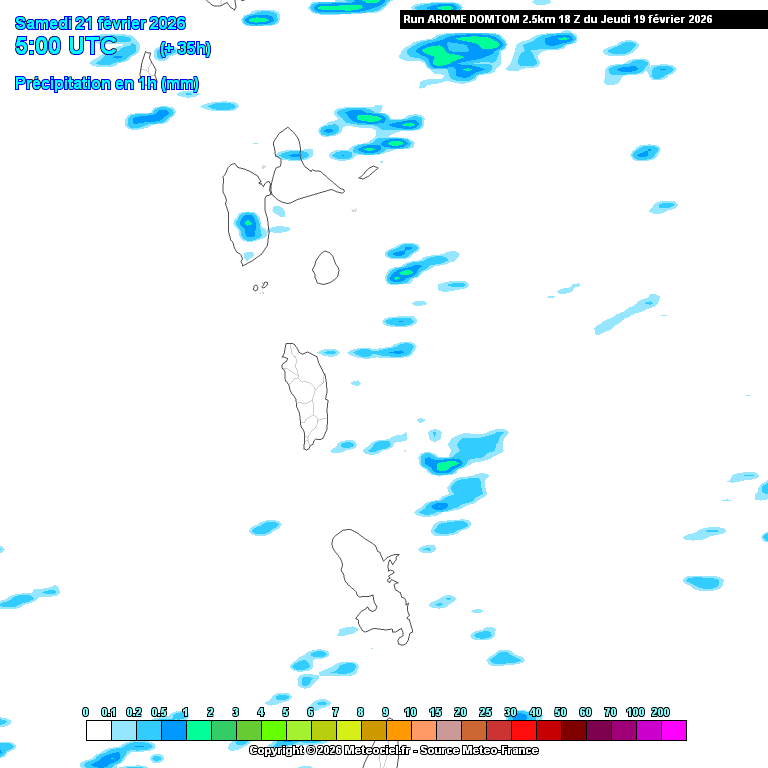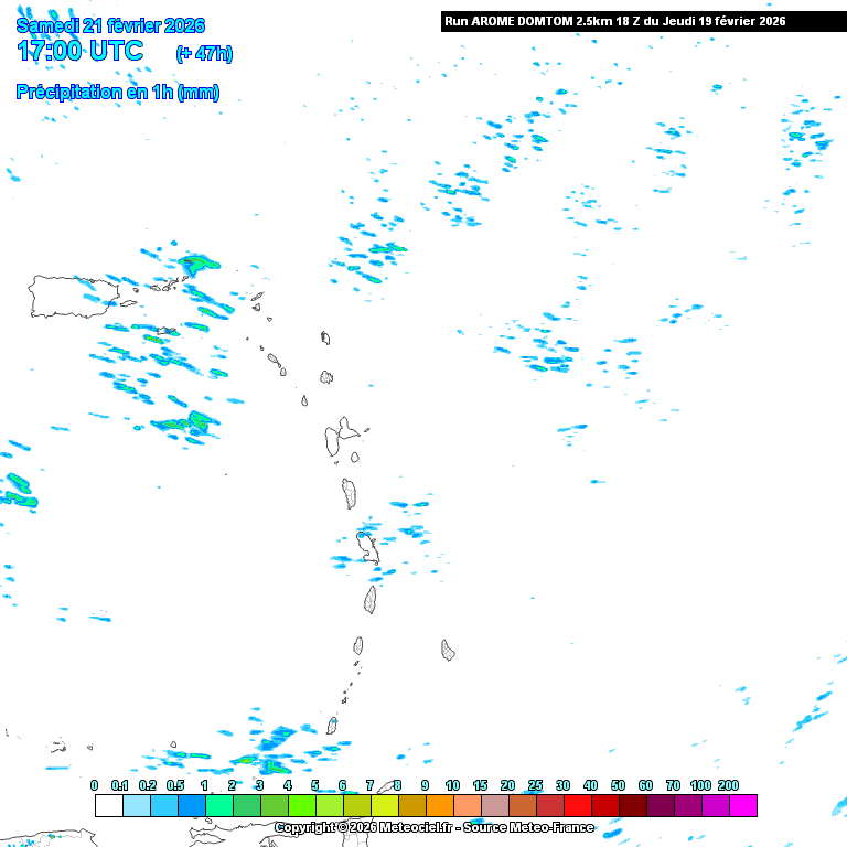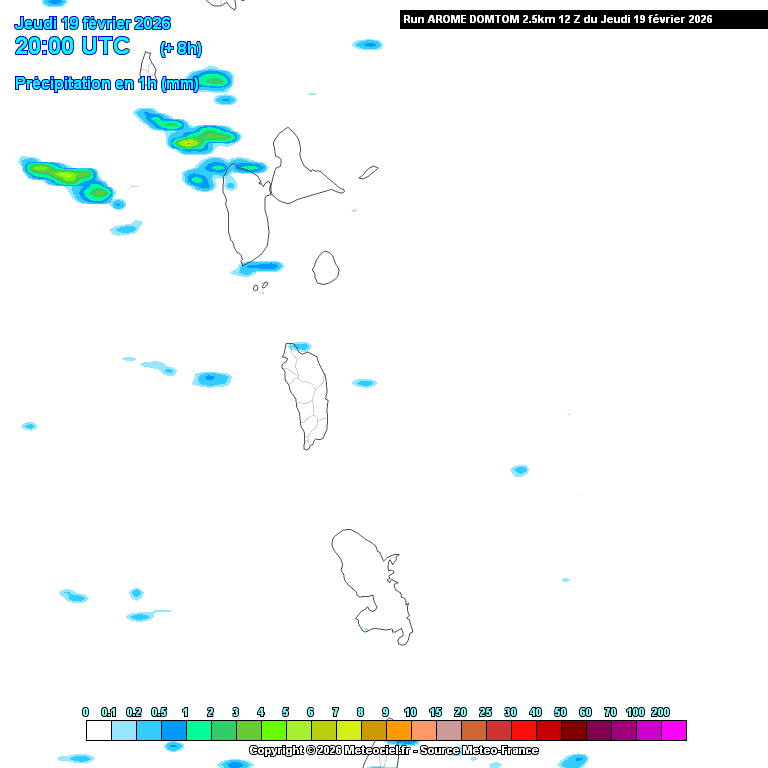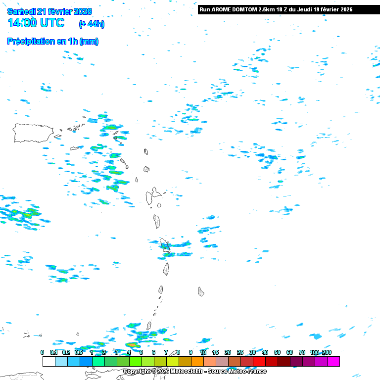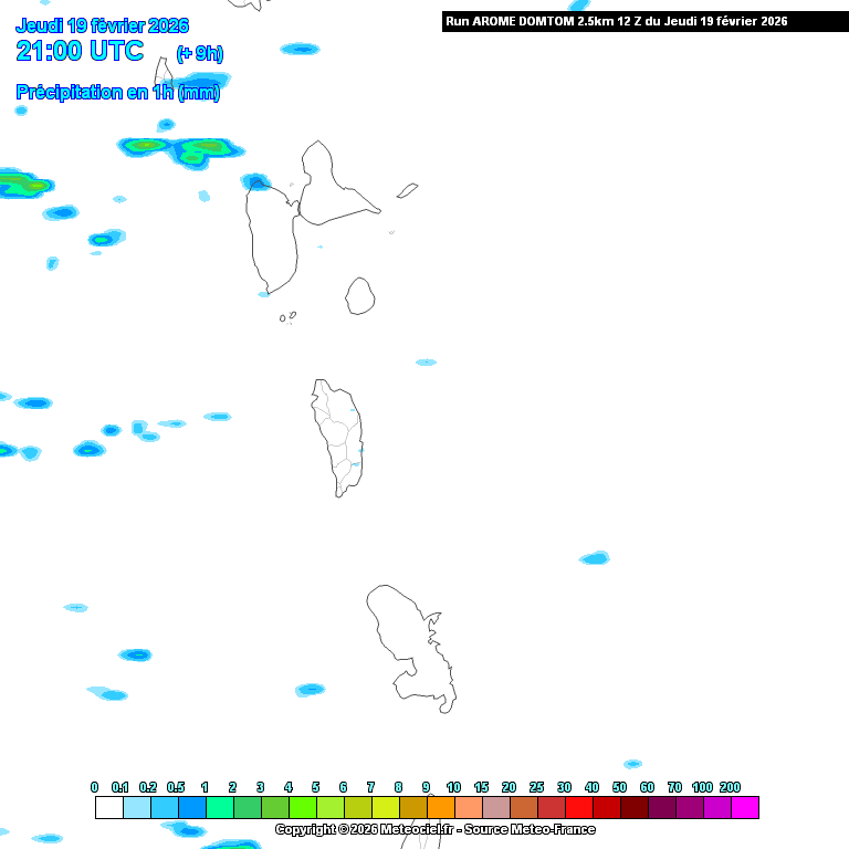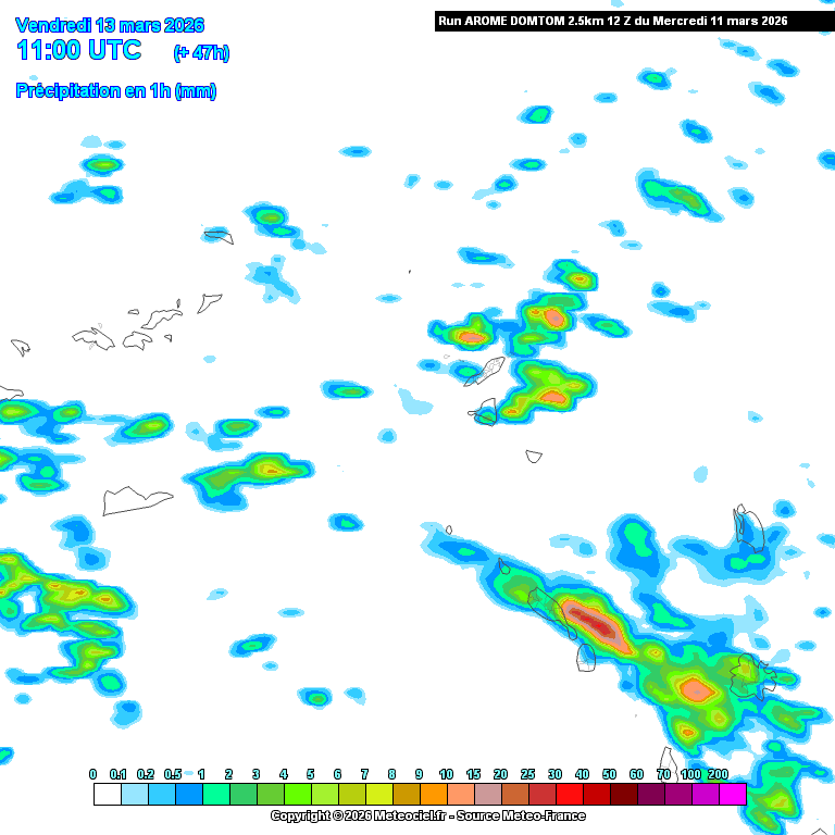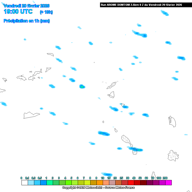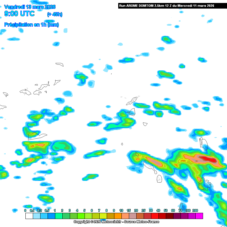Prévisions du modèle à maille fine AROME pour les Antilles produit par Météo France (Source : Météociel.fr)