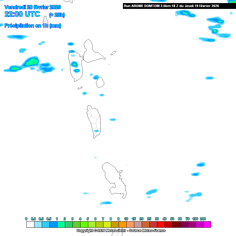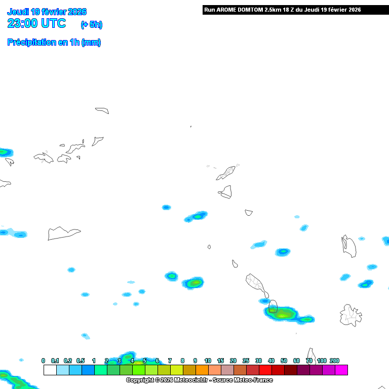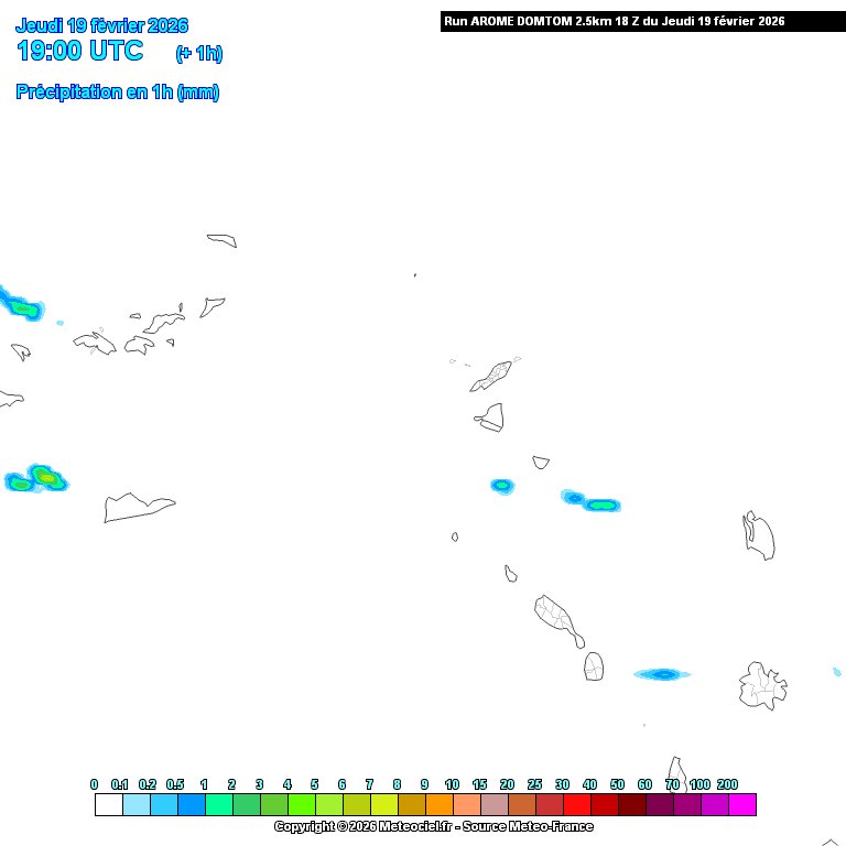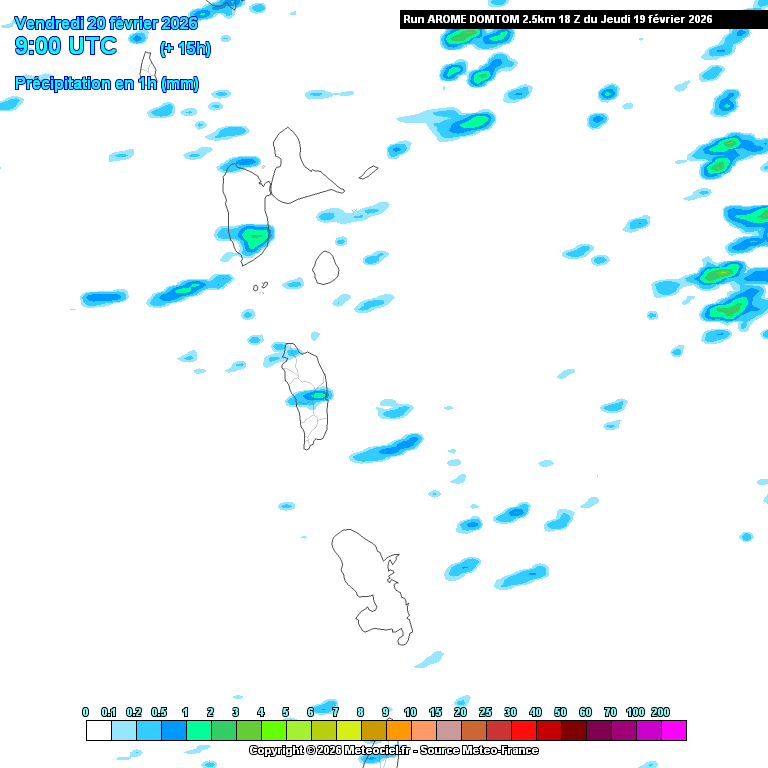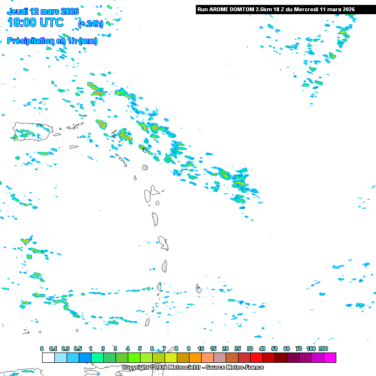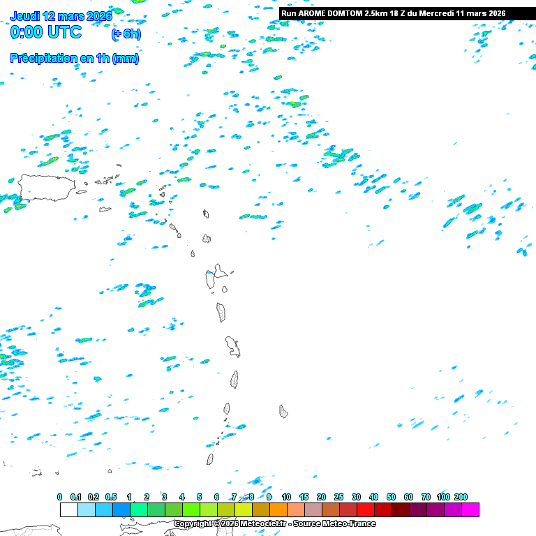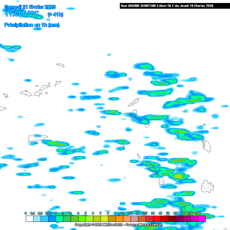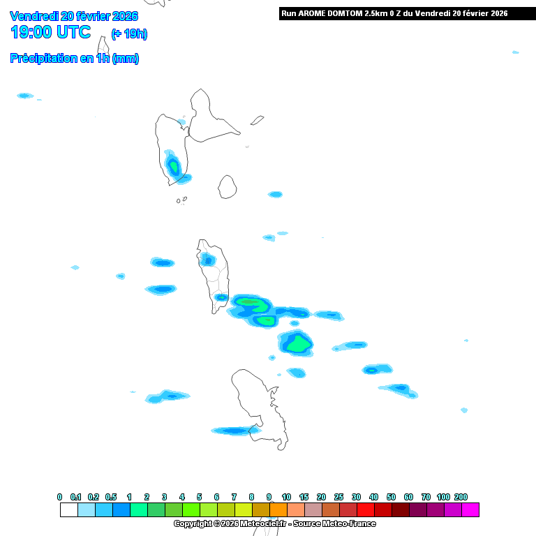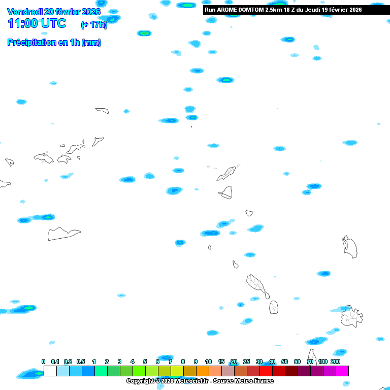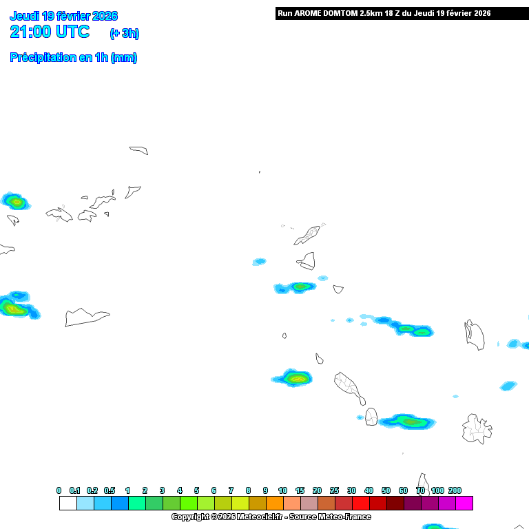 Prévisions du modèle à maille fine AROME pour les Antilles produit par Météo France (Source : Météociel.fr)