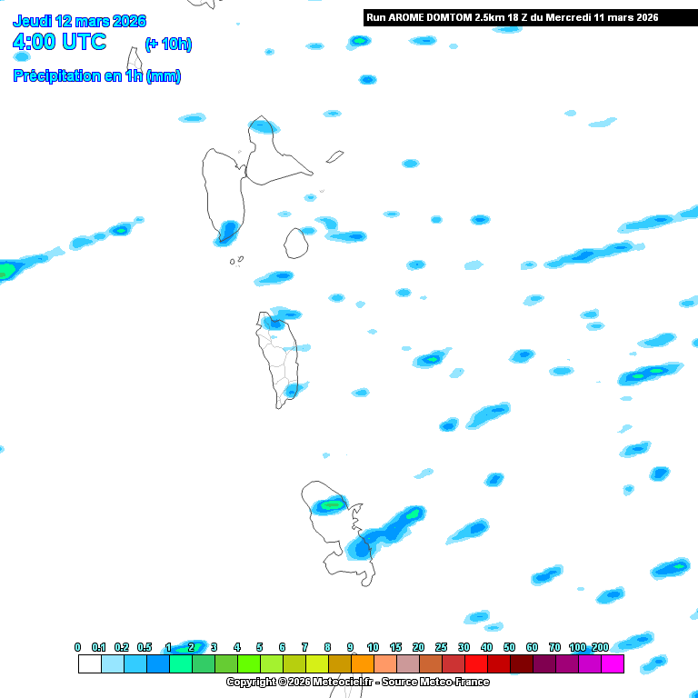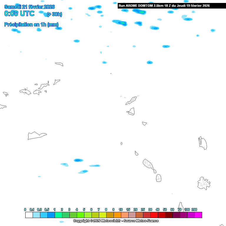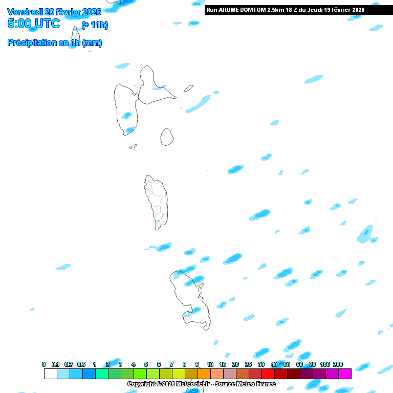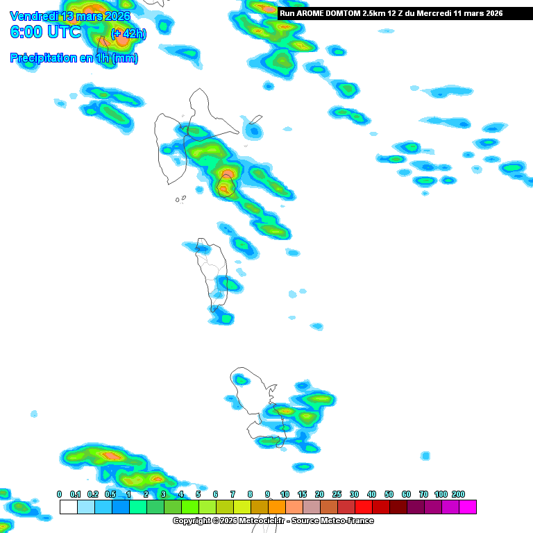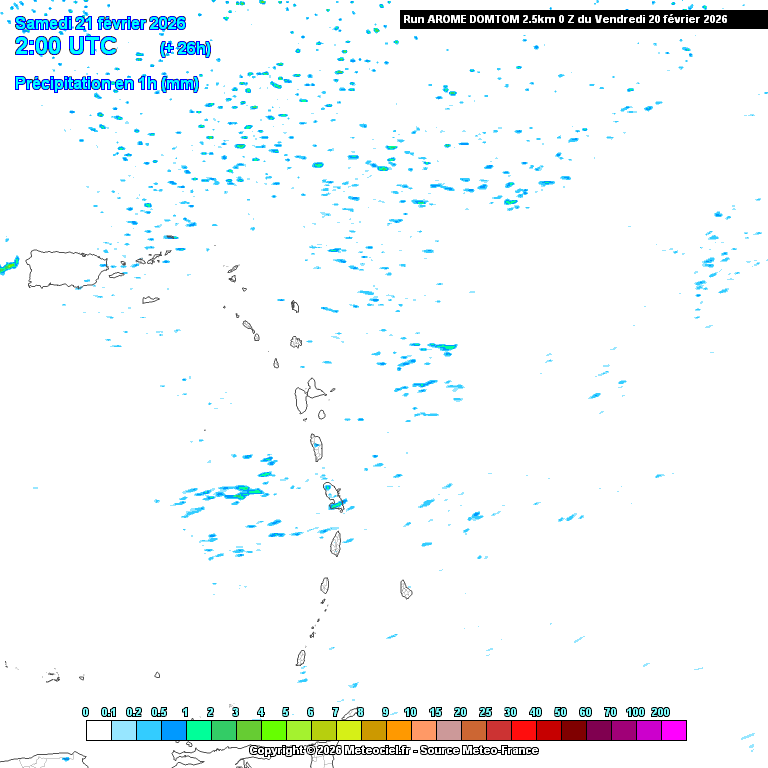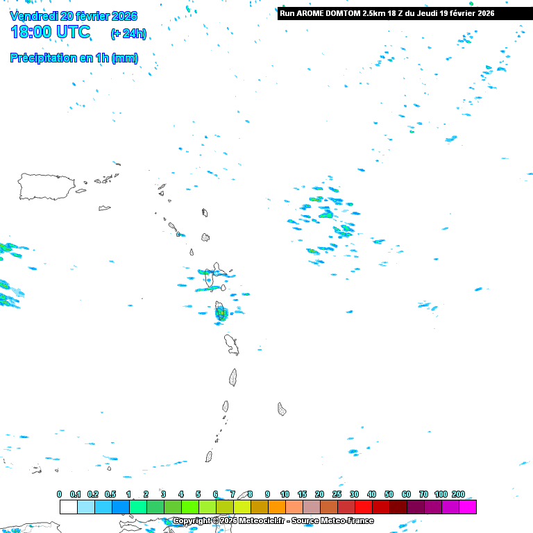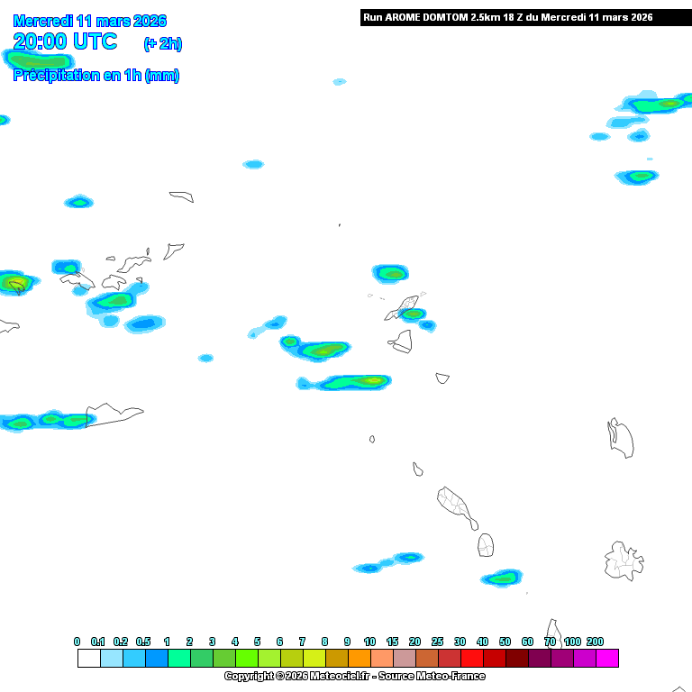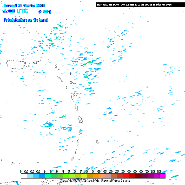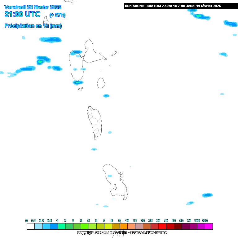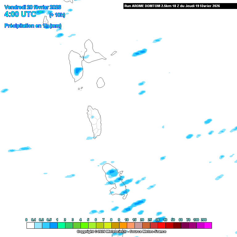 Prévisions du modèle à maille fine AROME pour les Antilles produit par Météo France (Source : Météociel.fr)