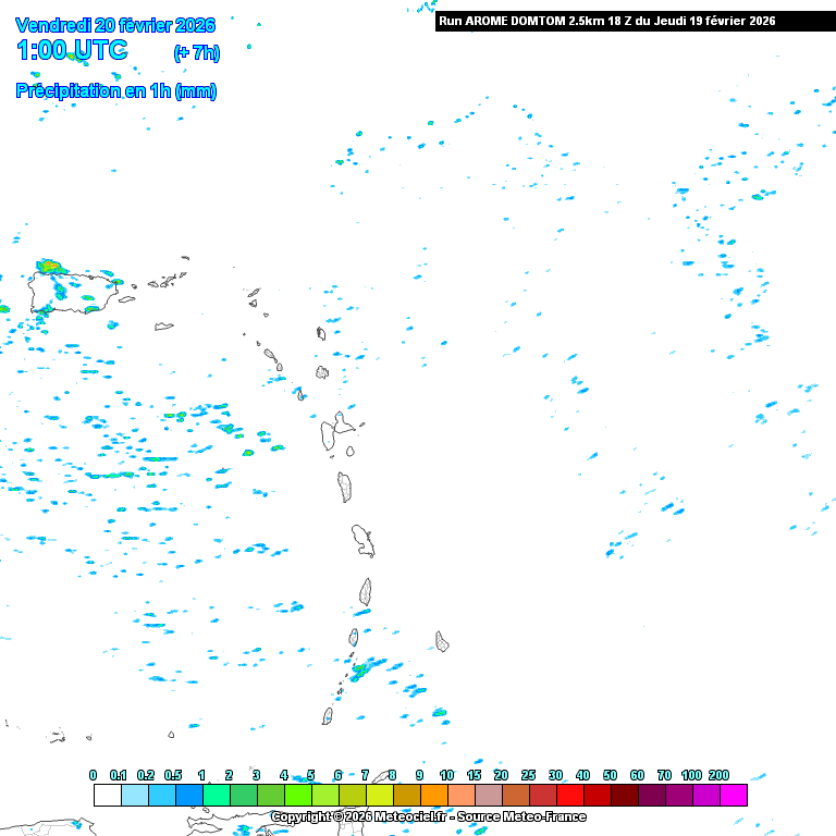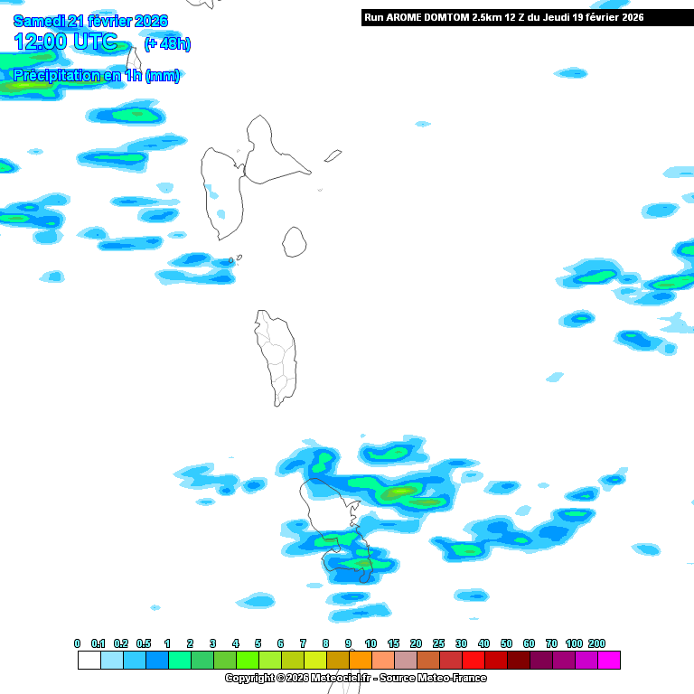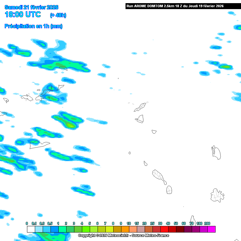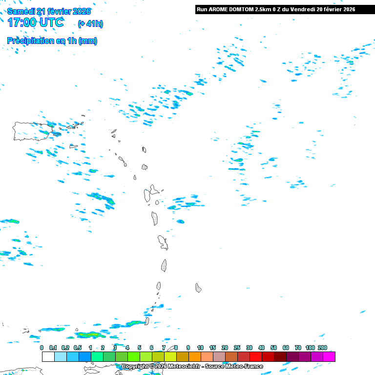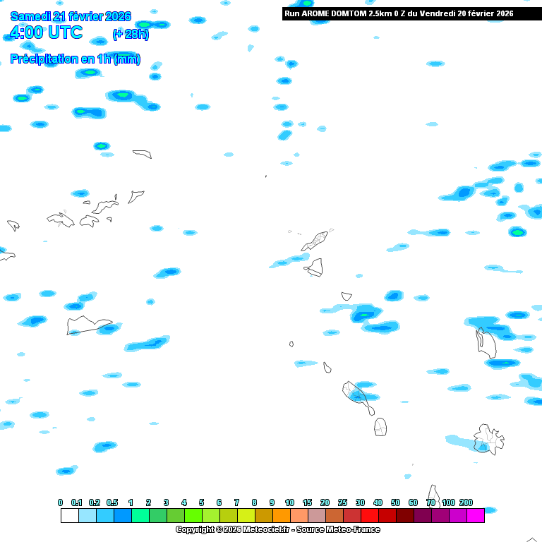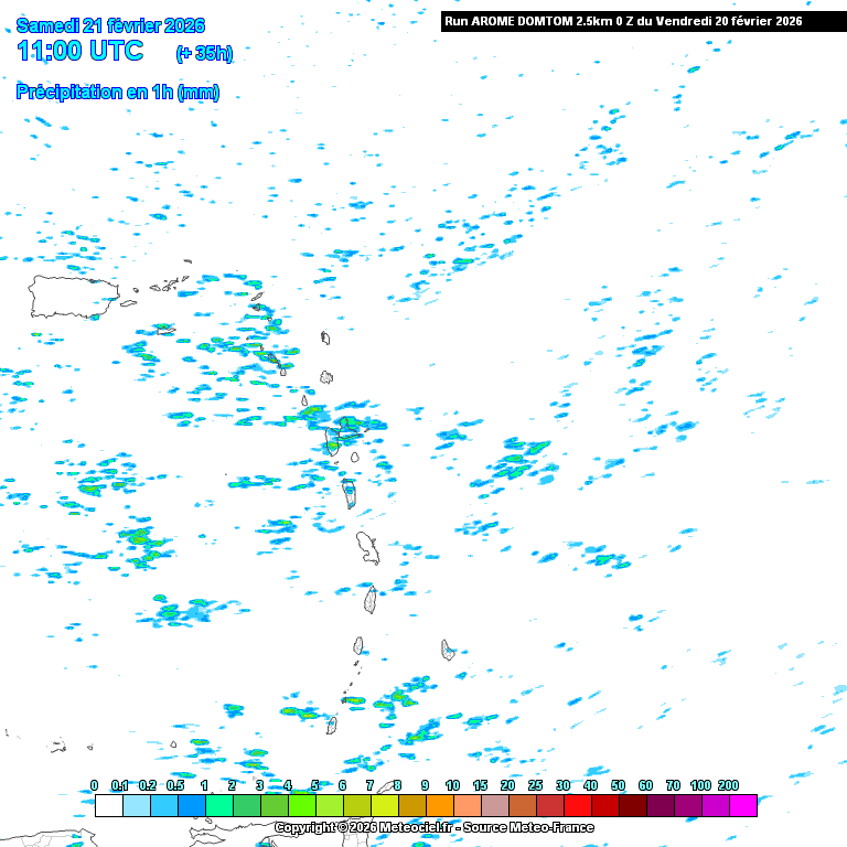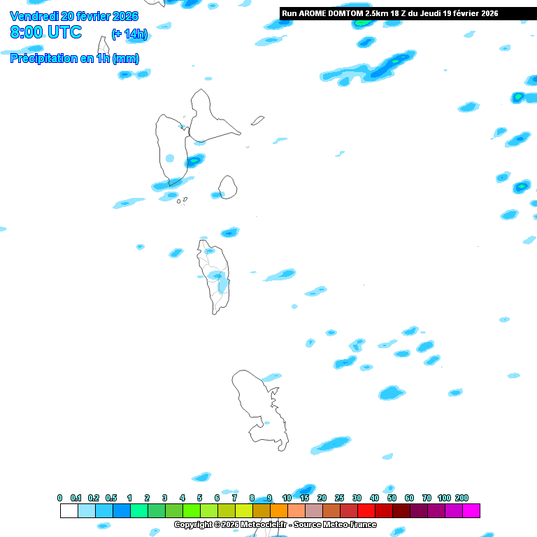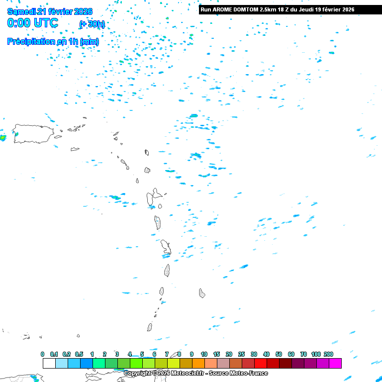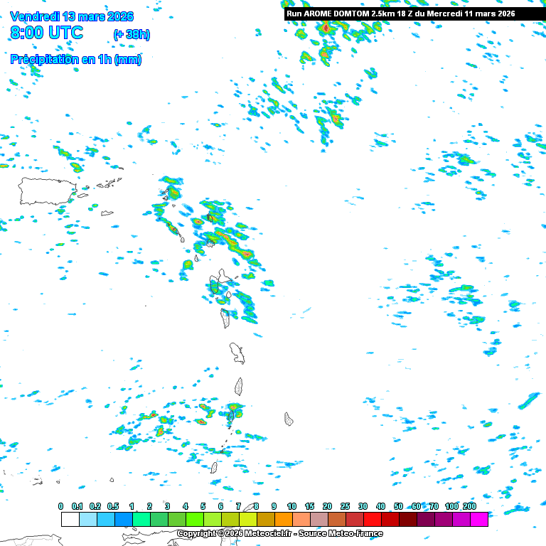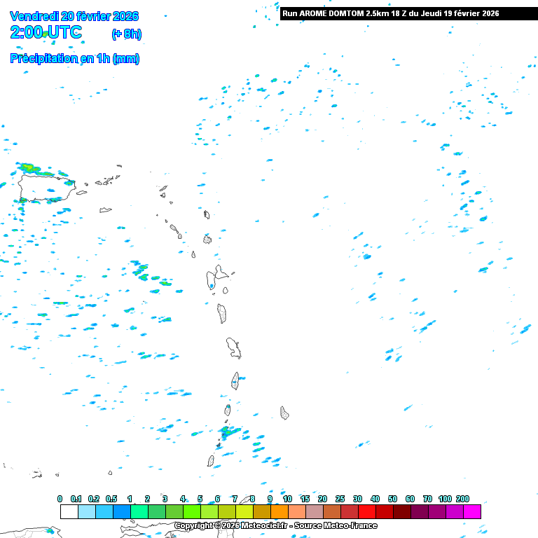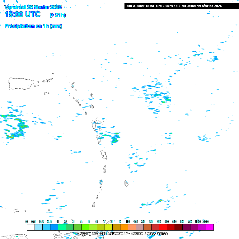 Prévisions du modèle à maille fine AROME pour les Antilles produit par Météo France (Source : Météociel.fr)