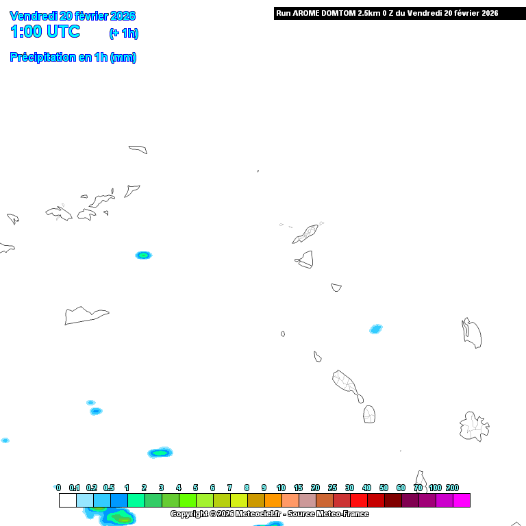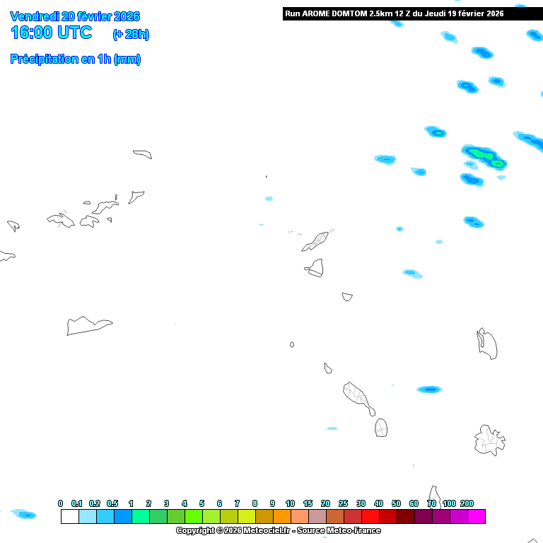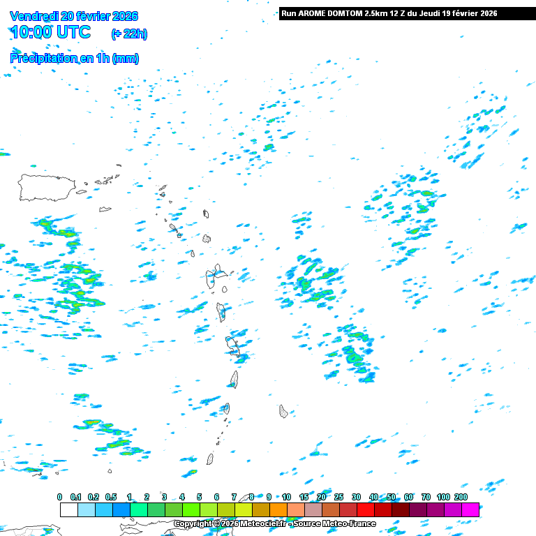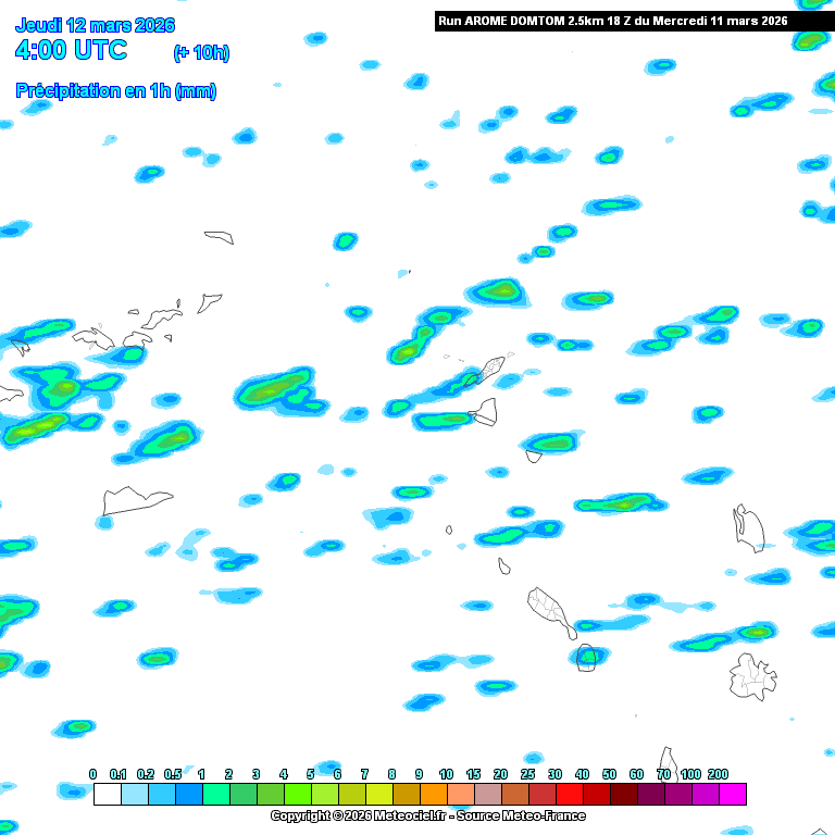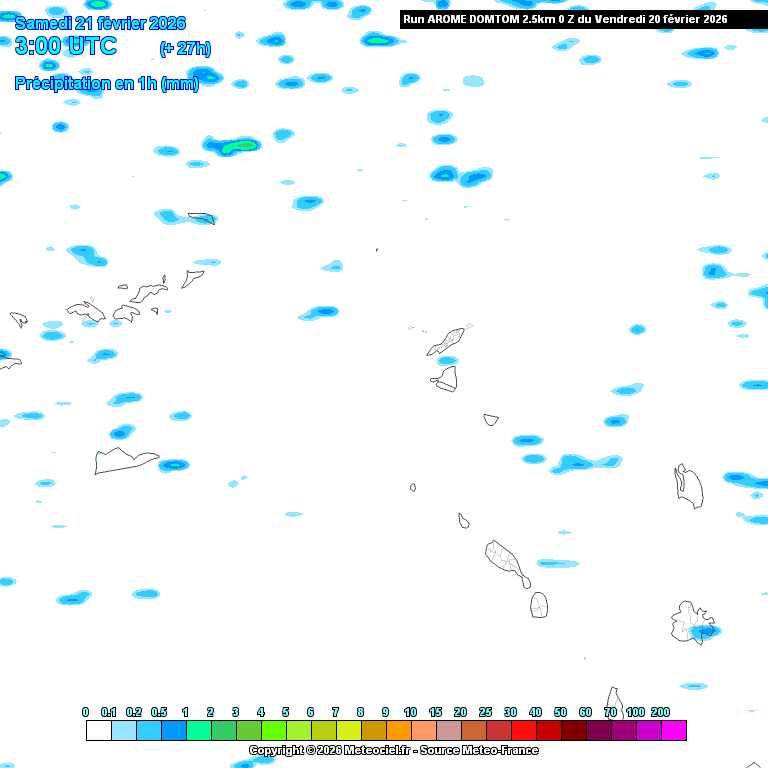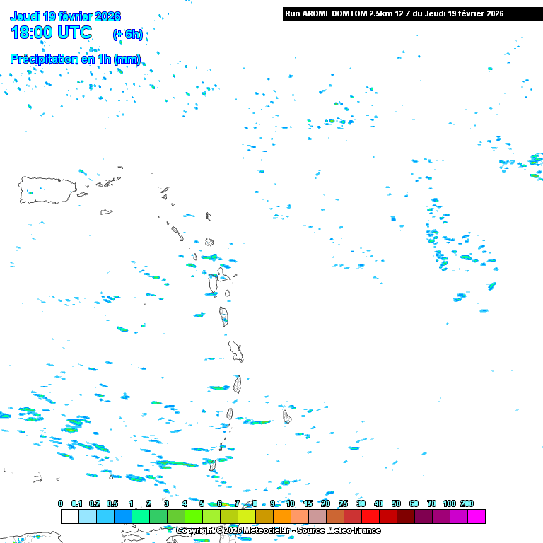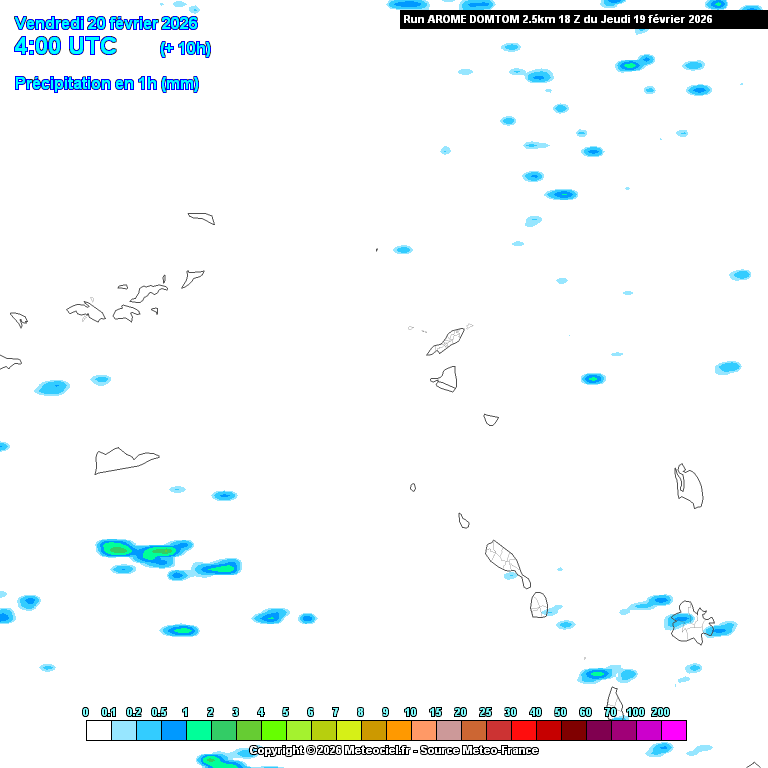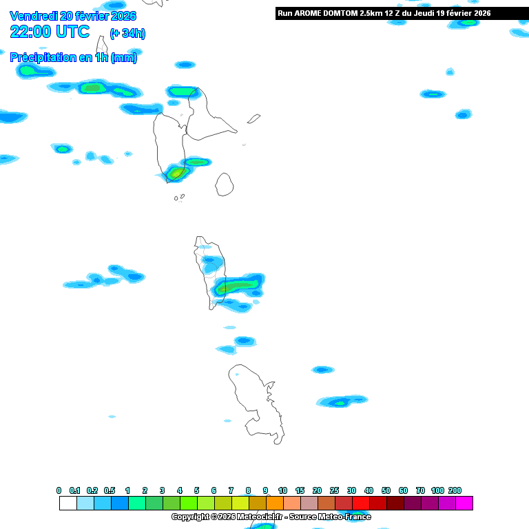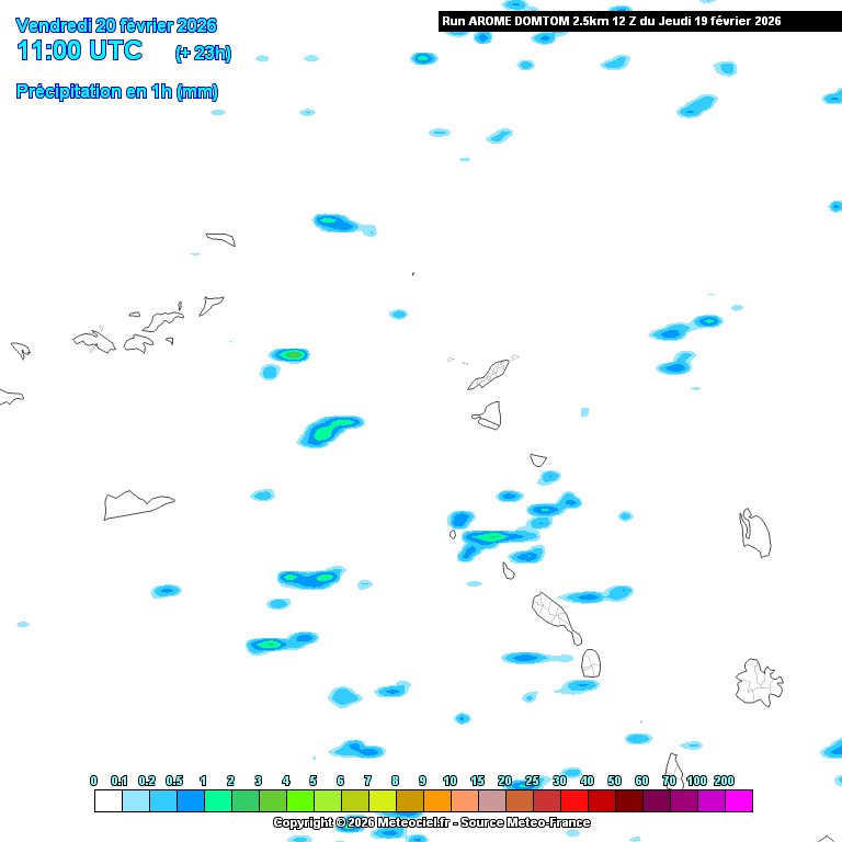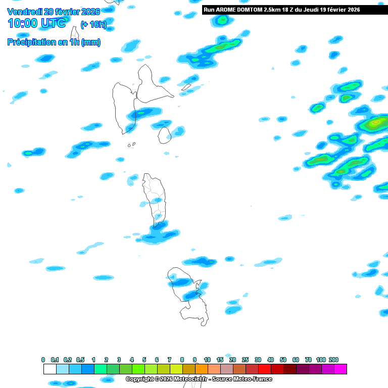 Prévisions du modèle à maille fine AROME pour les Antilles produit par Météo France (Source : Météociel.fr)