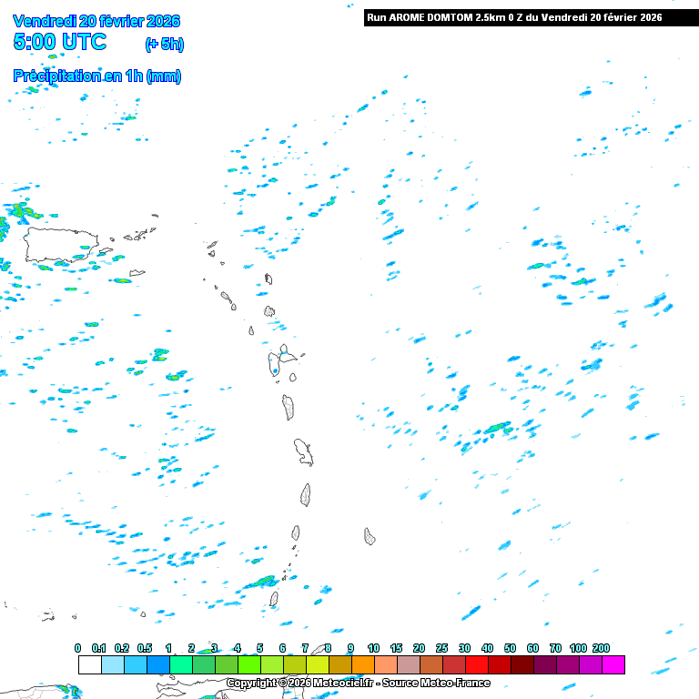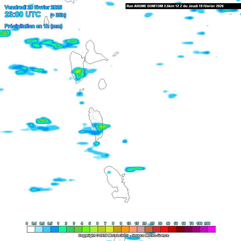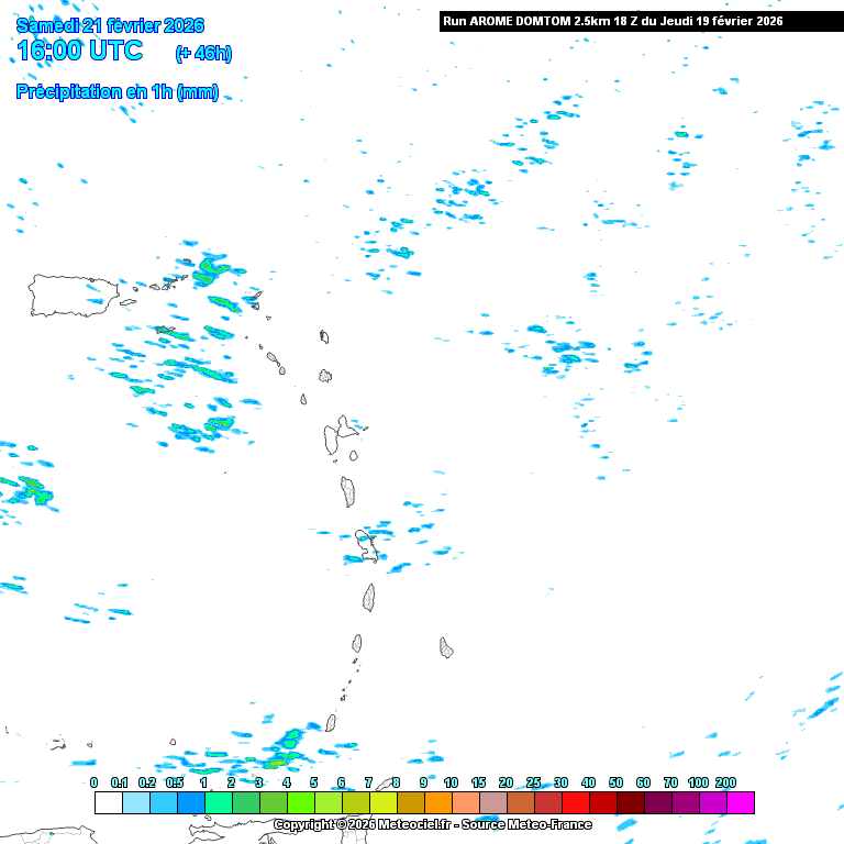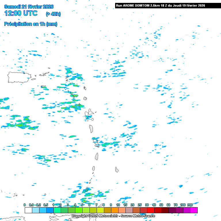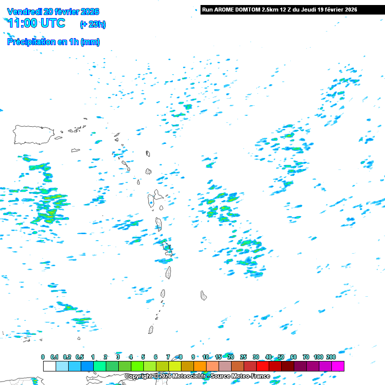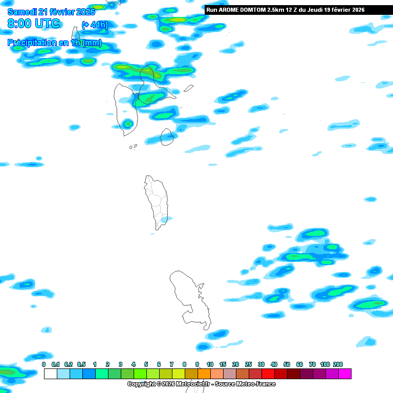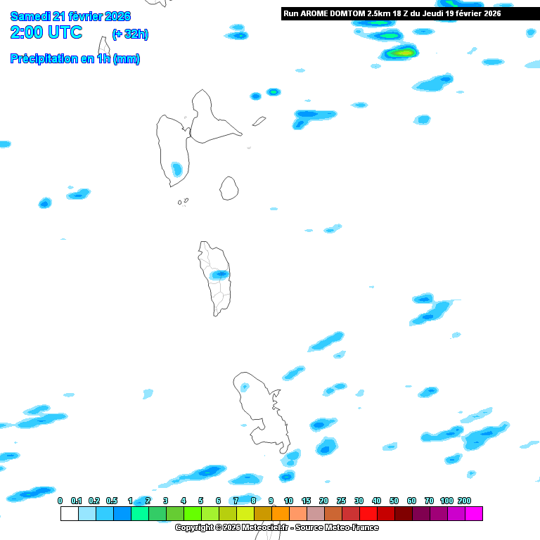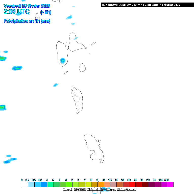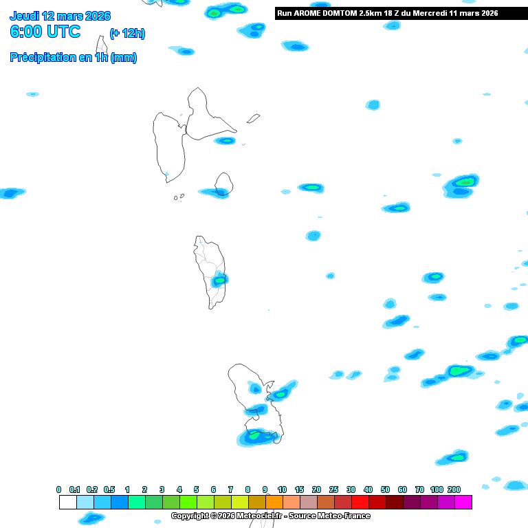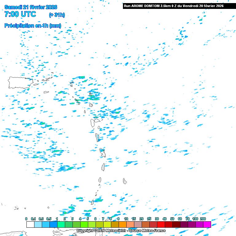 Prévisions du modèle à maille fine AROME pour les Antilles produit par Météo France (Source : Météociel.fr)