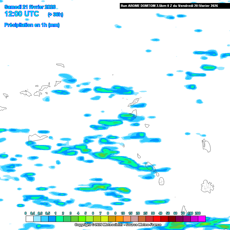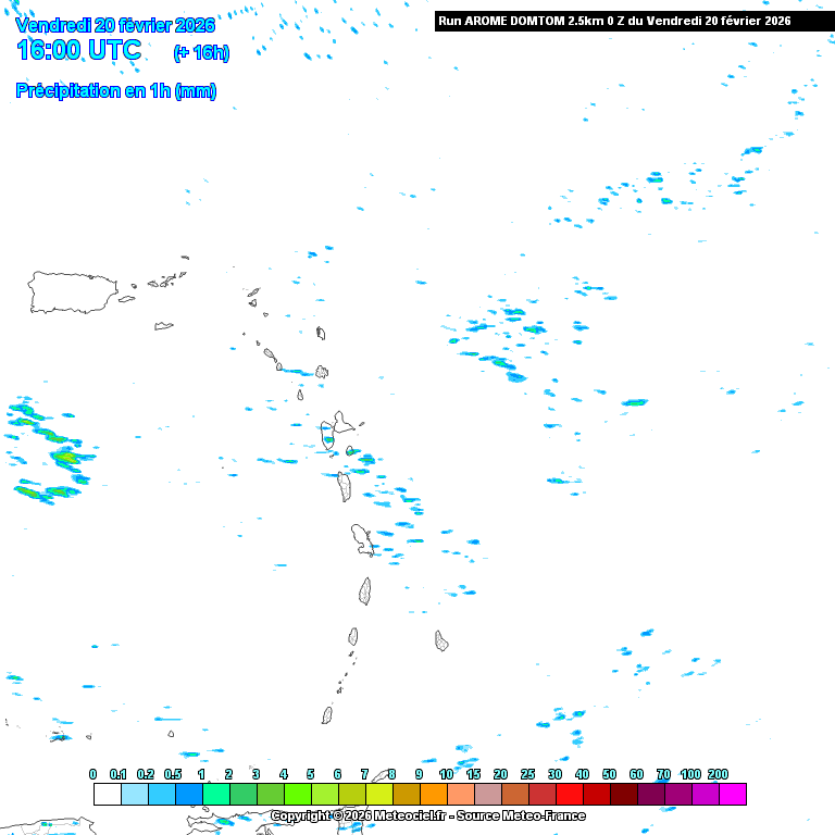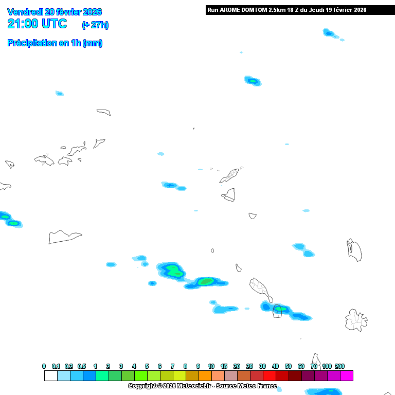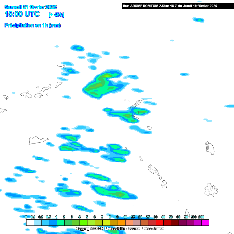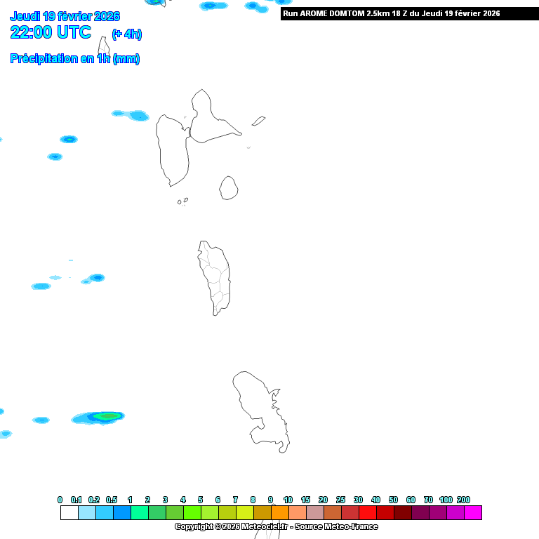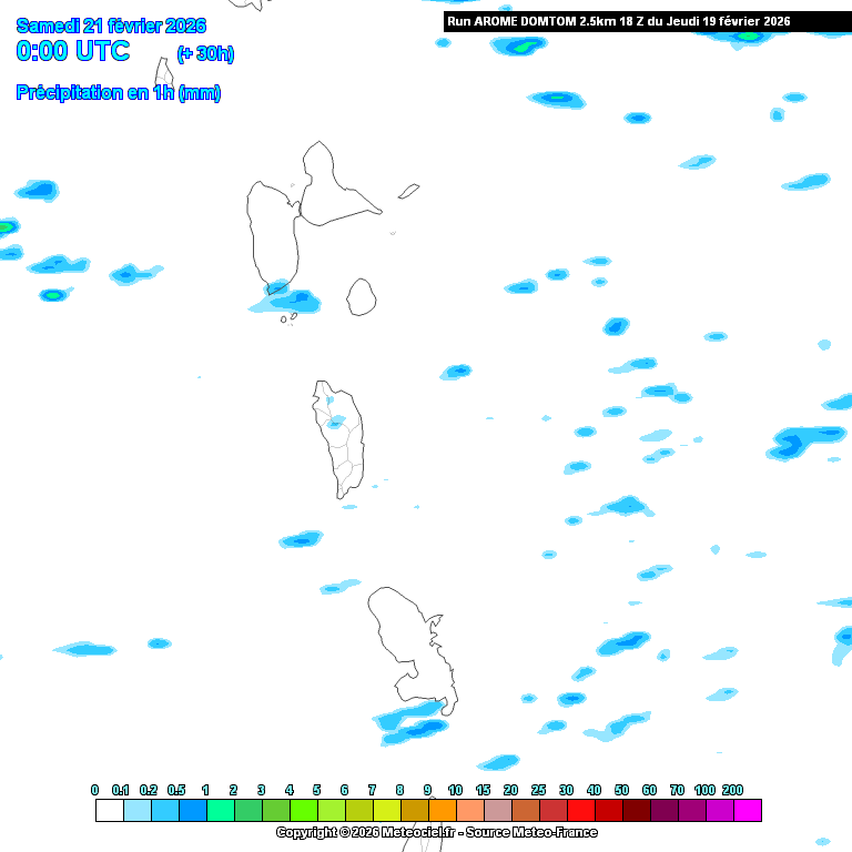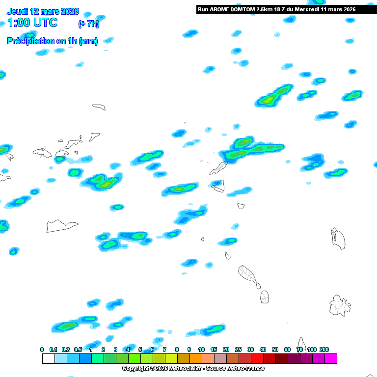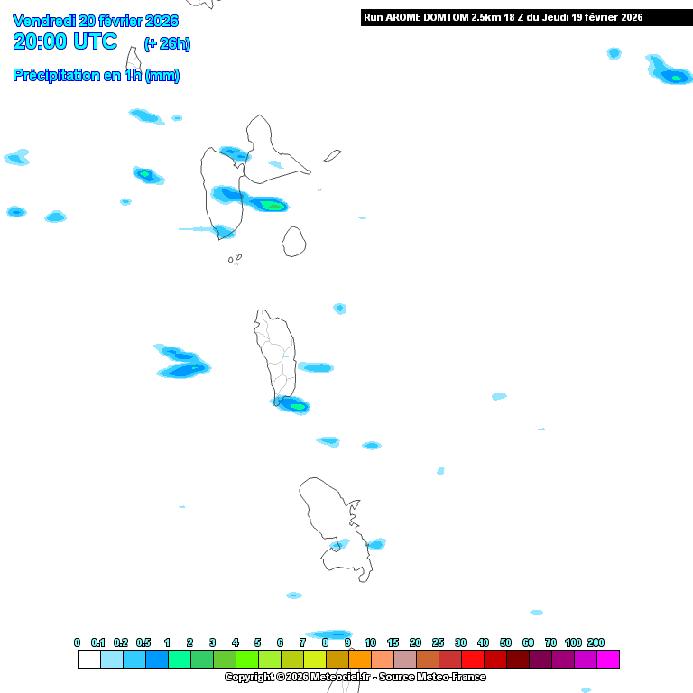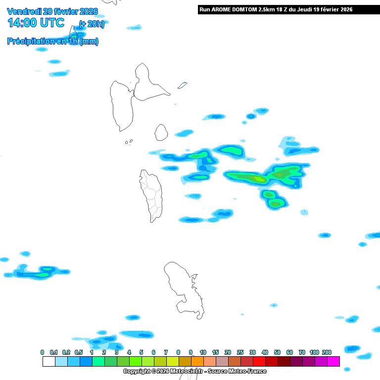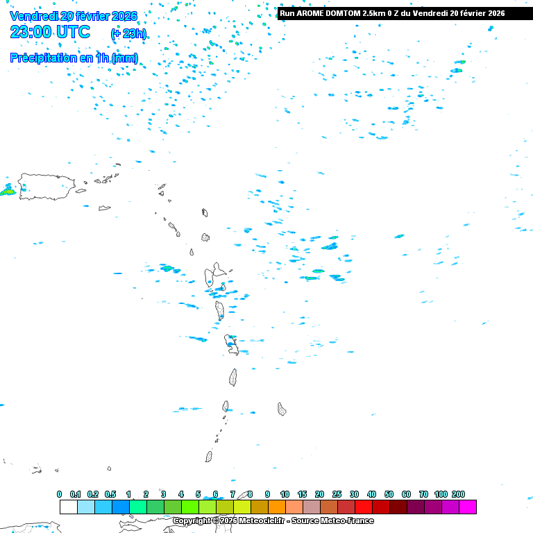 Prévisions du modèle à maille fine AROME pour les Antilles produit par Météo France (Source : Météociel.fr)