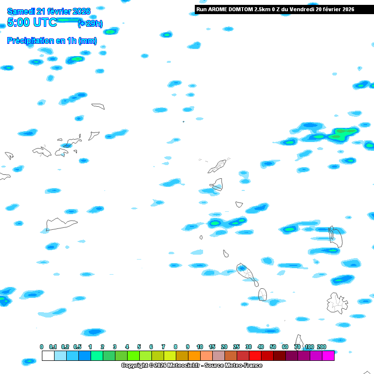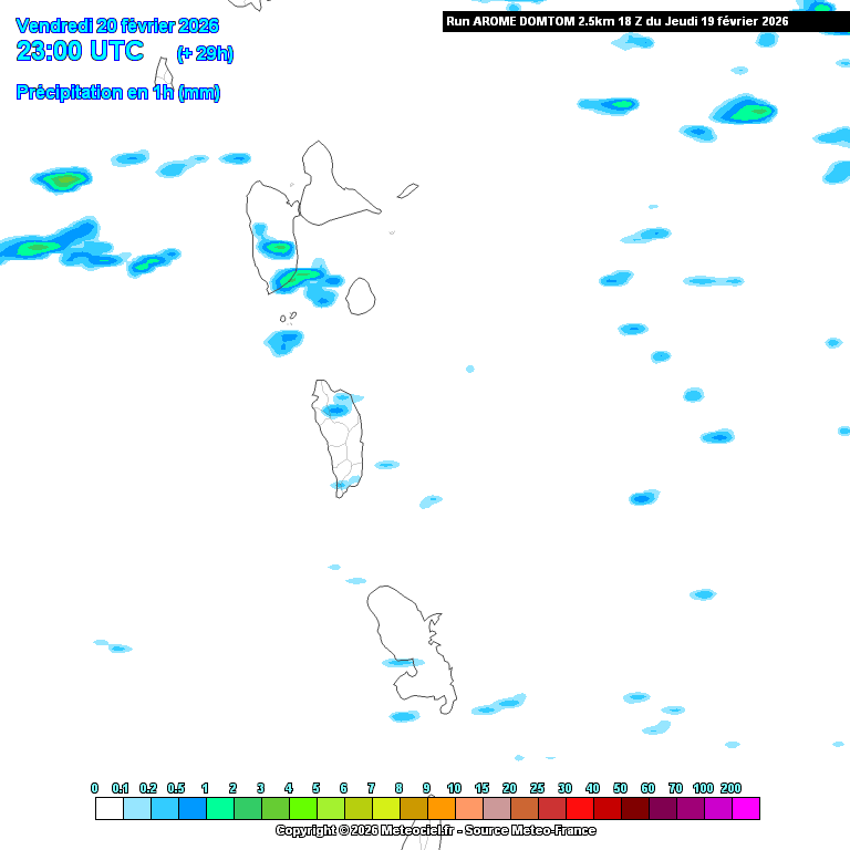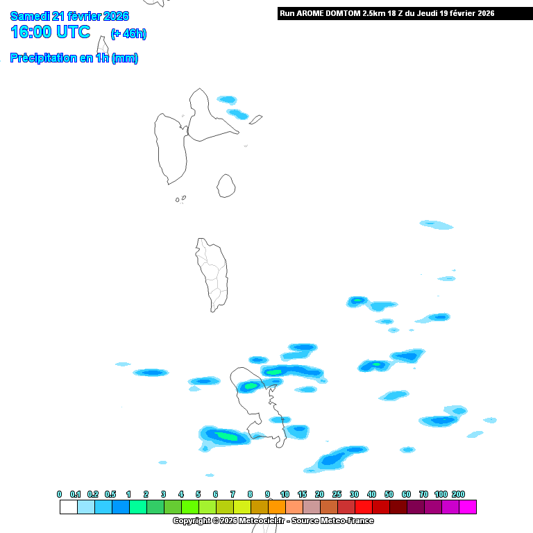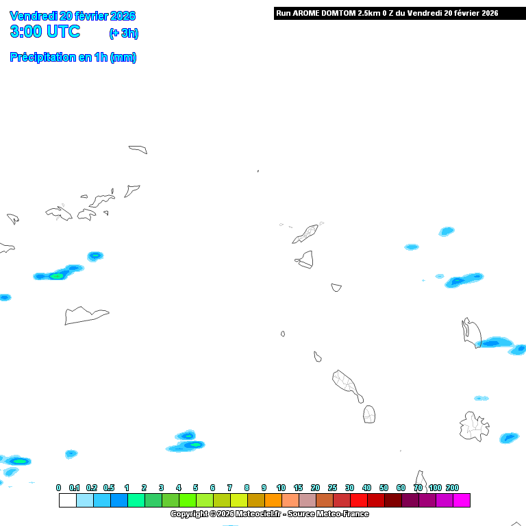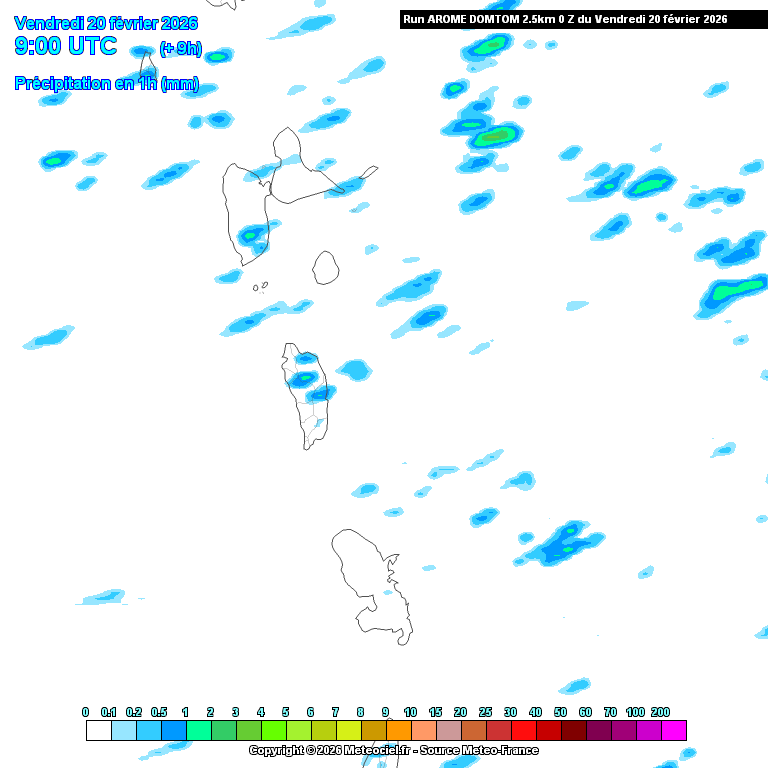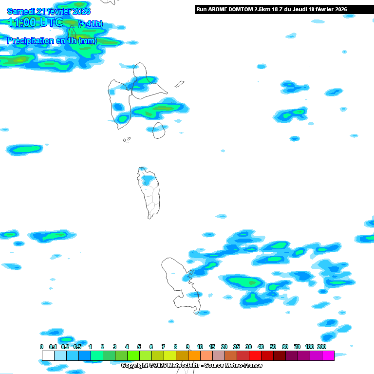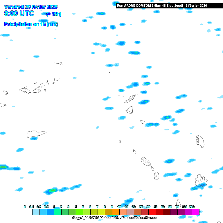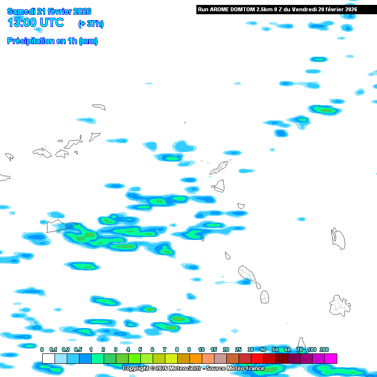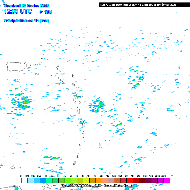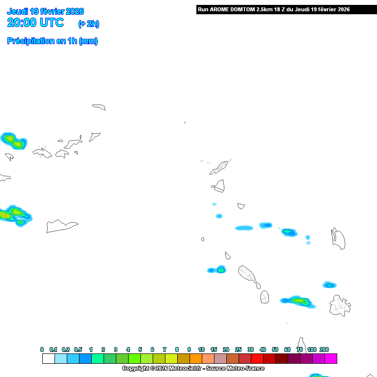 Prévisions du modèle à maille fine AROME pour les Antilles produit par Météo France (Source : Météociel.fr)
