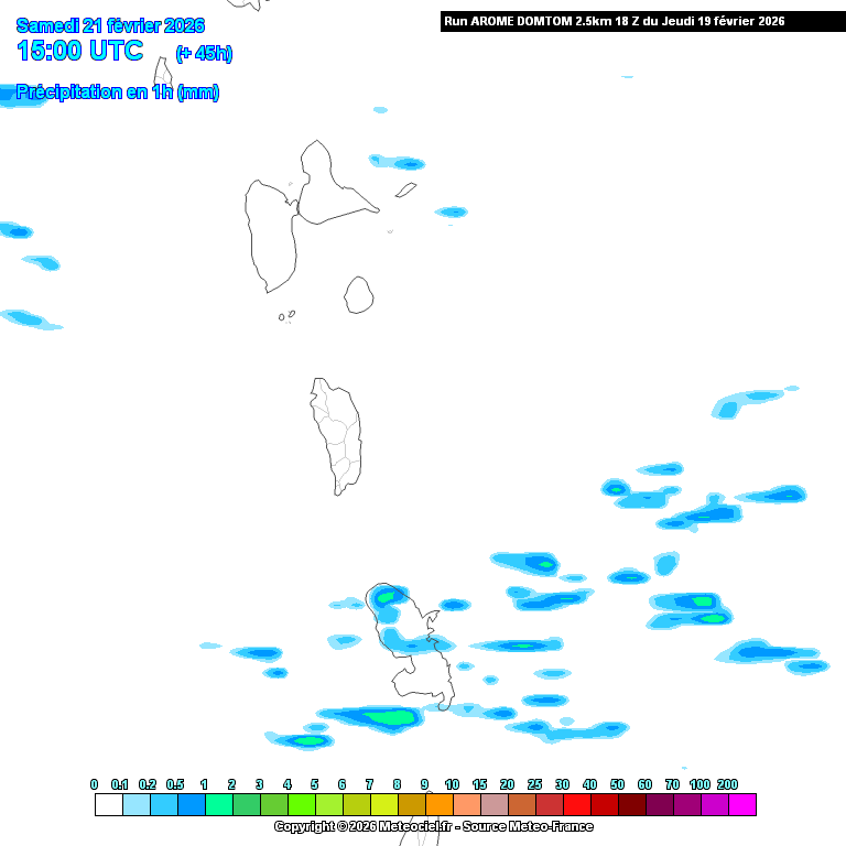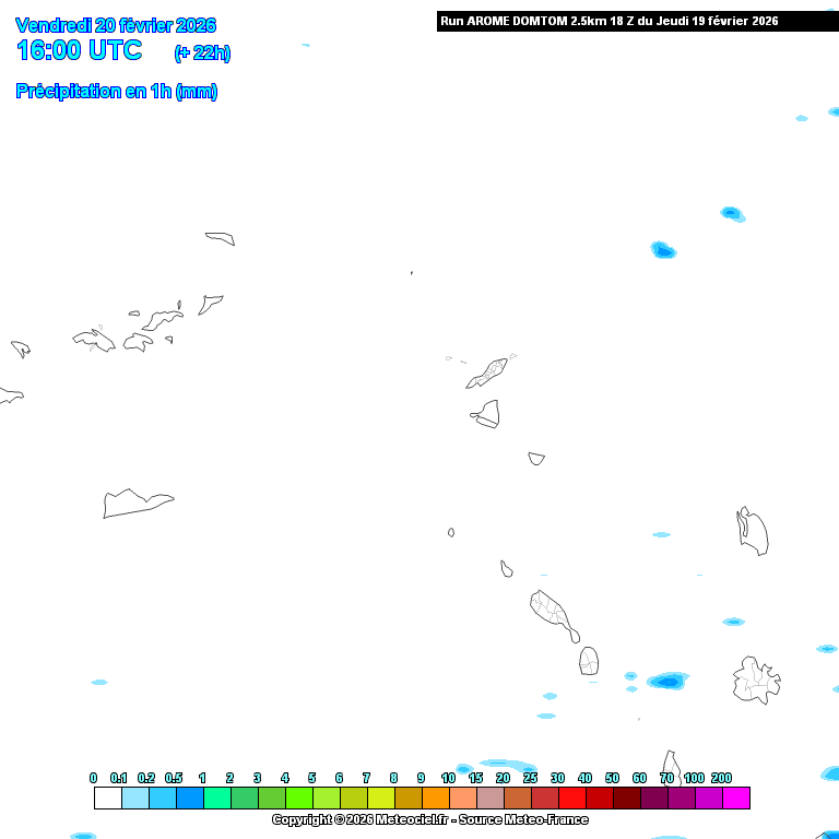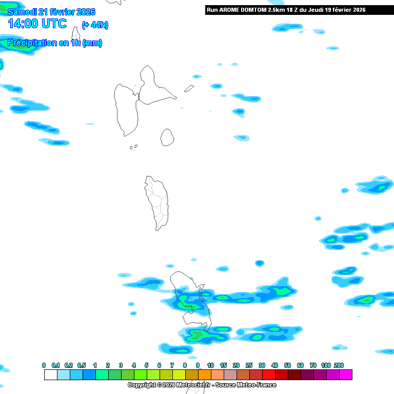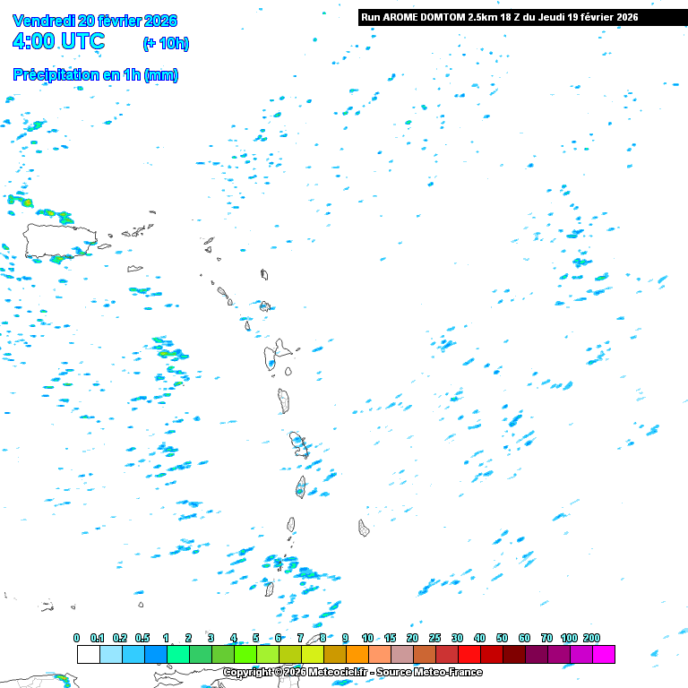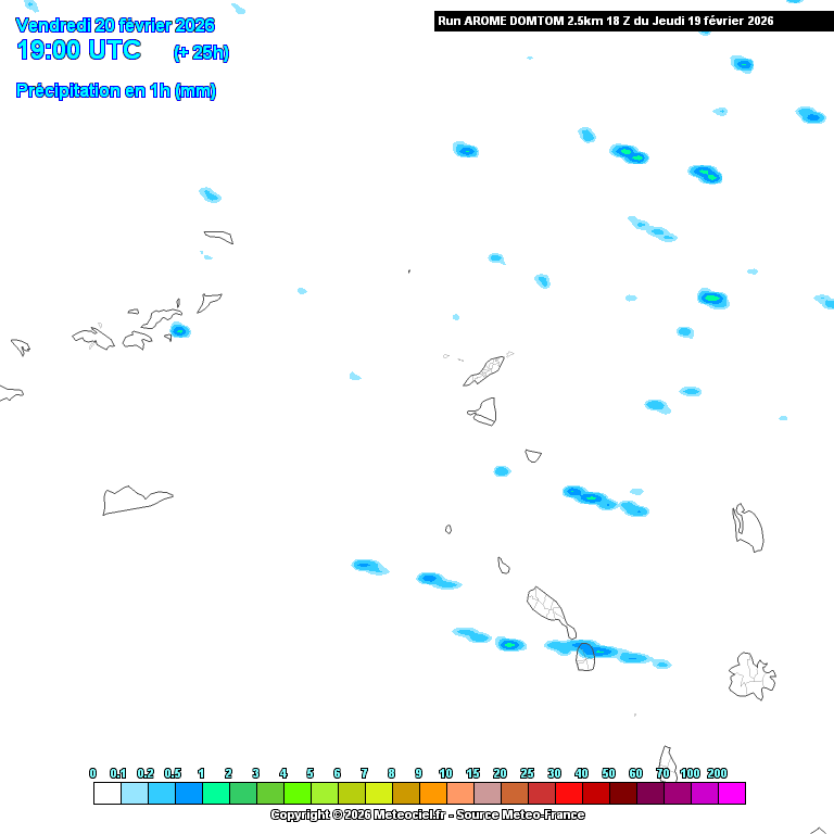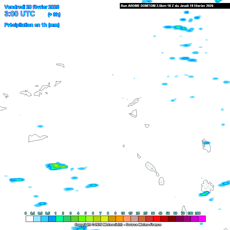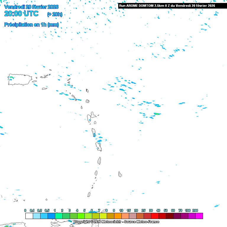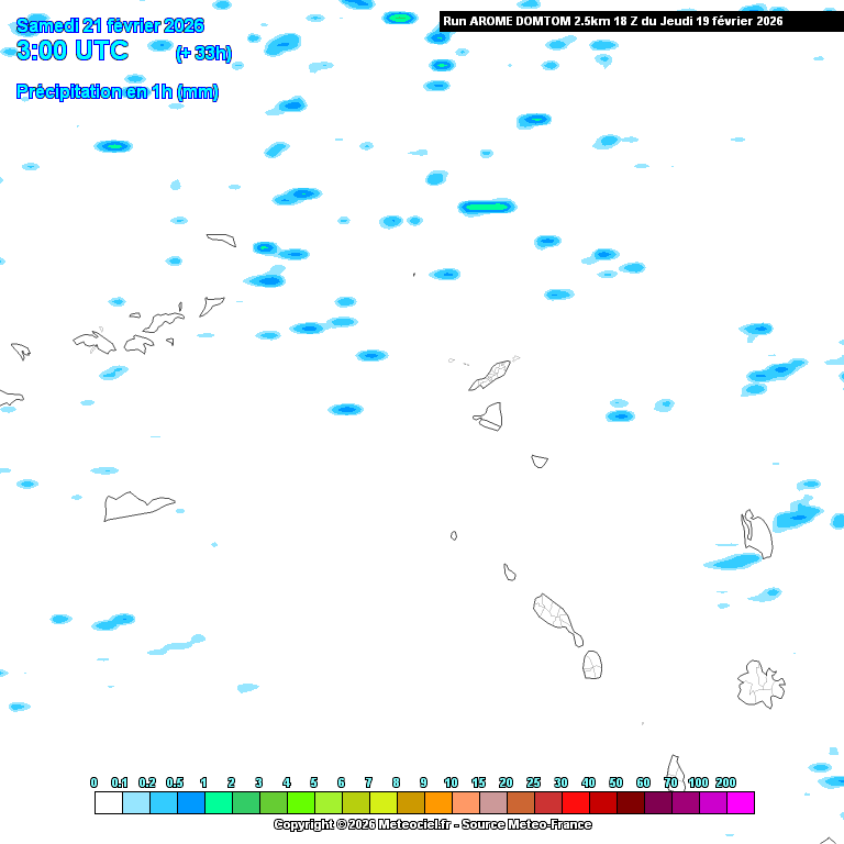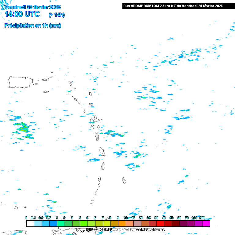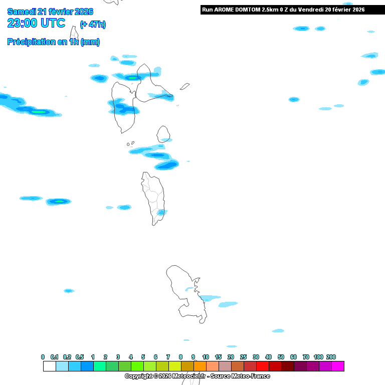 Prévisions du modèle à maille fine AROME pour les Antilles produit par Météo France (Source : Météociel.fr)