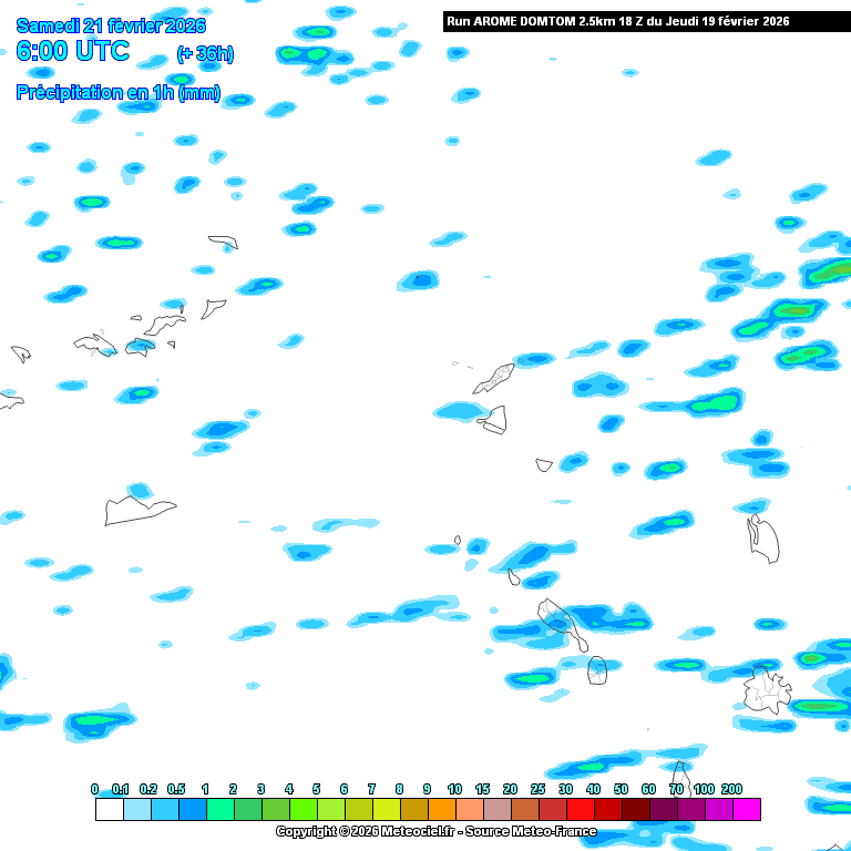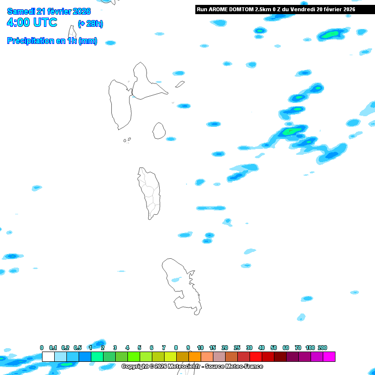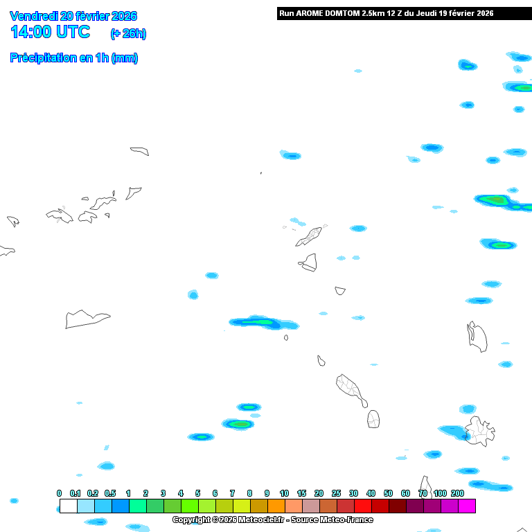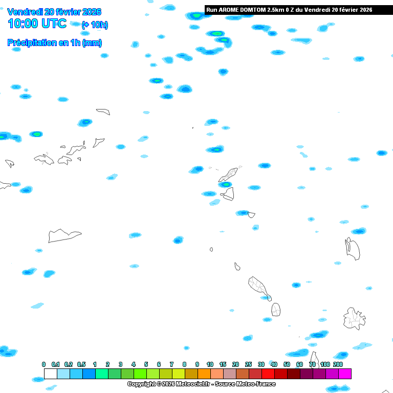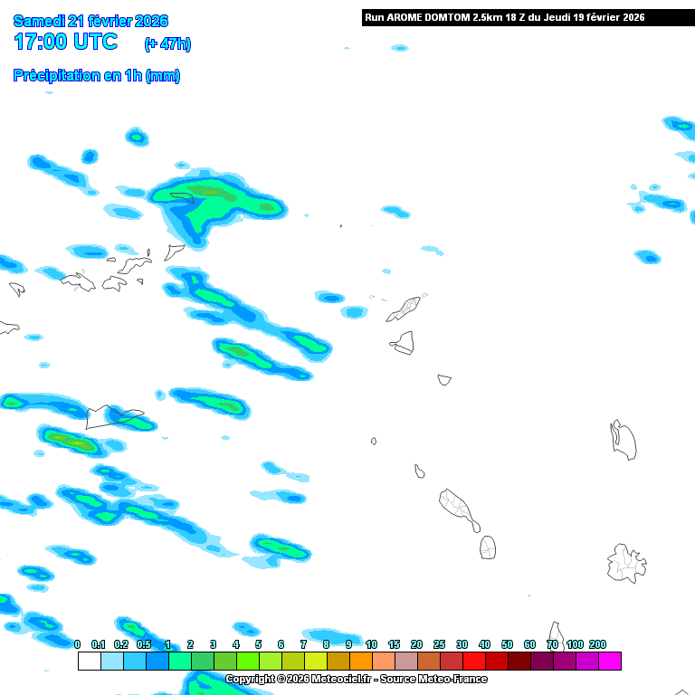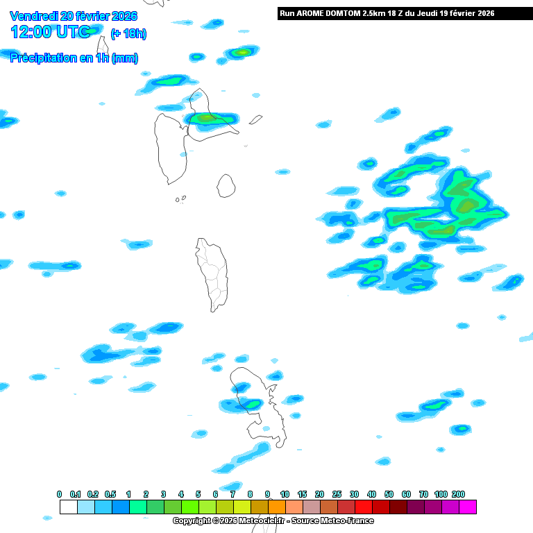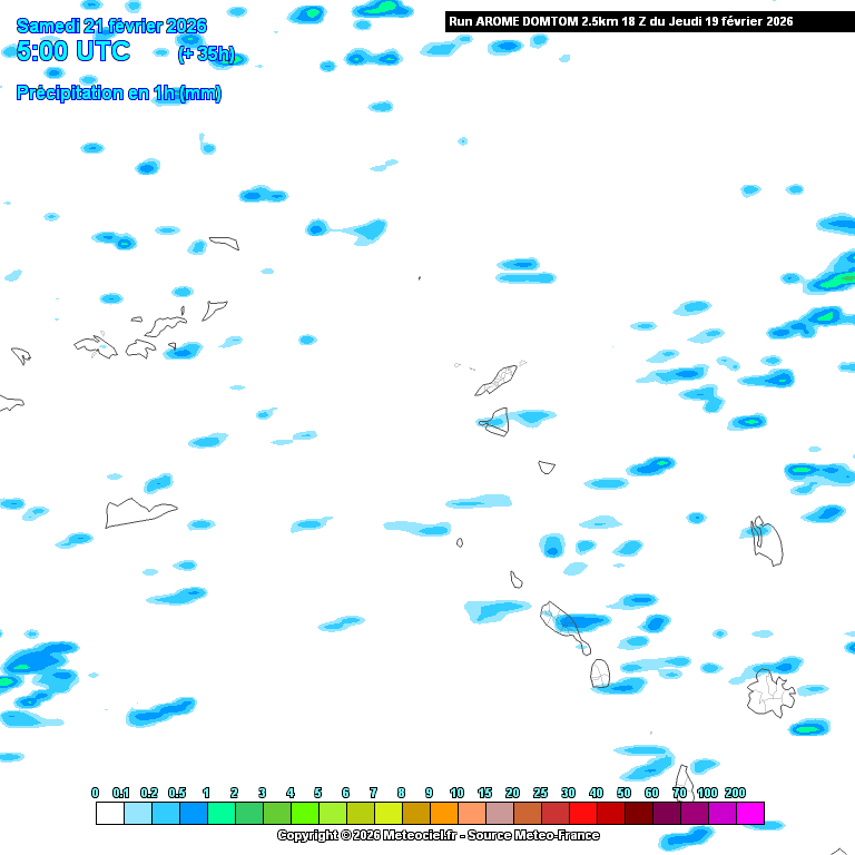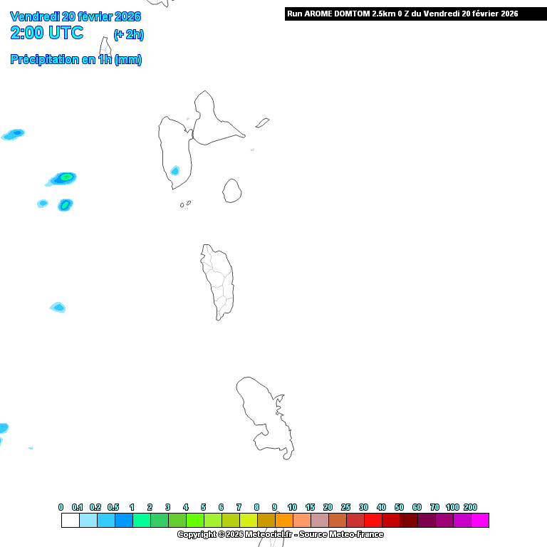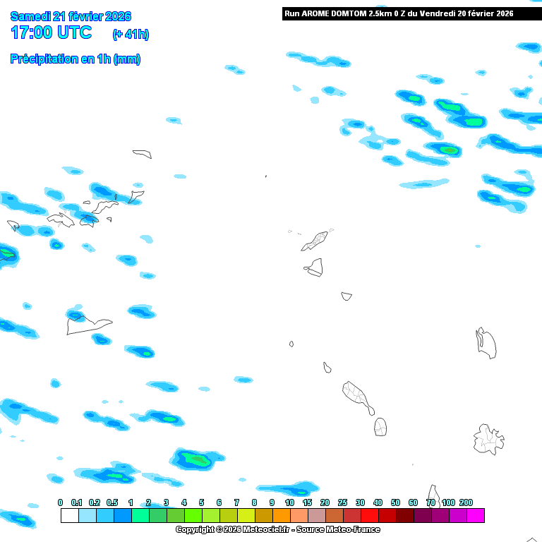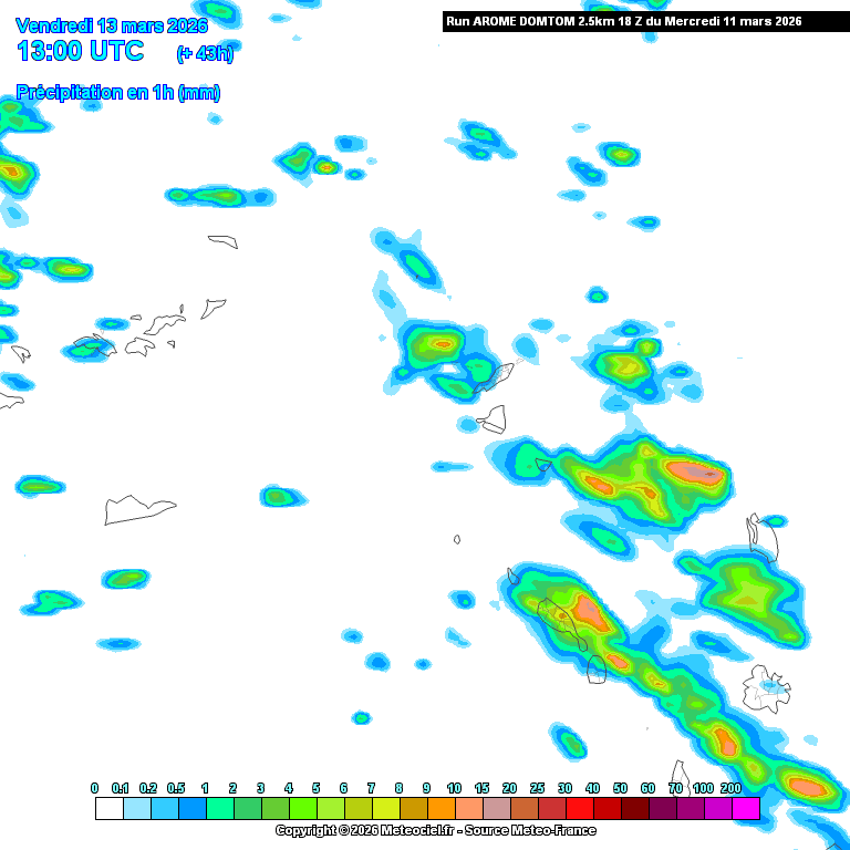 Prévisions du modèle à maille fine AROME pour les Antilles produit par Météo France (Source : Météociel.fr)