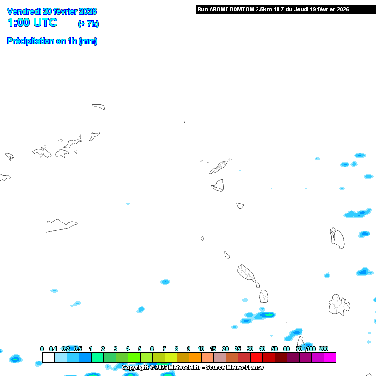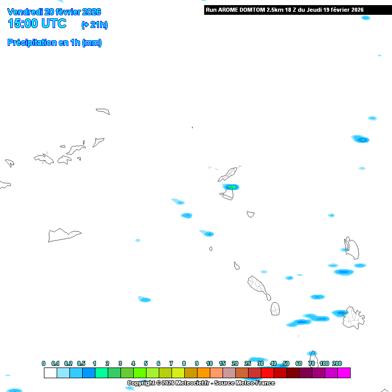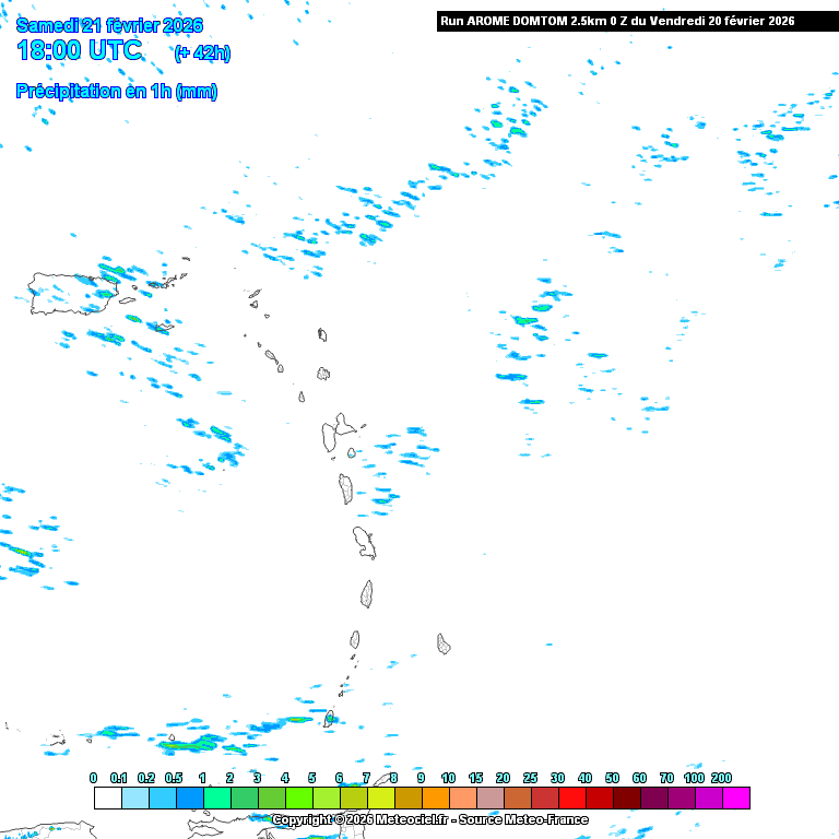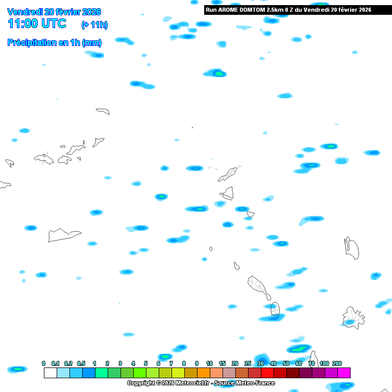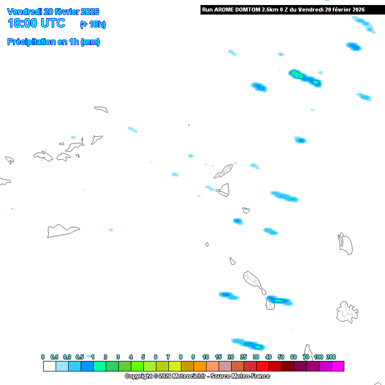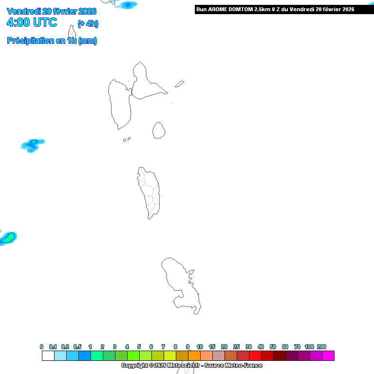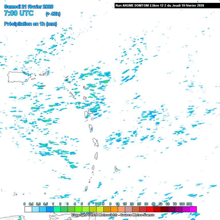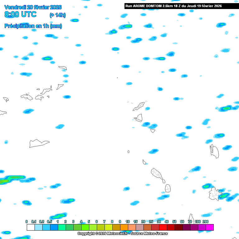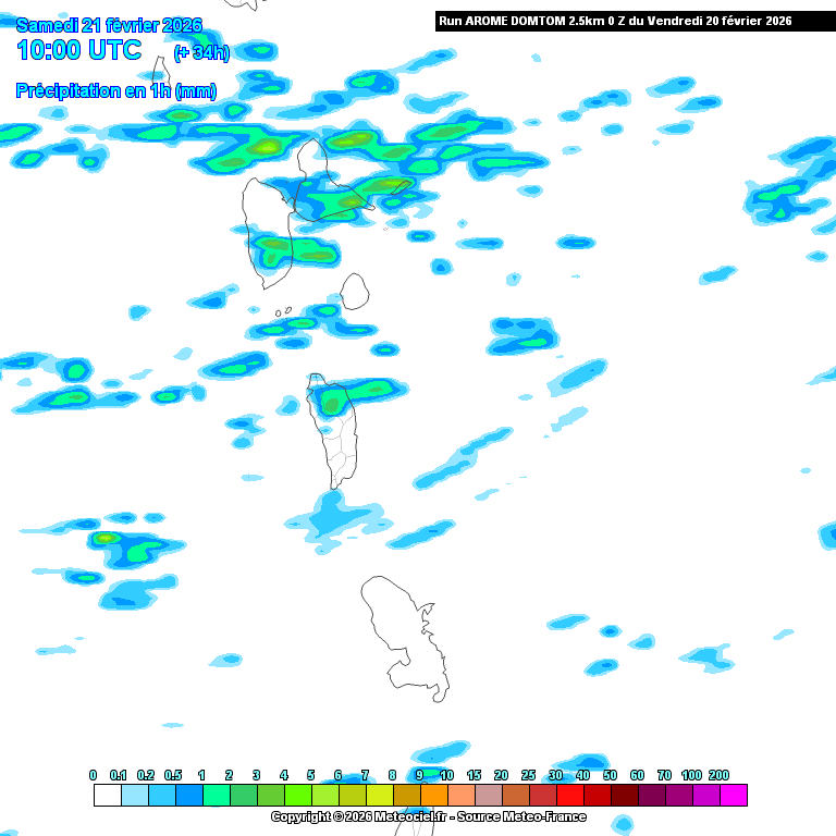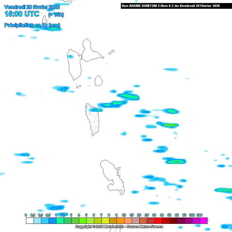 Prévisions du modèle à maille fine AROME pour les Antilles produit par Météo France (Source : Météociel.fr)