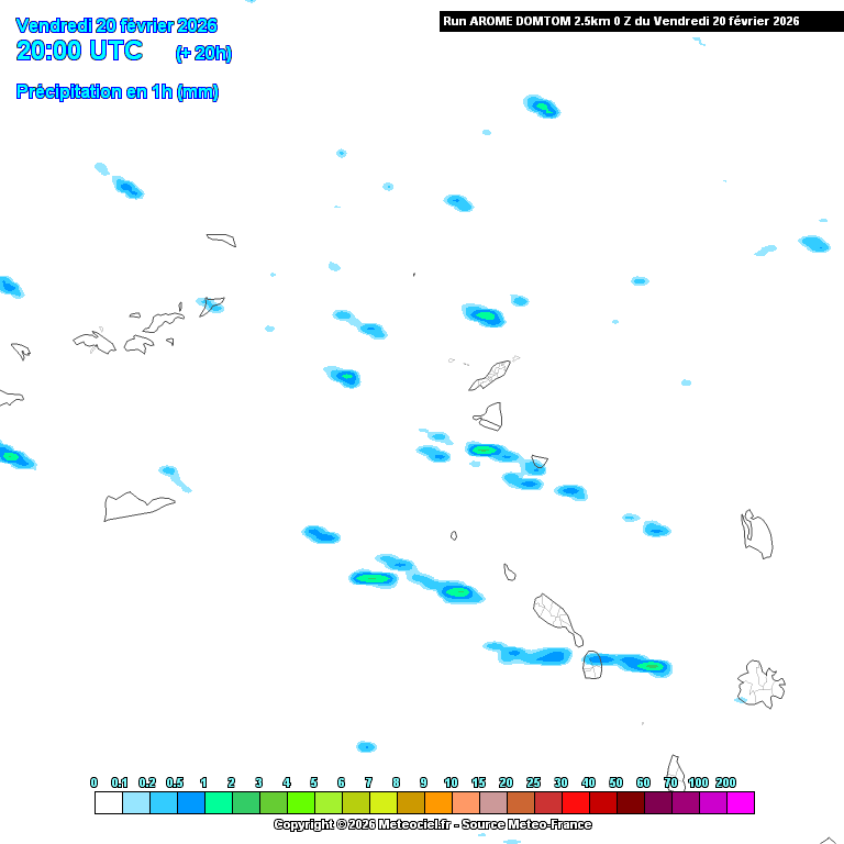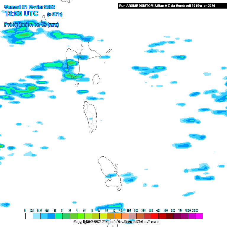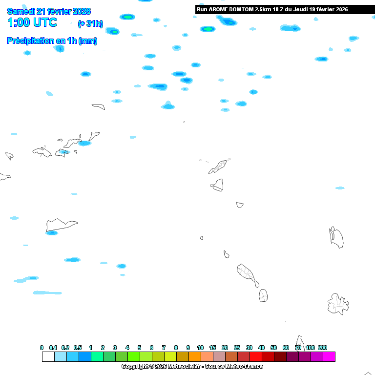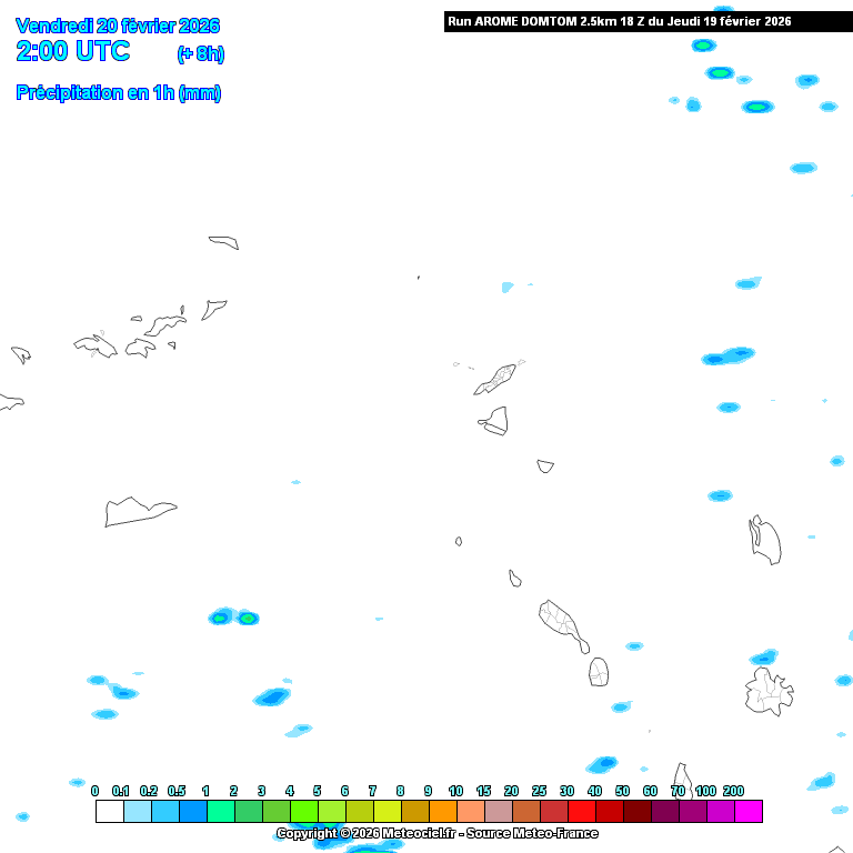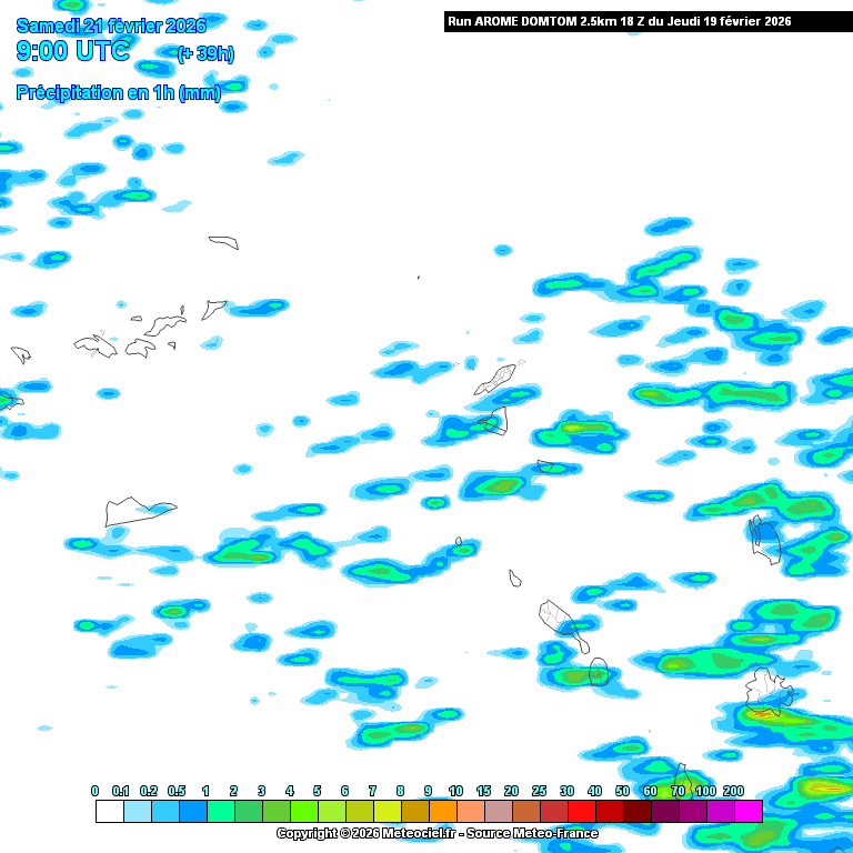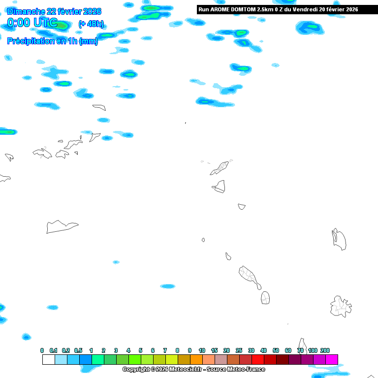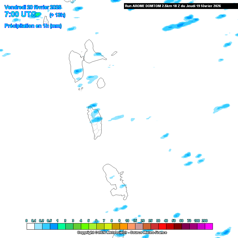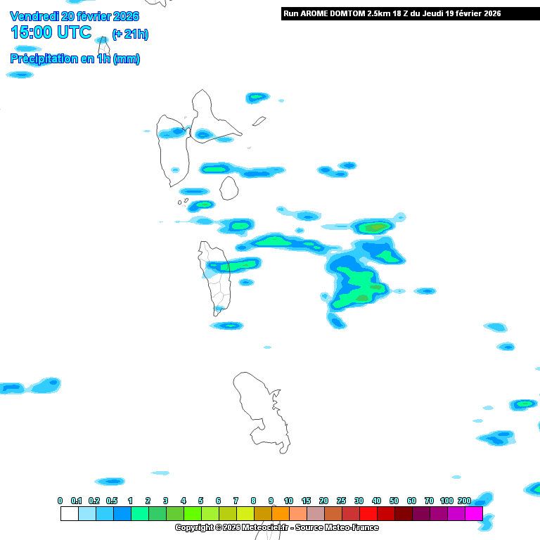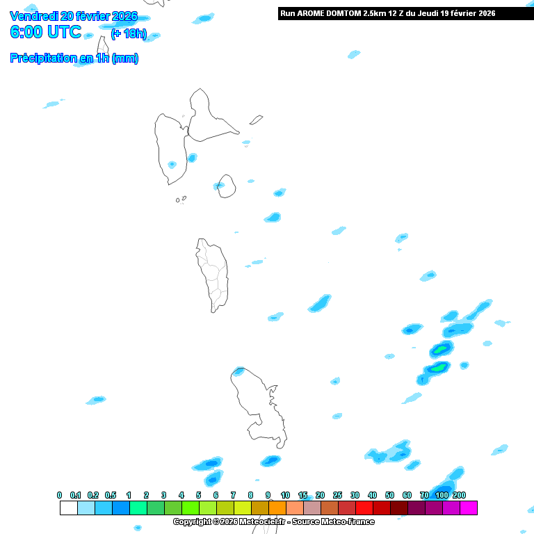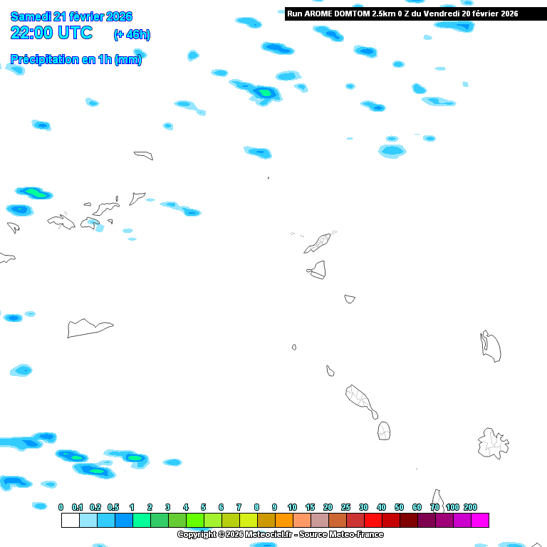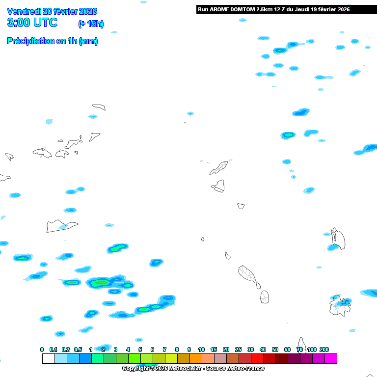 Prévisions du modèle à maille fine AROME pour les Antilles produit par Météo France (Source : Météociel.fr)