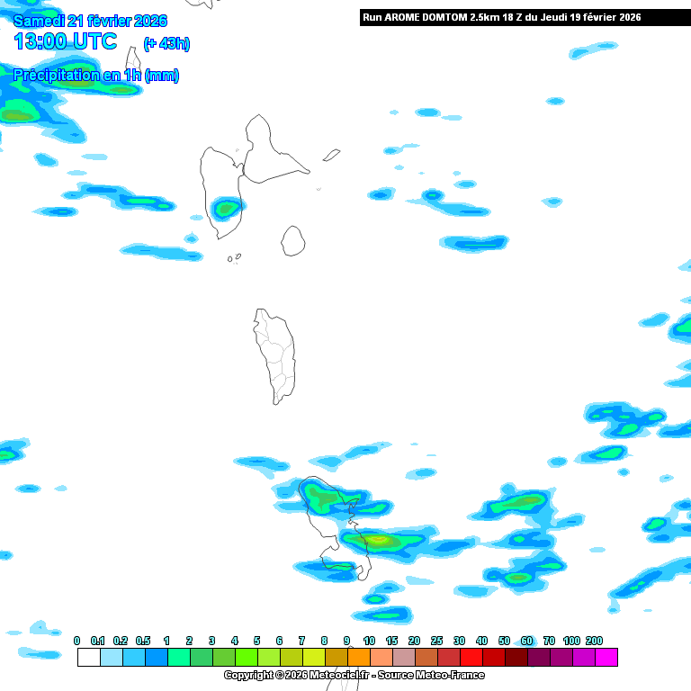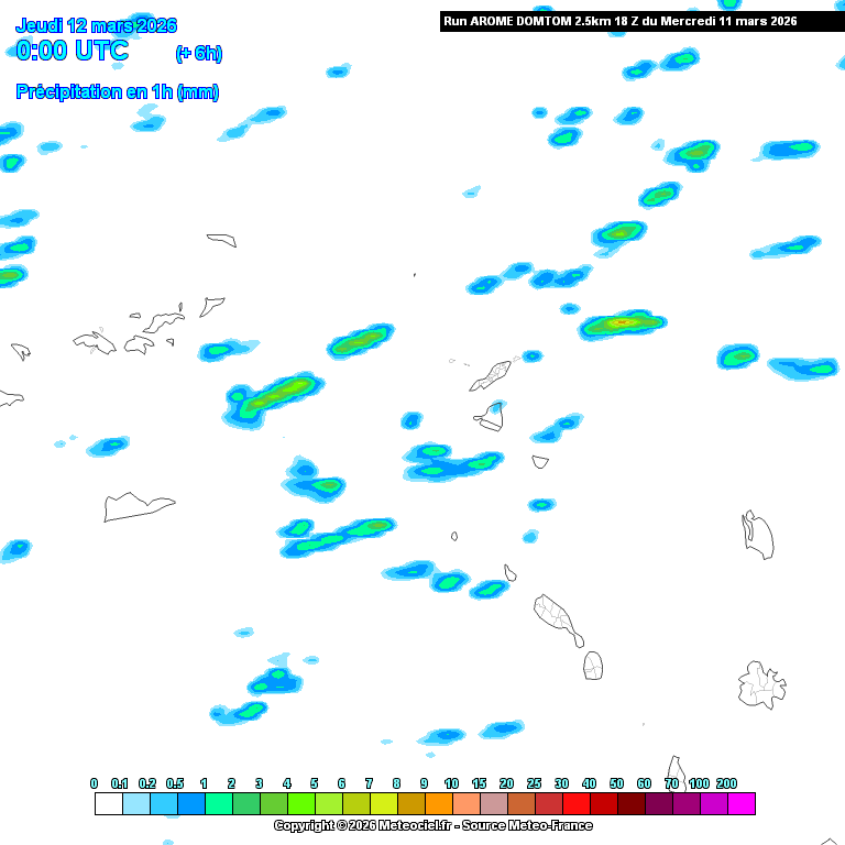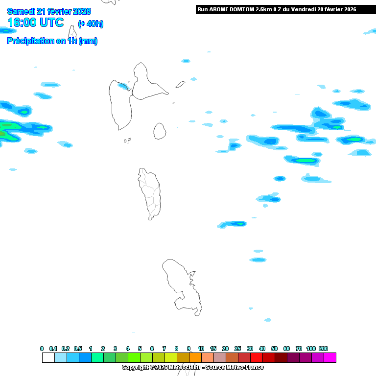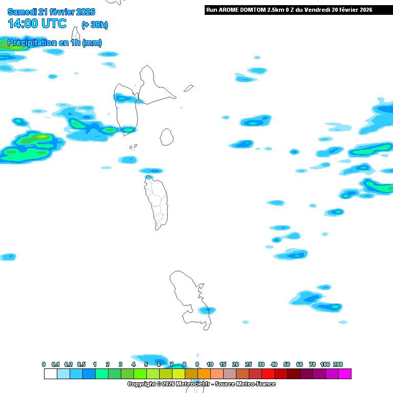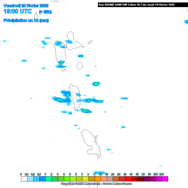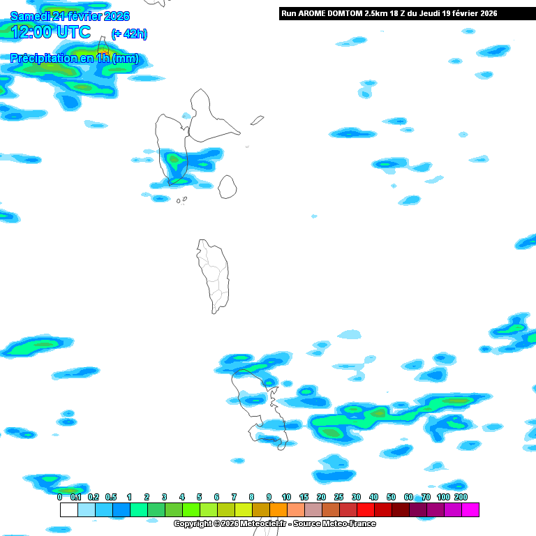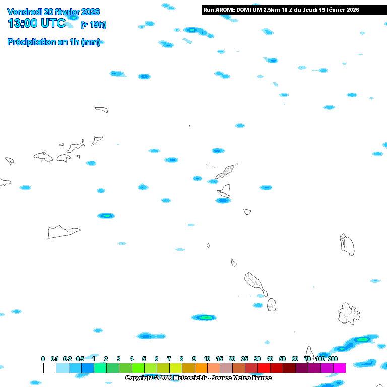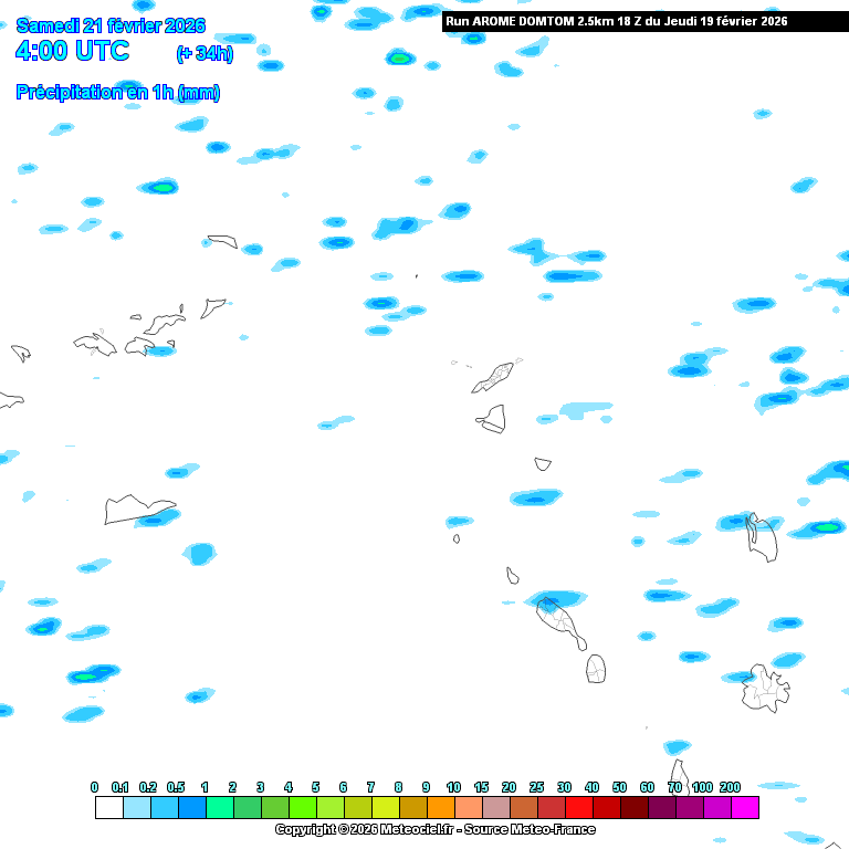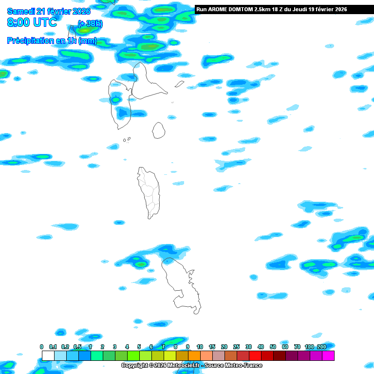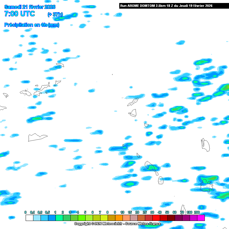 Prévisions du modèle à maille fine AROME pour les Antilles produit par Météo France (Source : Météociel.fr)
