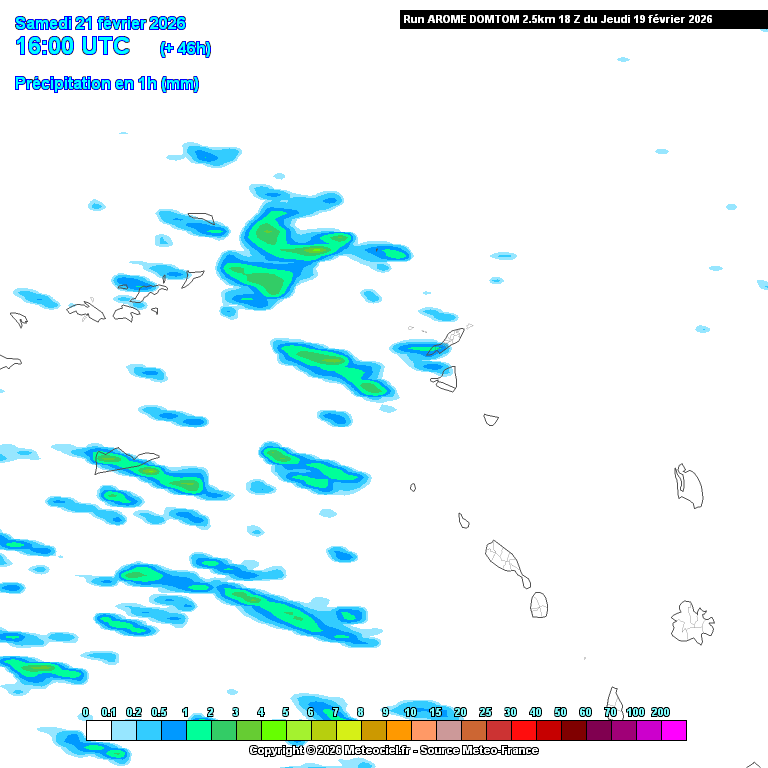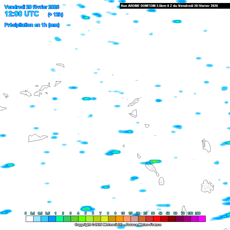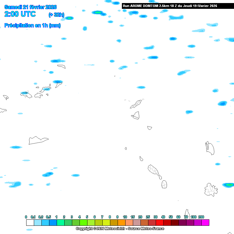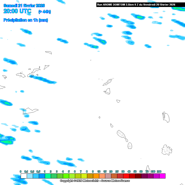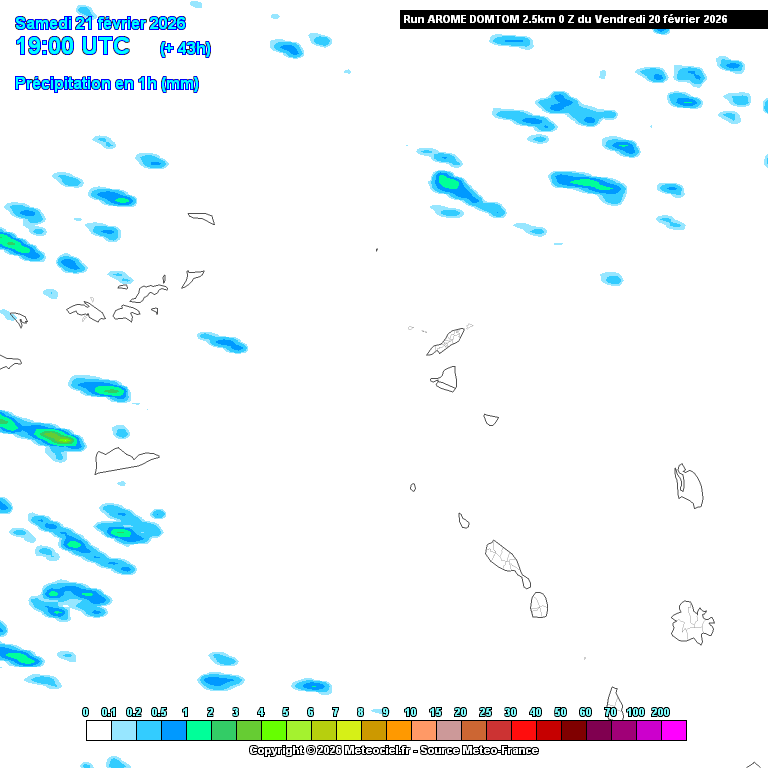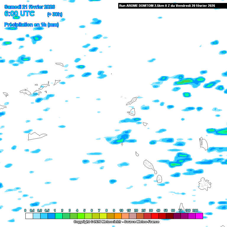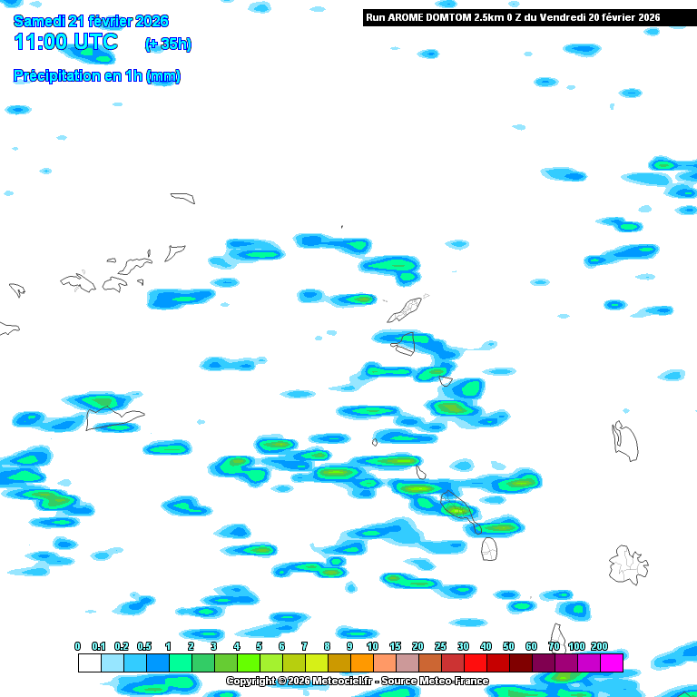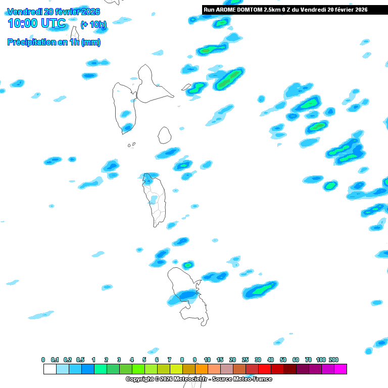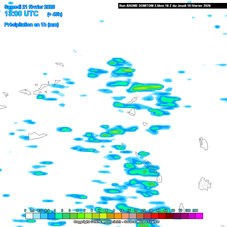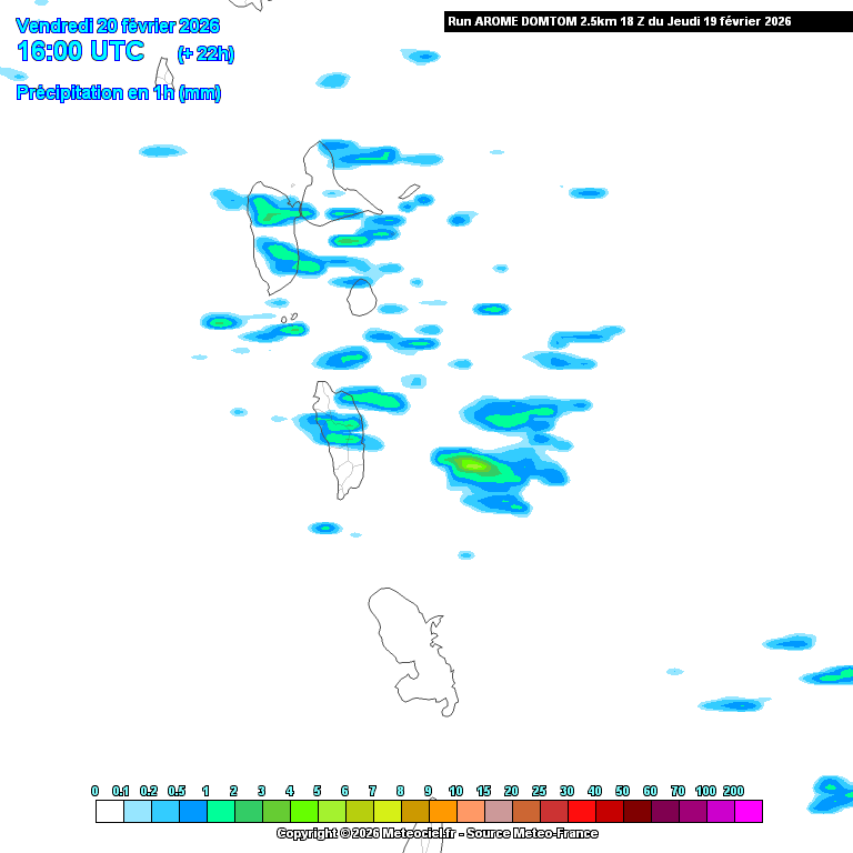 Prévisions du modèle à maille fine AROME pour les Antilles produit par Météo France (Source : Météociel.fr)