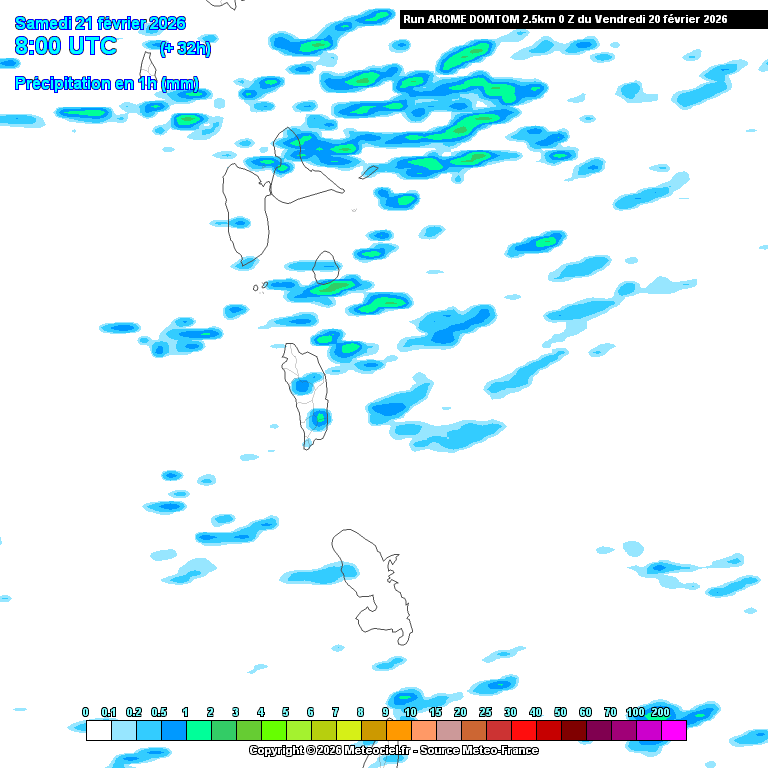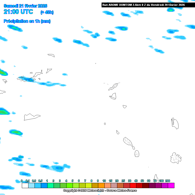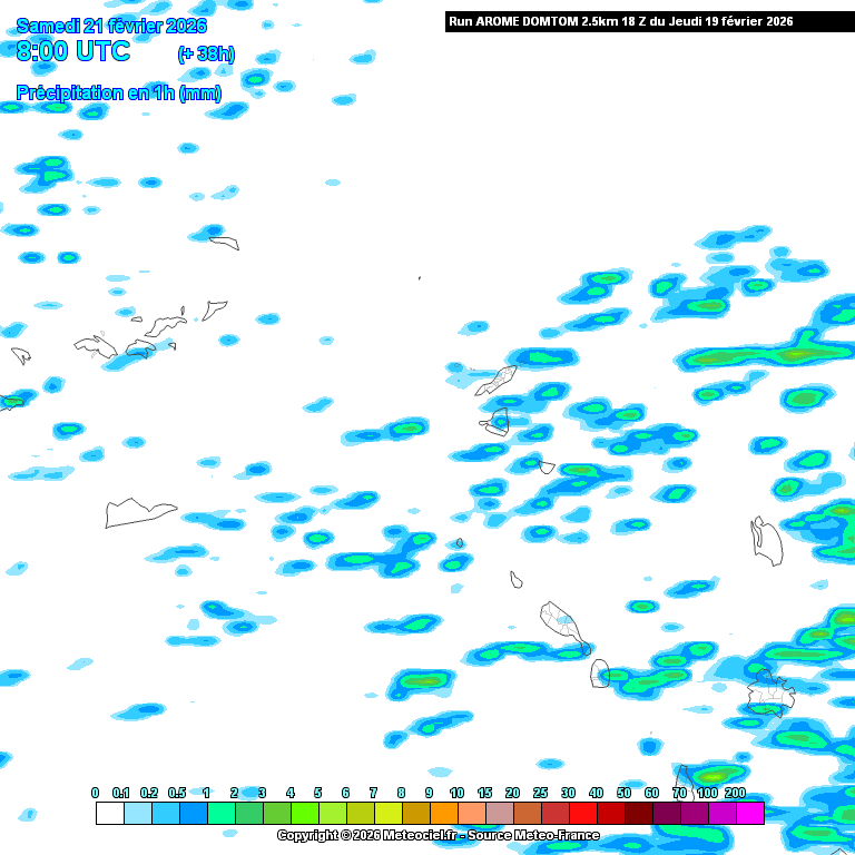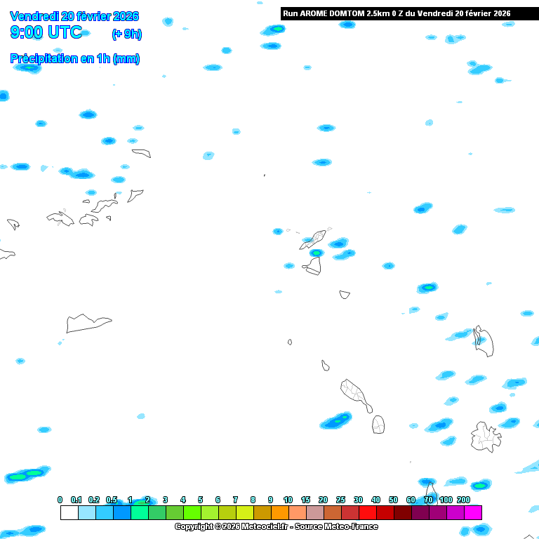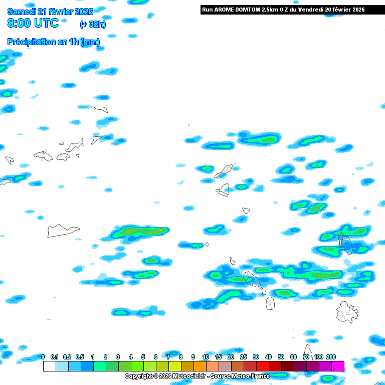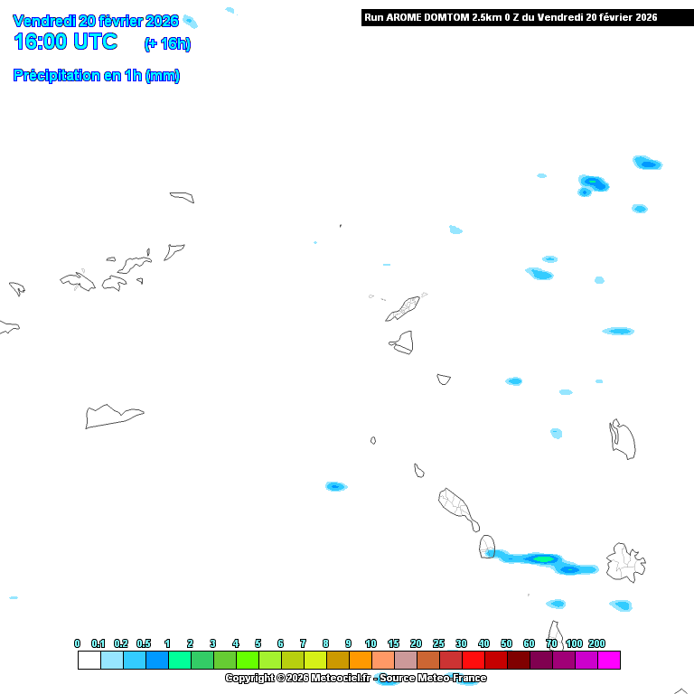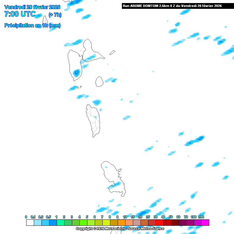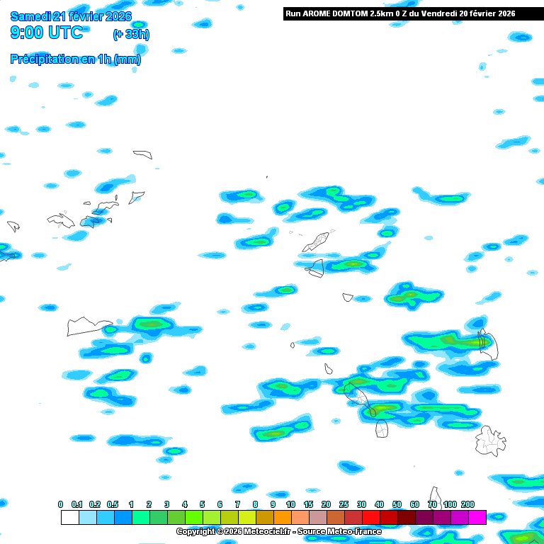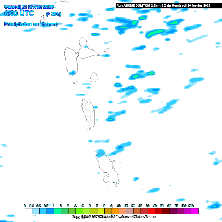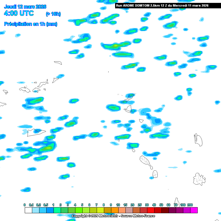 Prévisions du modèle à maille fine AROME pour les Antilles produit par Météo France (Source : Météociel.fr)
